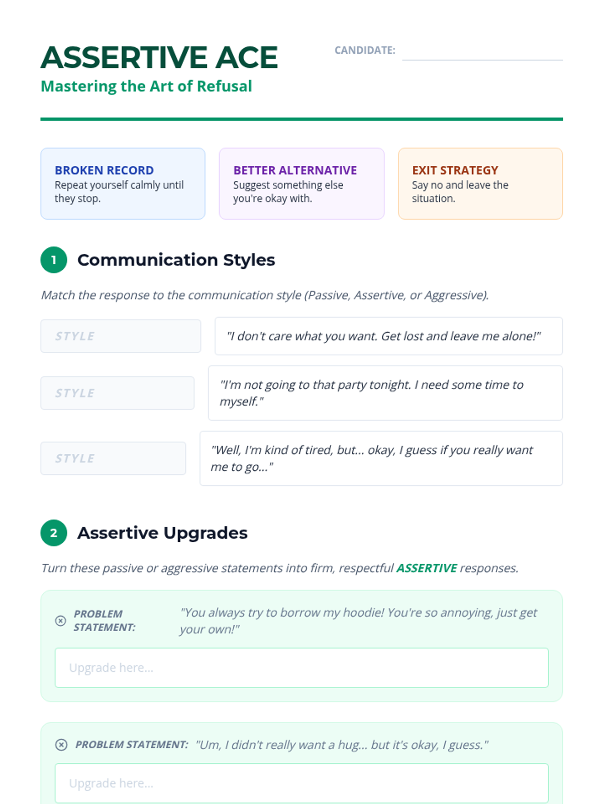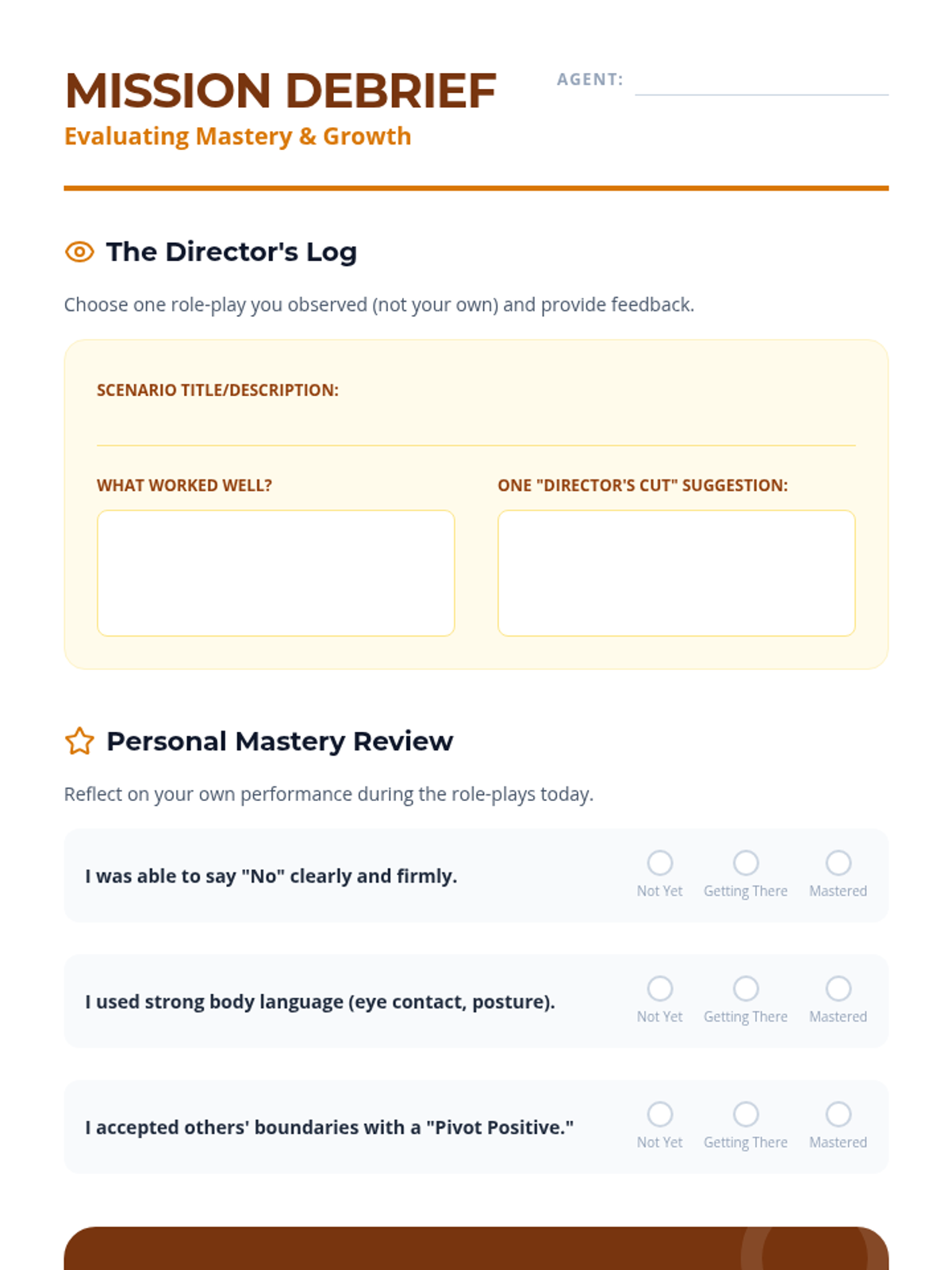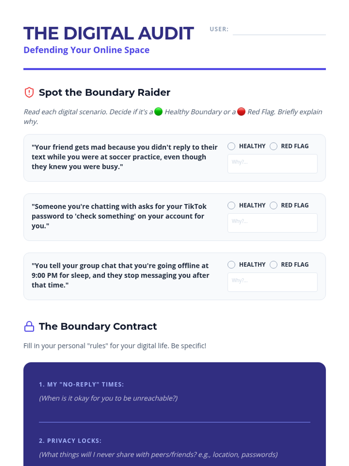 A 5-lesson workshop series for 6th graders on establishing, communicating, and respecting personal boundaries in physical, emotional, and digital spaces. Students move from self-reflection to active role-play mastery.