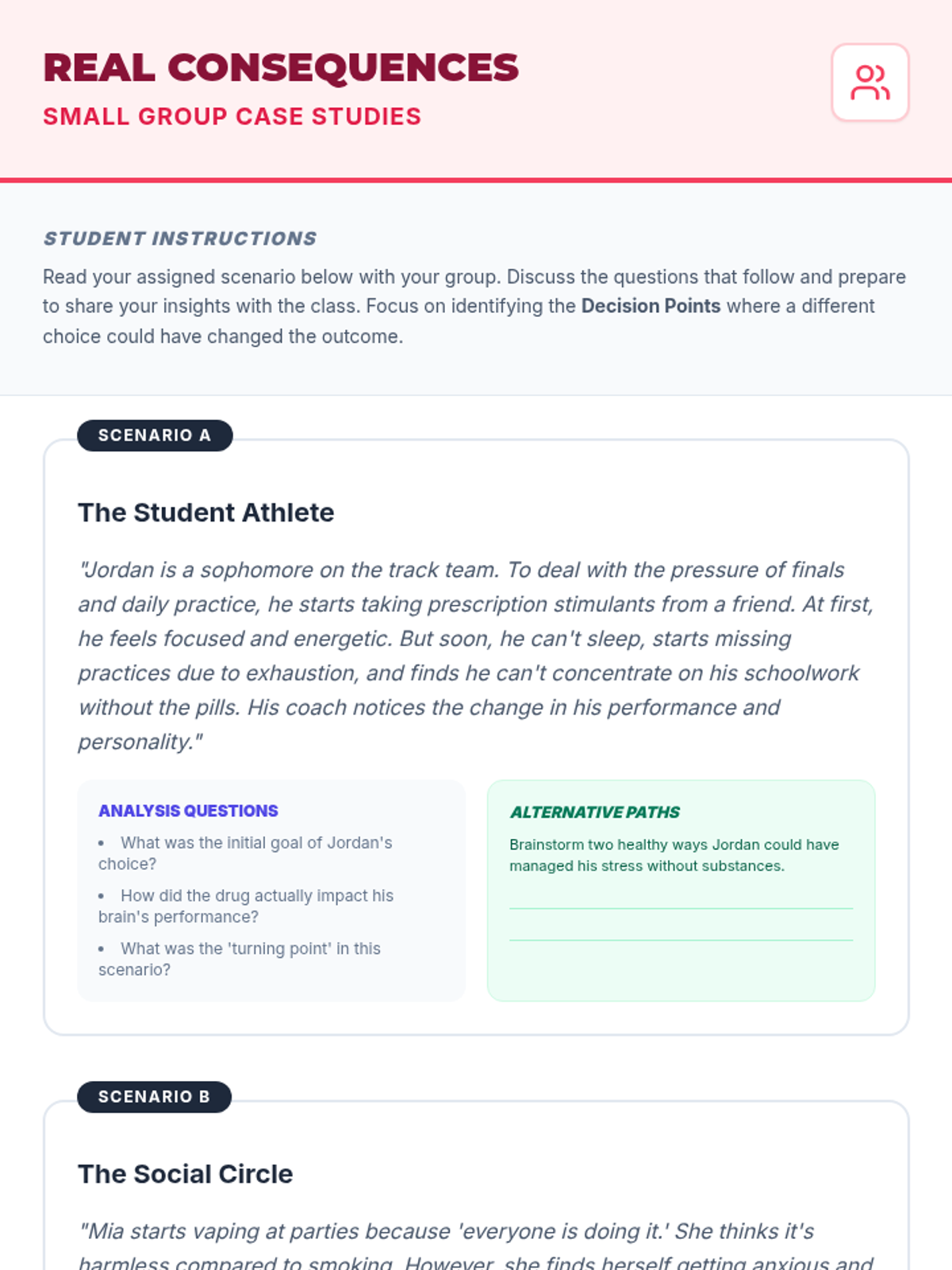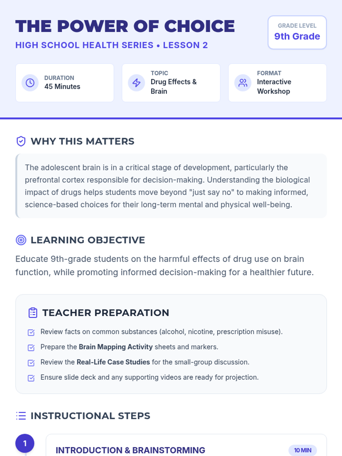 A comprehensive sequence exploring brain health and decision-making across two developmental stages: early childhood foundations and adolescent critical thinking. Students learn how everyday choices—from food and play to substance use—impact brain development and long-term well-being.