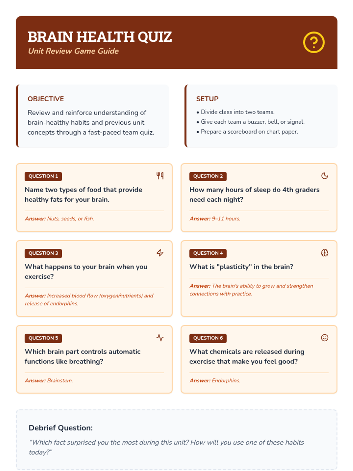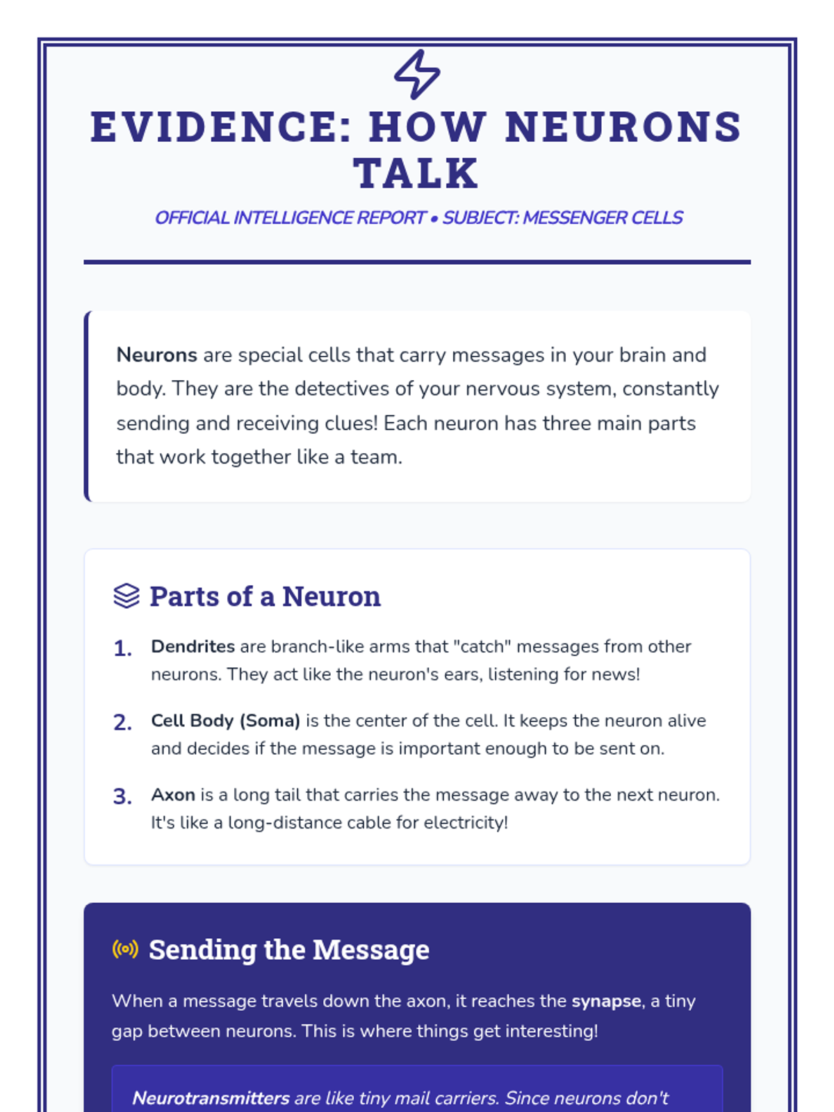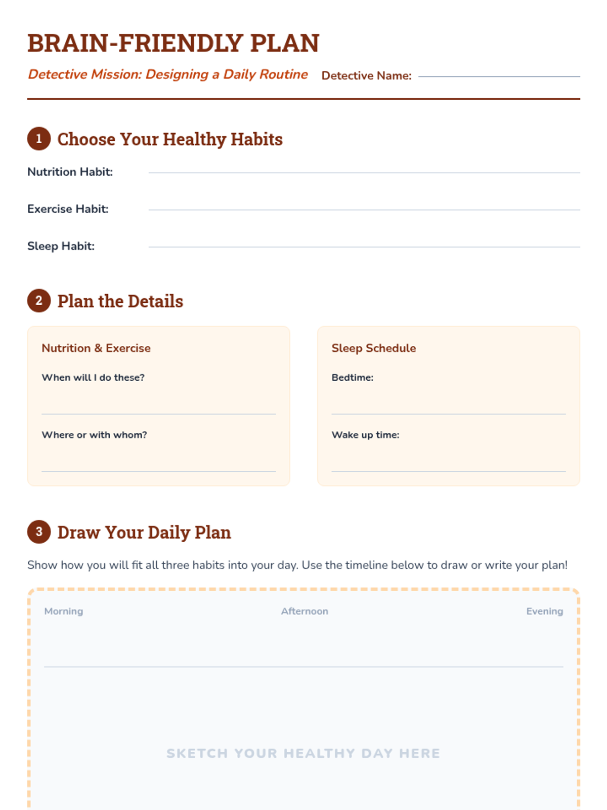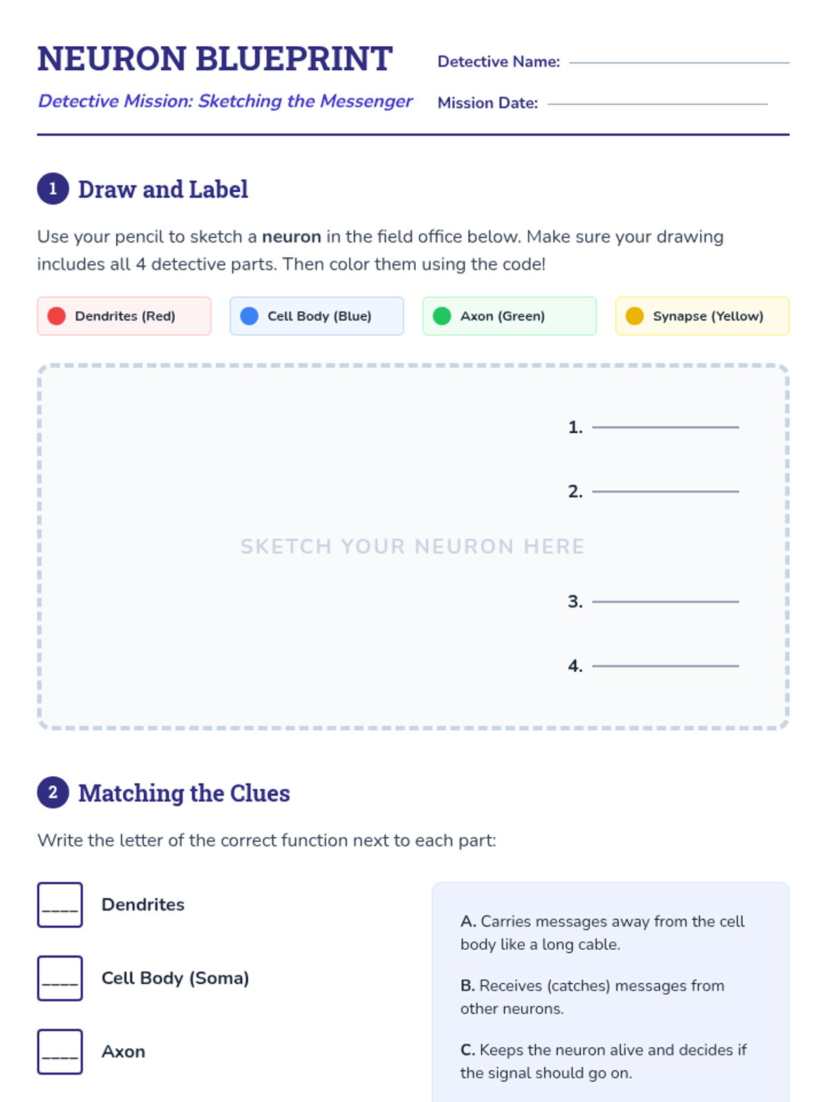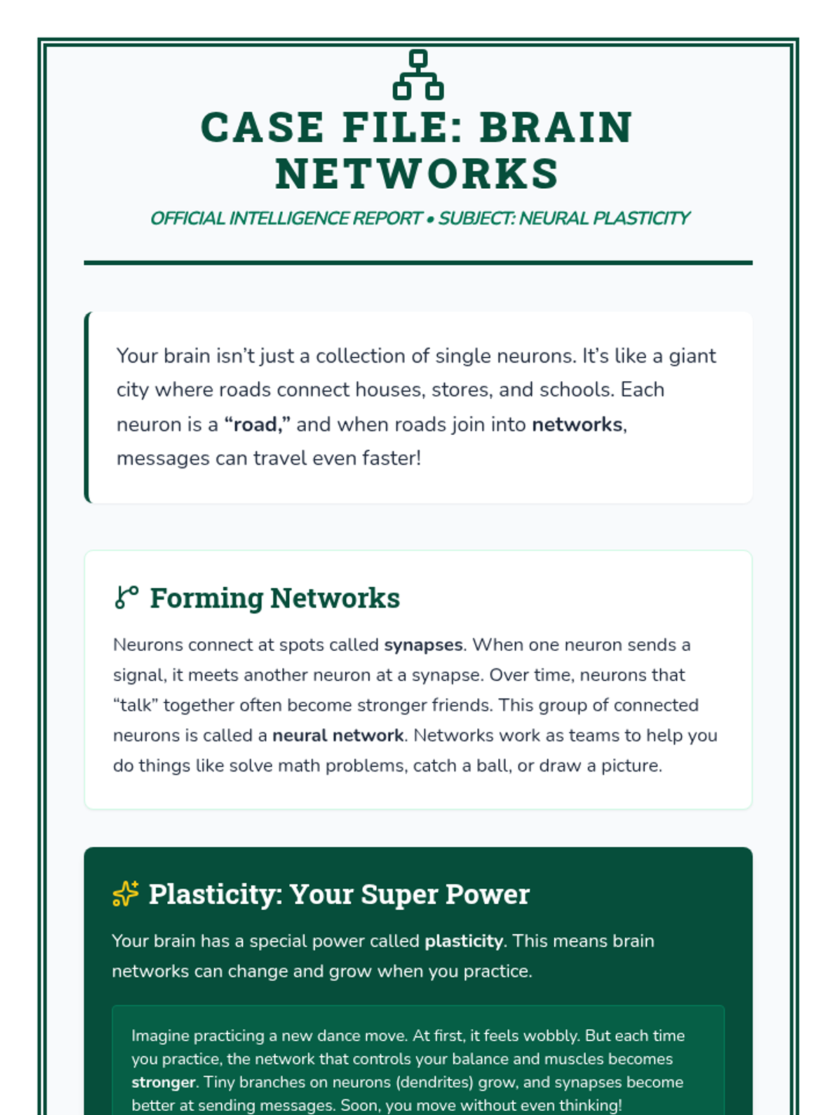 A four-session journey into the human mind for 4th graders, exploring brain anatomy, neurons, neural plasticity, and healthy brain habits through hands-on detective-themed activities.