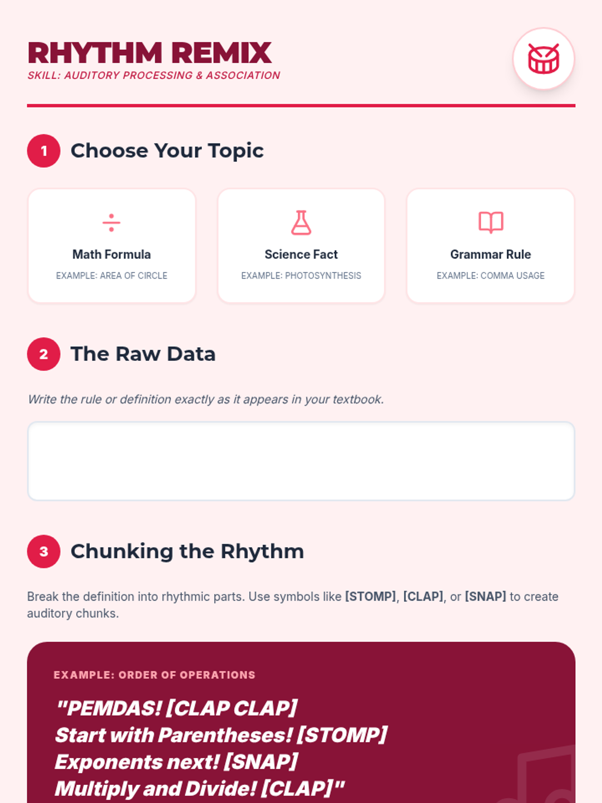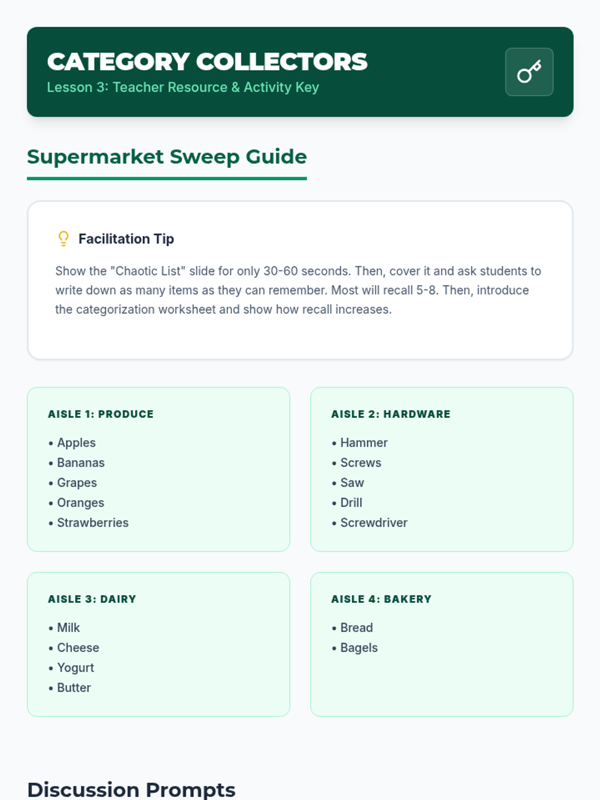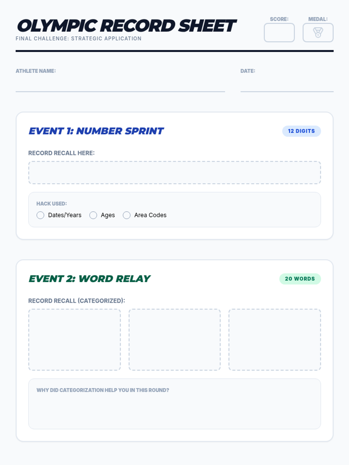 This sequence helps students understand and apply chunking and association strategies to overcome working memory limitations. Through a series of game-based lessons, students will learn to organize data into manageable patterns to increase their cognitive processing capacity.