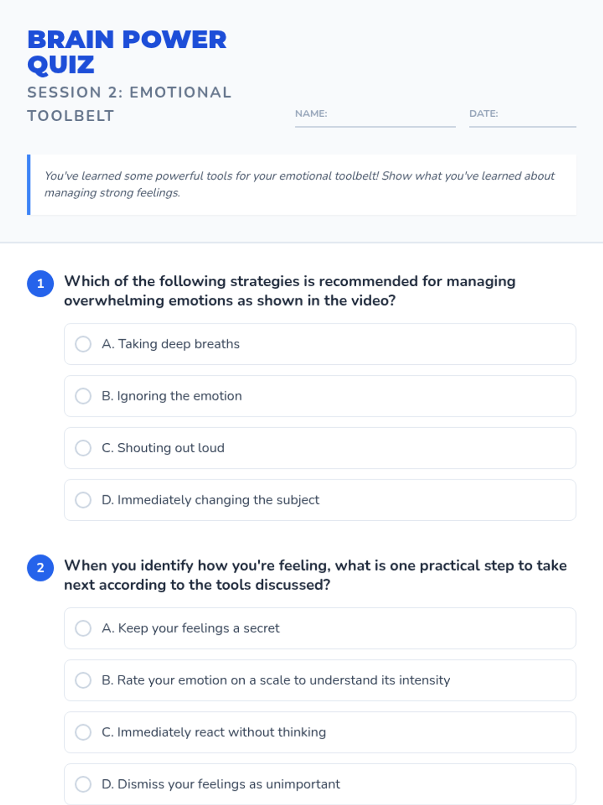 A series of lessons designed to help students identify, understand, and regulate their emotions in various social contexts.