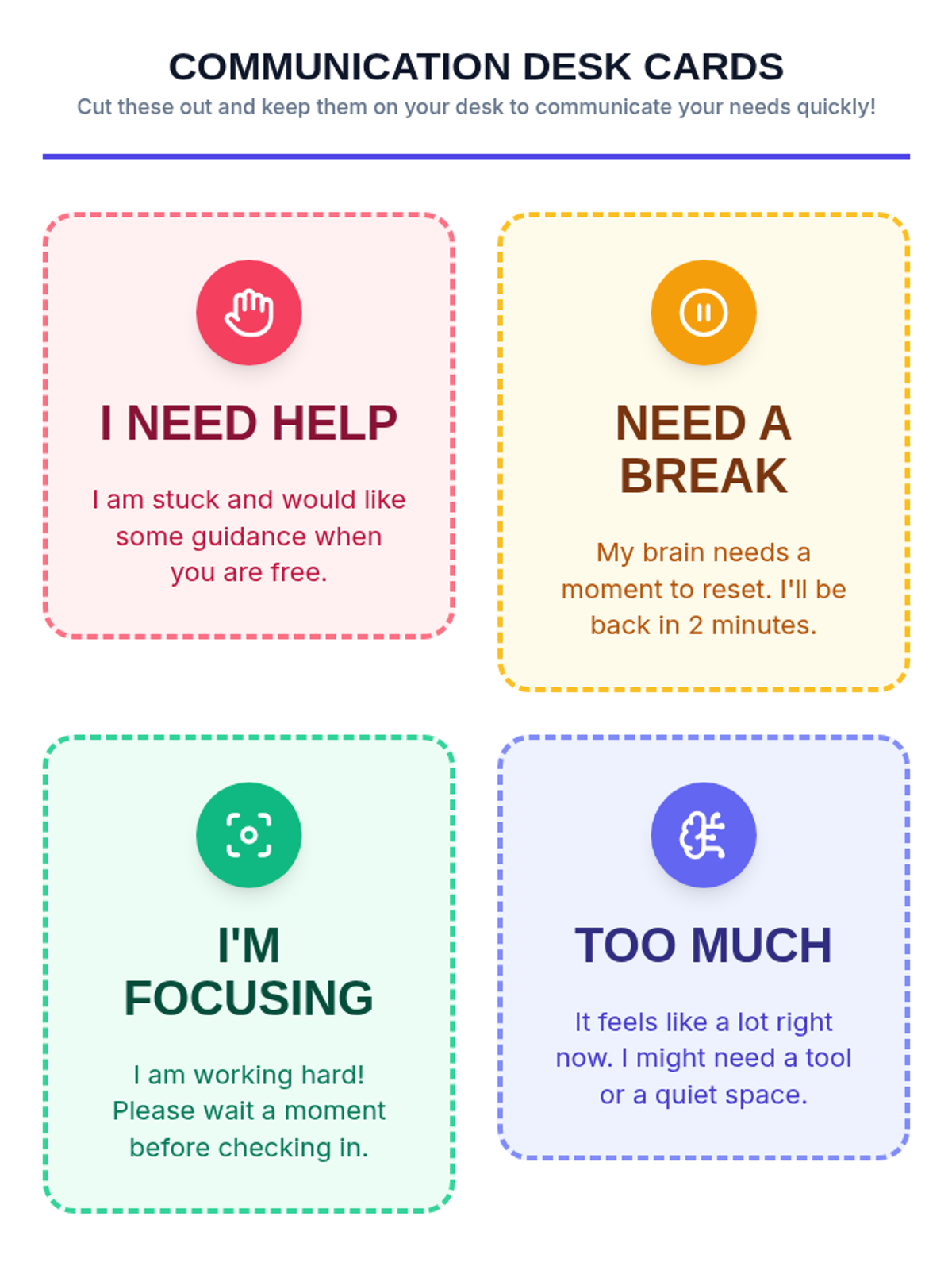 A 3-day unit designed to help students identify their emotional states, recognize personal learning preferences, and develop self-advocacy skills through goal setting and communication strategies.