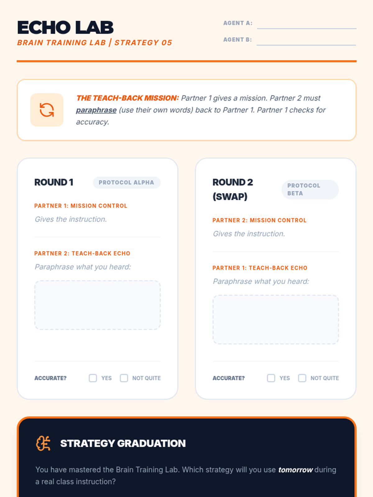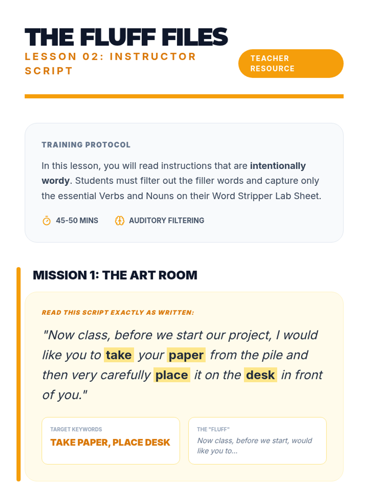 A specialized sequence designed for 5th-grade students to strengthen auditory working memory and sustained attention through evidence-based strategies like verbal rehearsal, keyword extraction, visualization, and the teach-back technique.