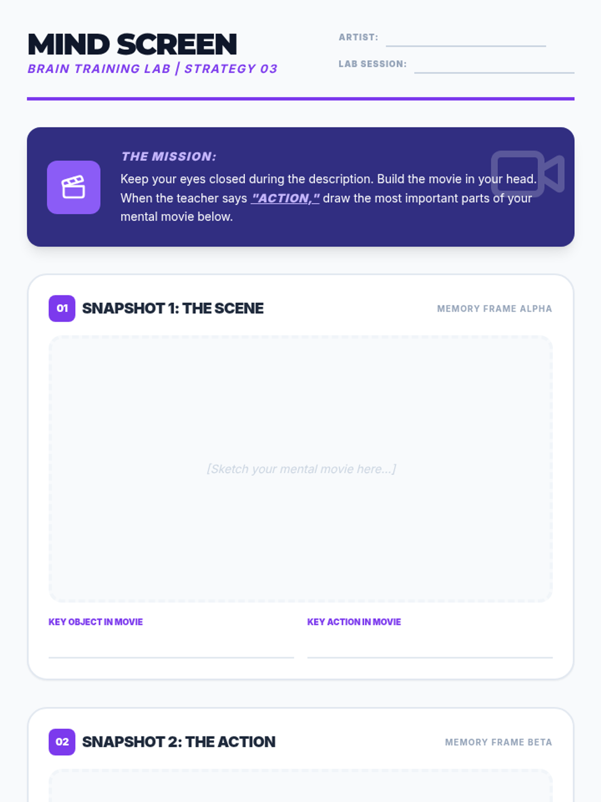 A series of drawing-based challenges designed to improve active listening and following complex, multi-step instructions through creative output.