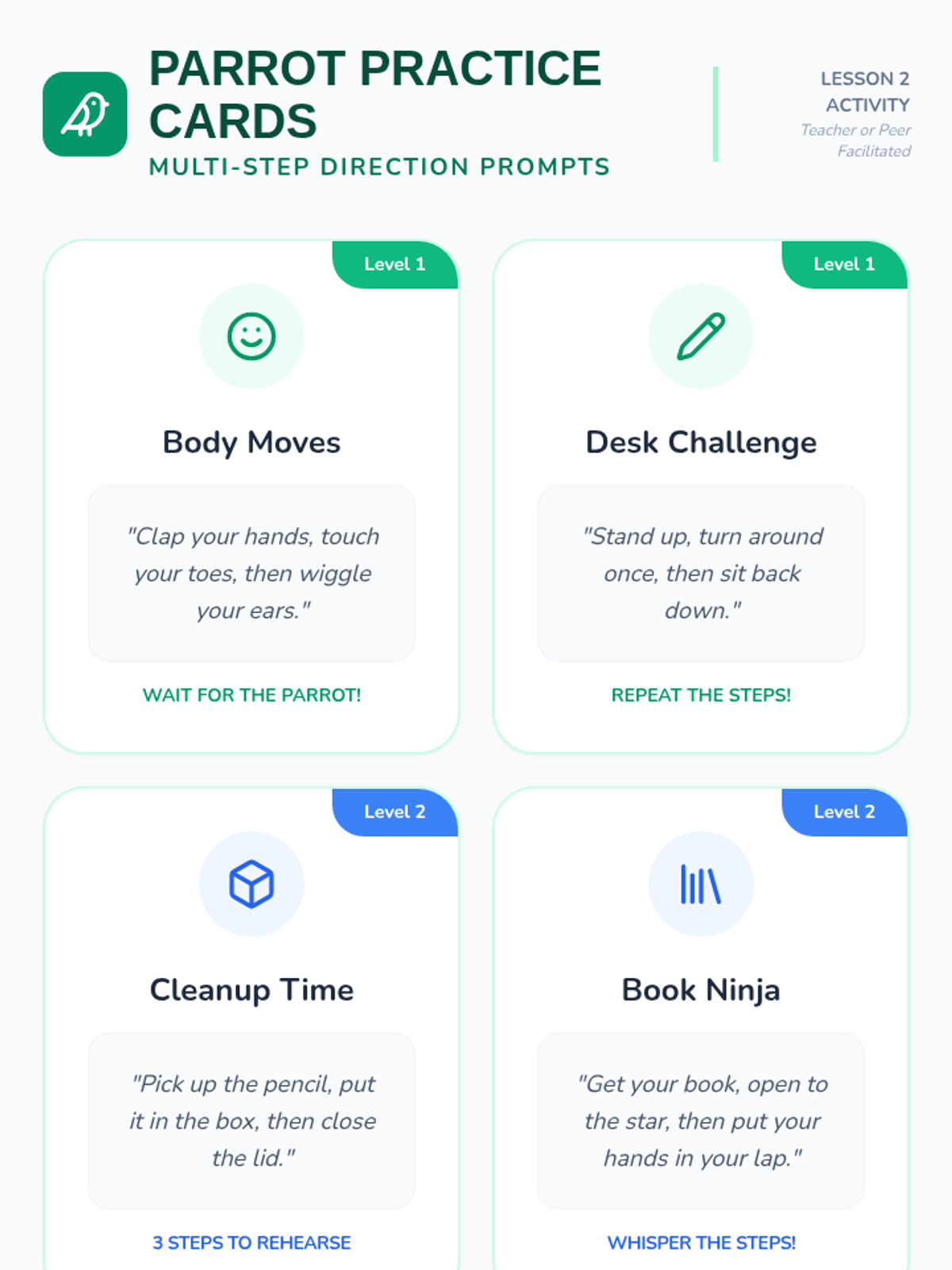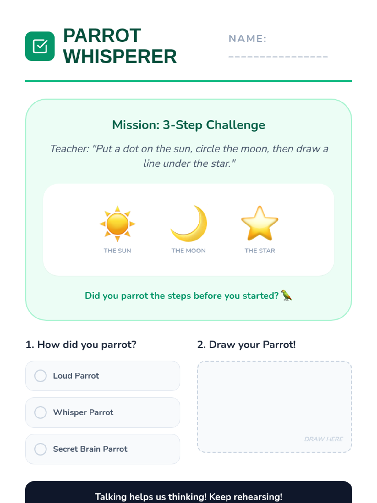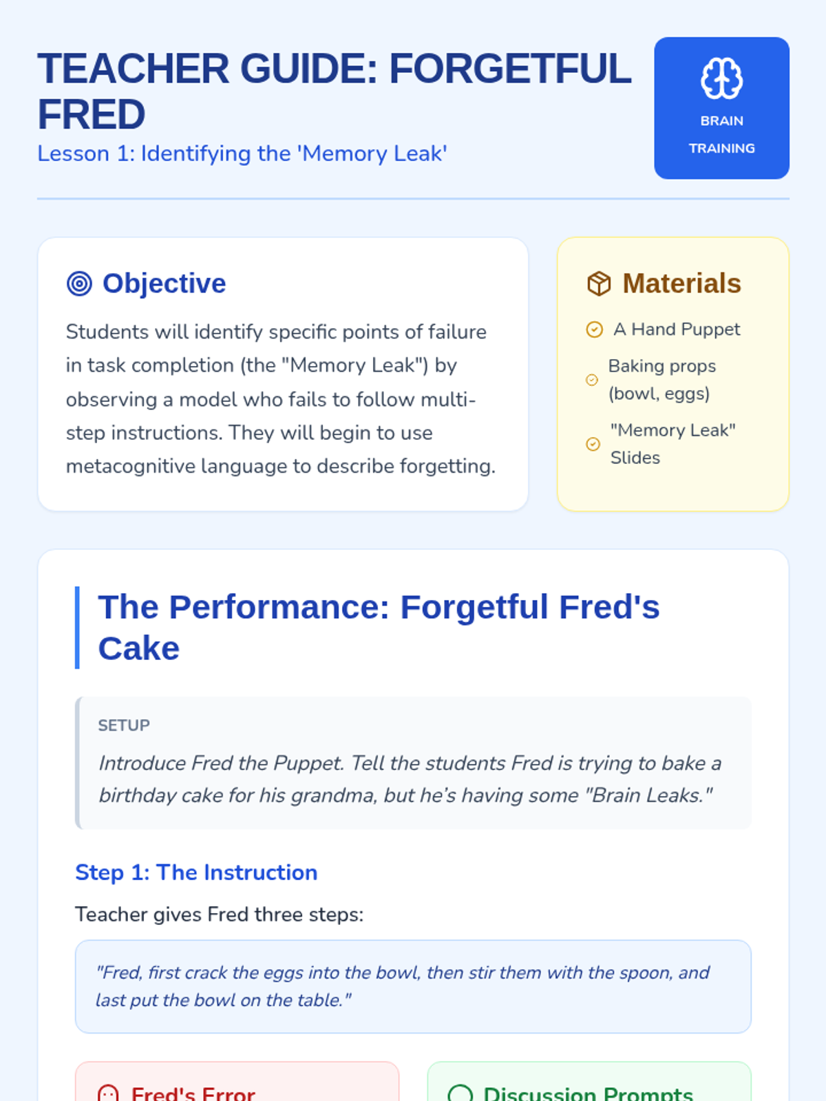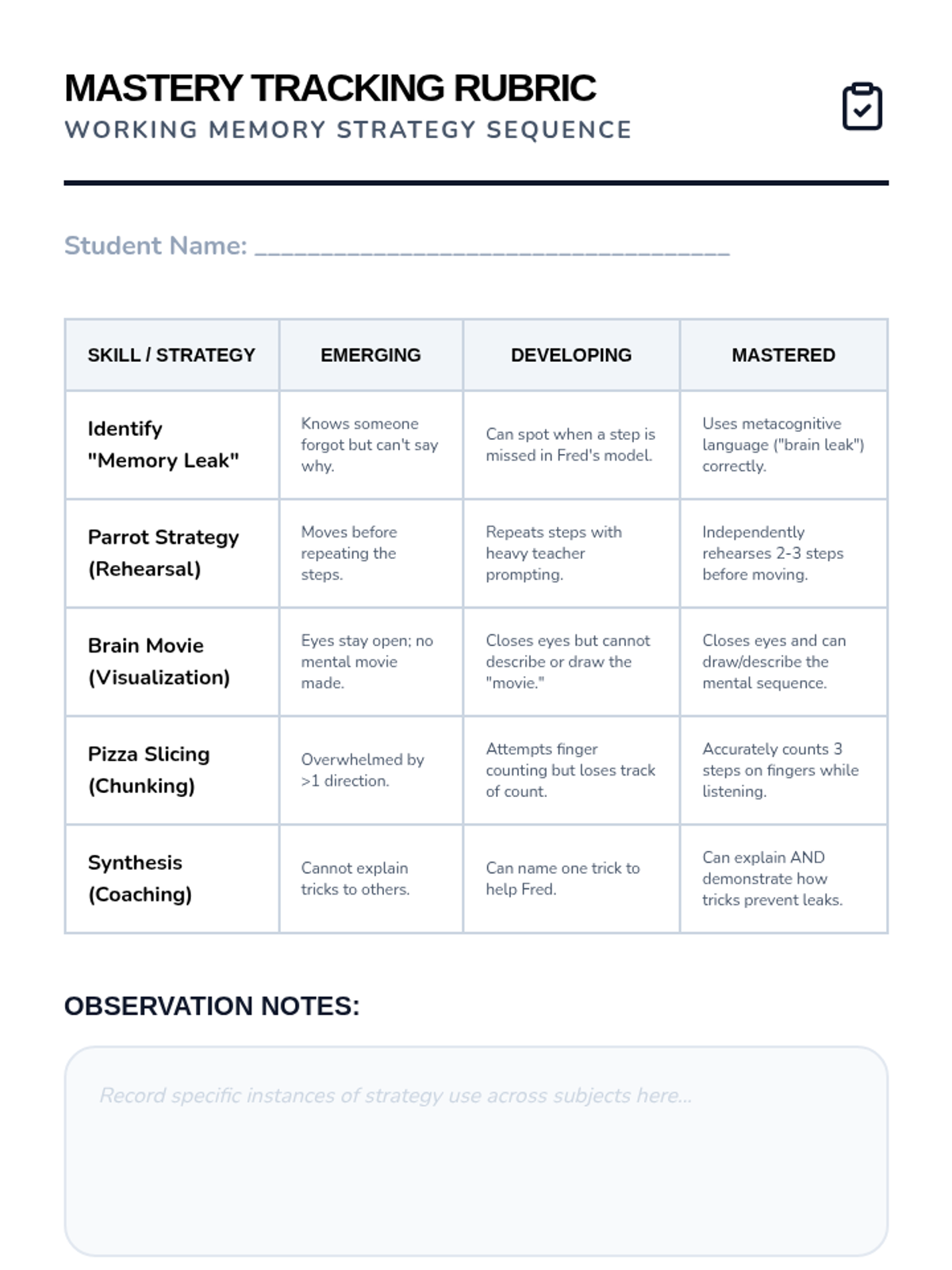 A metacognitive strategy sequence for Kindergarten students to improve working memory and multi-step direction following using rehearsal, visualization, and chunking strategies.