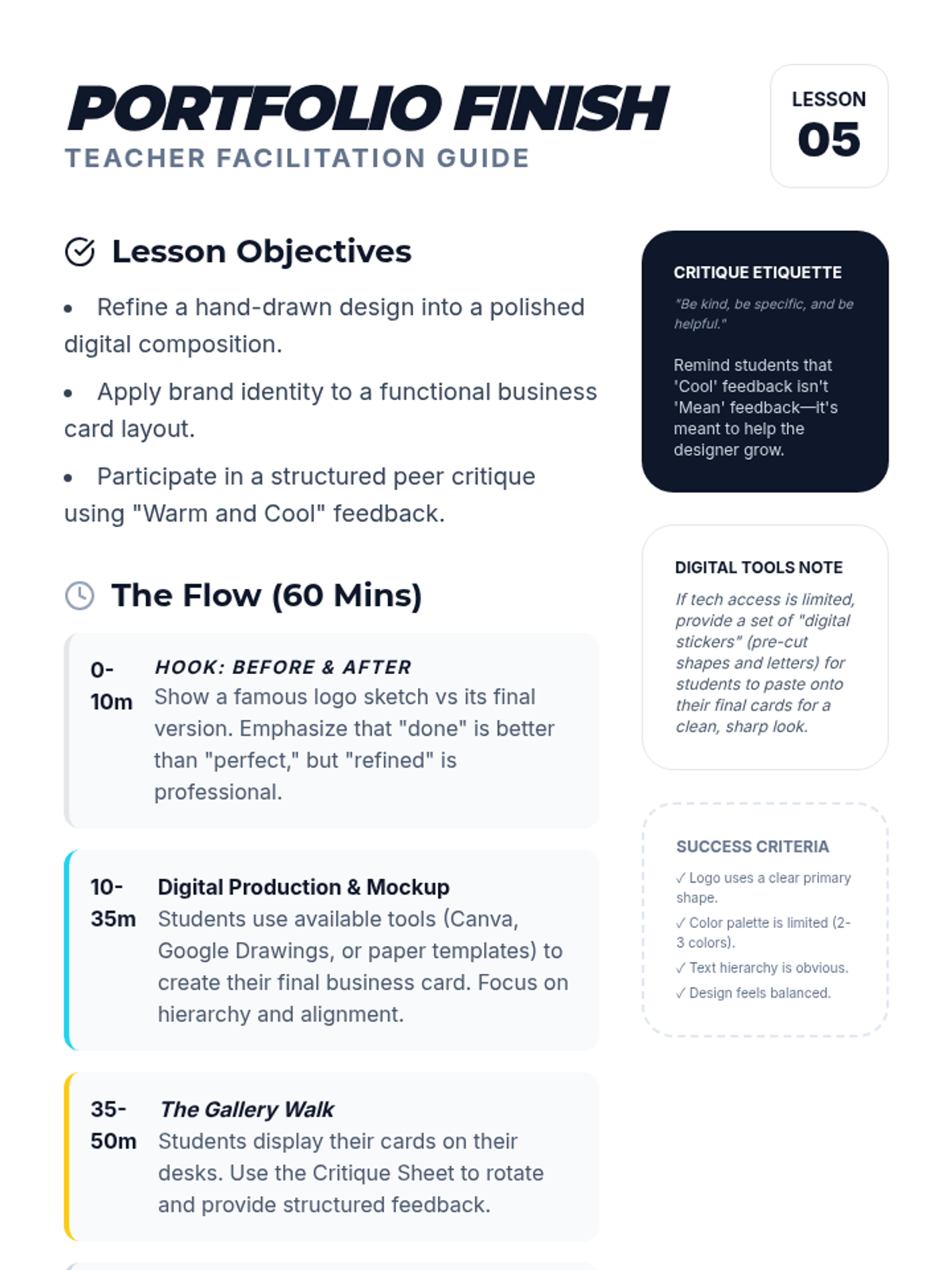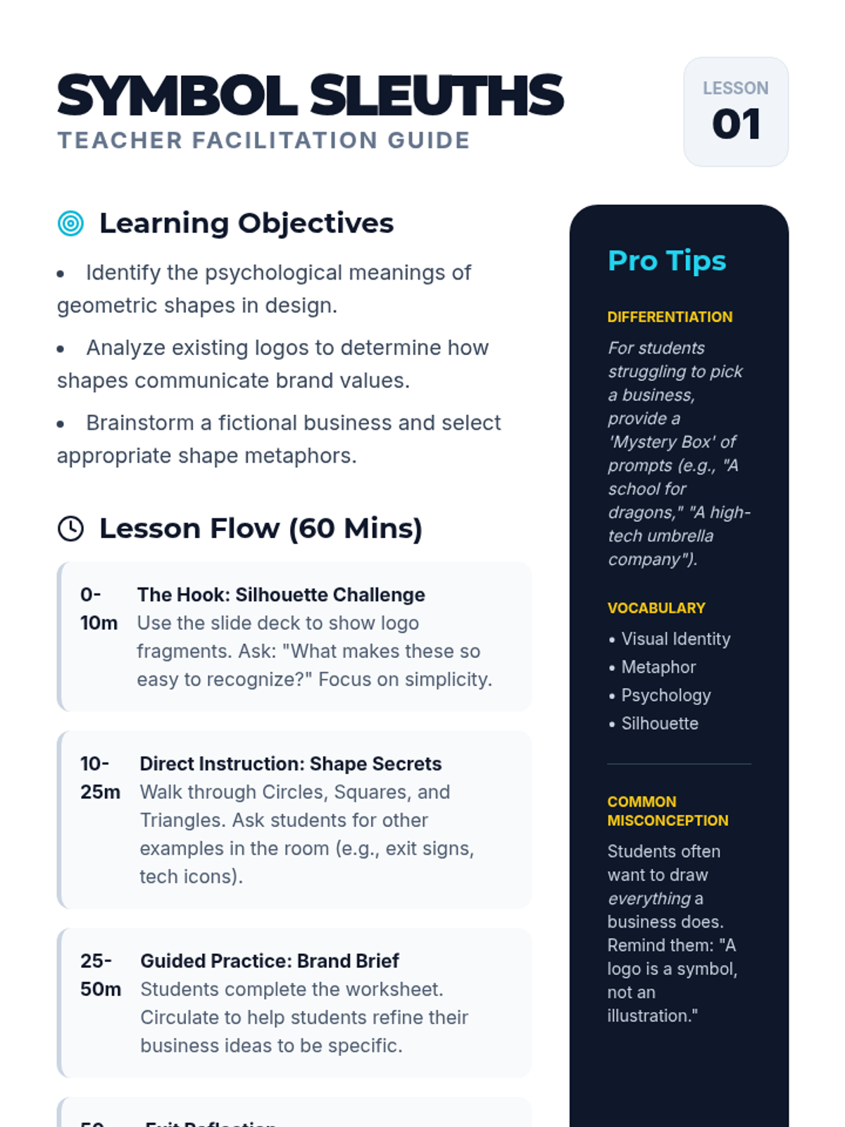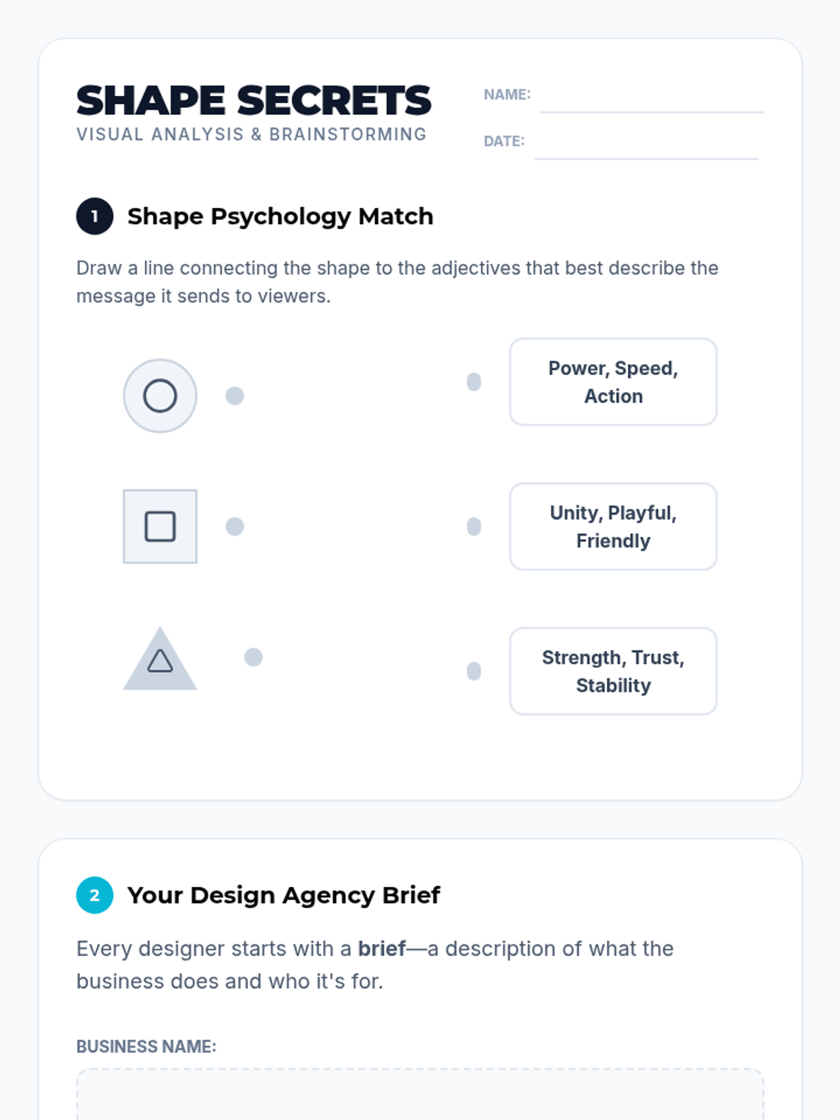 In this project-based sequence, fourth-grade students explore the core principles of graphic design by creating a visual identity for a fictional business. They progress through analyzing shapes, colors, and typography to sketching and refining their own original logos and business cards.