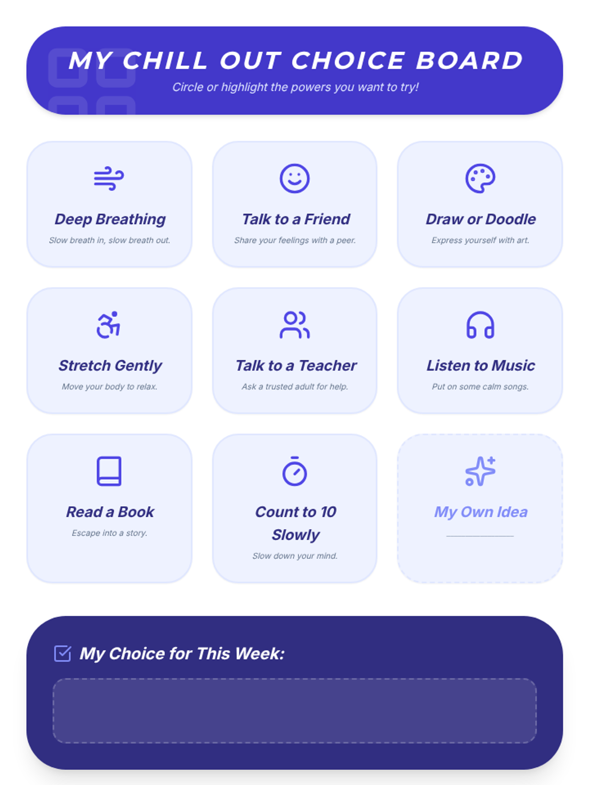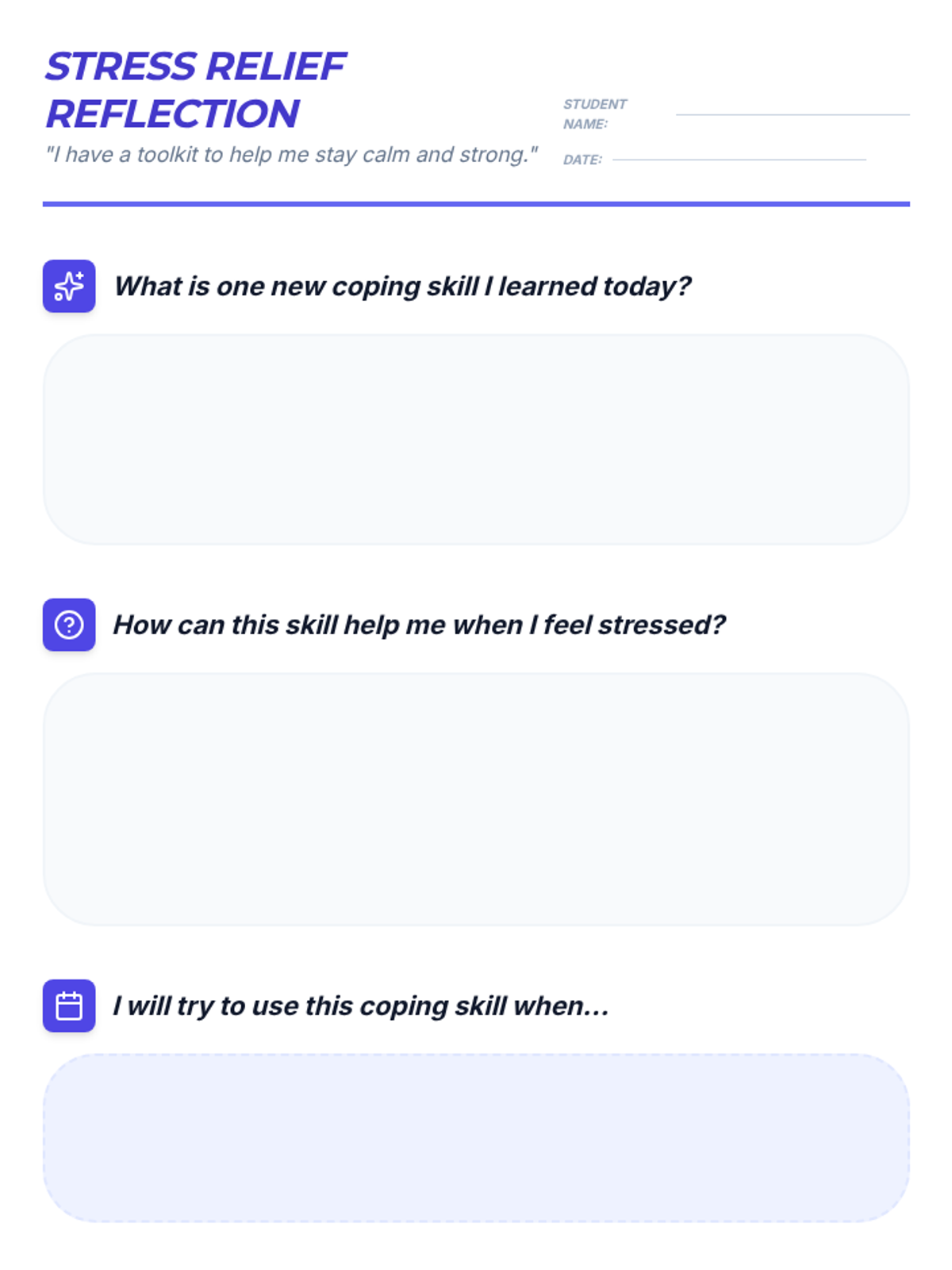 A 4-week small group counseling unit for middle school students focused on identifying stressors, understanding the physiological response to stress, and building a versatile toolkit of coping strategies. Aligned with ASCA Mindsets & Behaviors for student success.