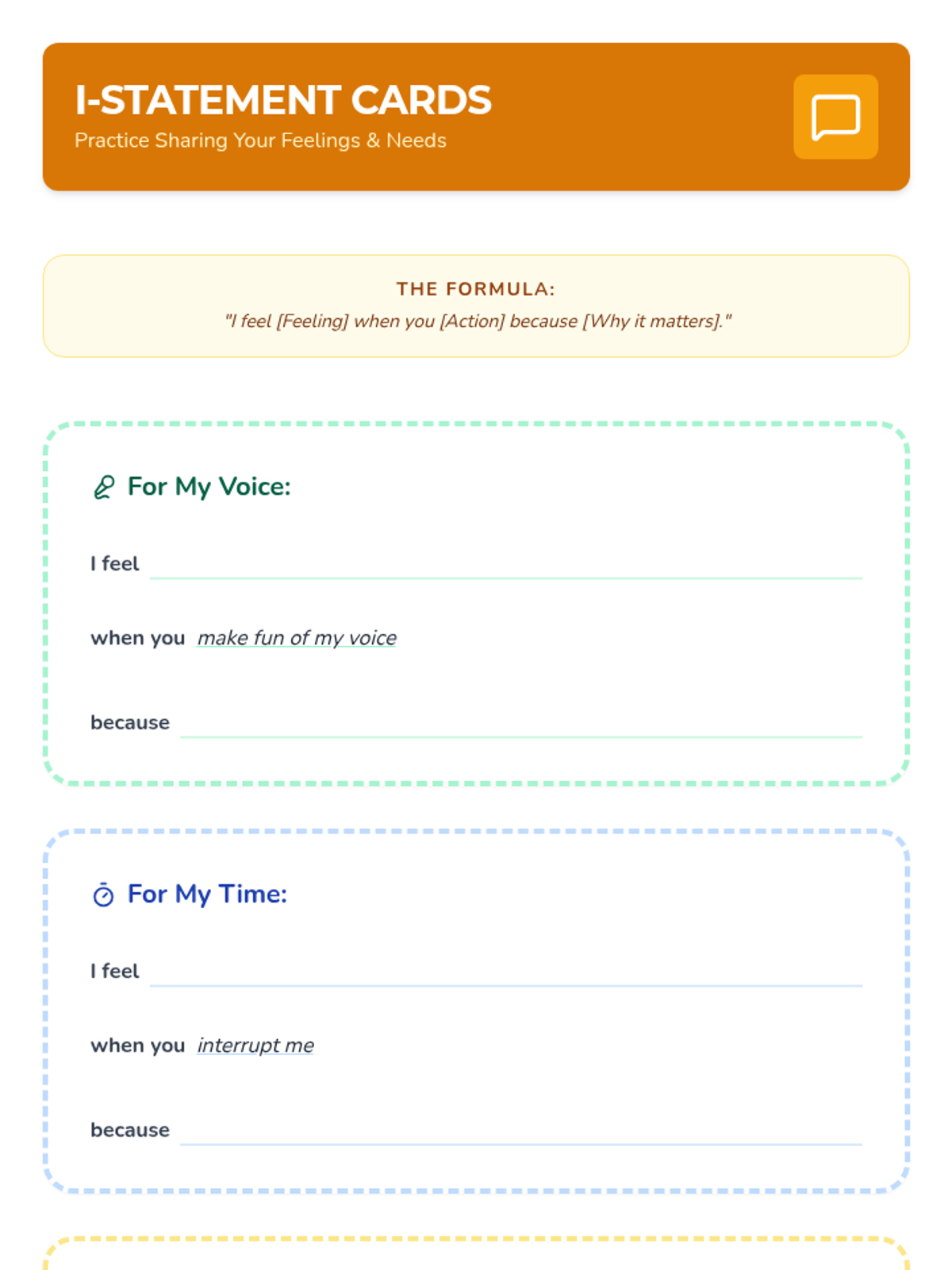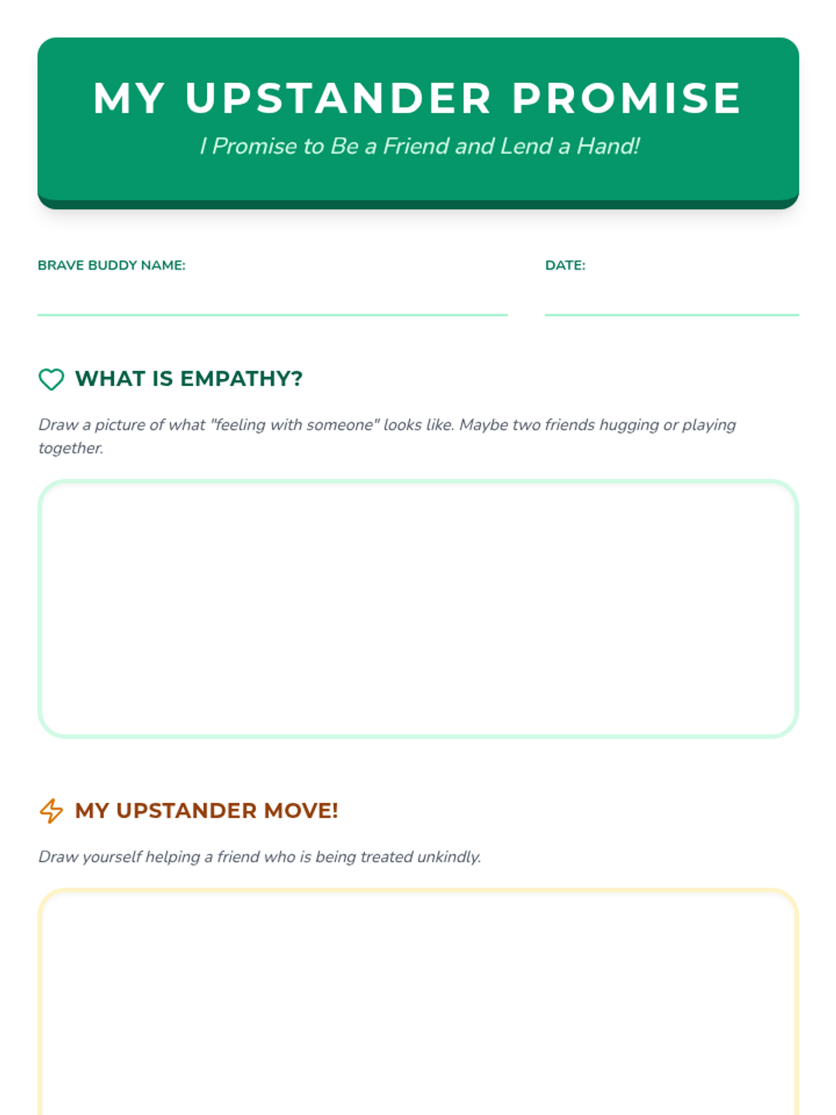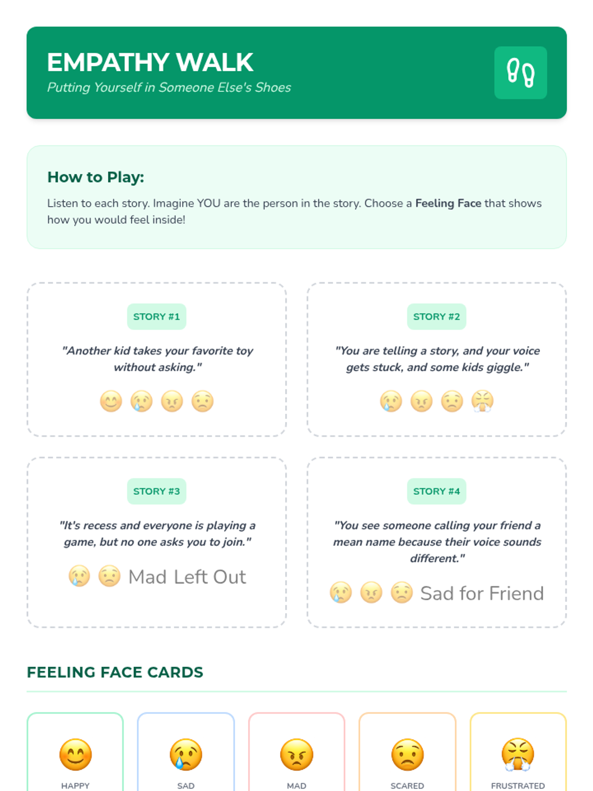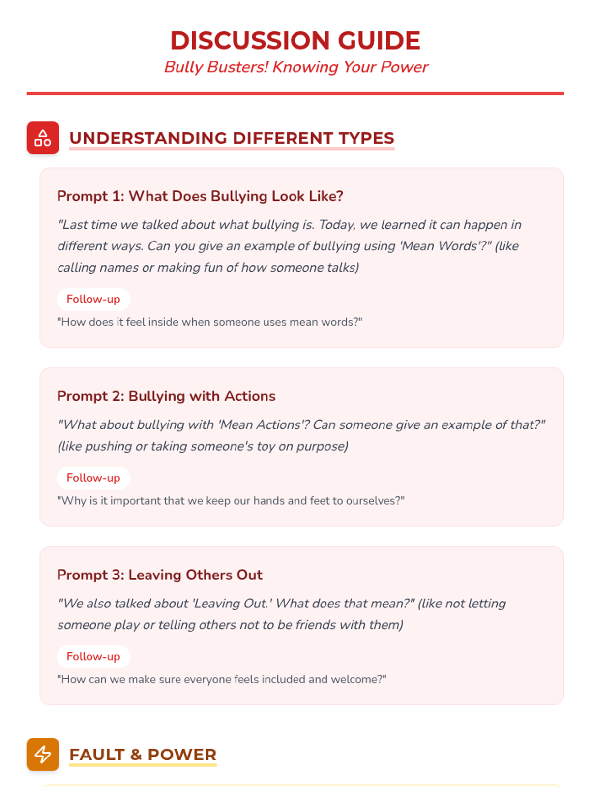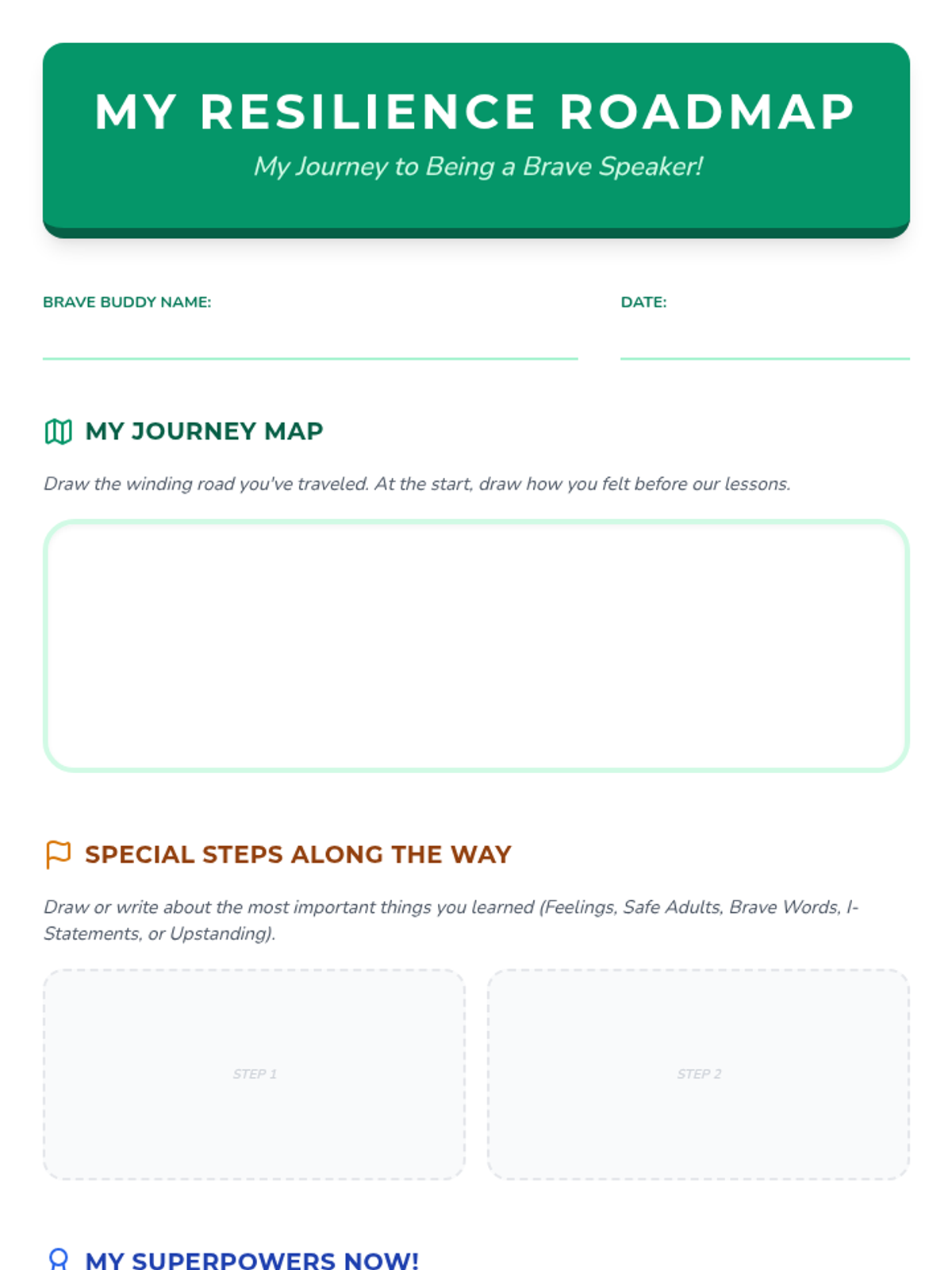 A six-lesson series for K-3 students with communication IEPs, specifically those who stutter. The sequence focuses on defining bullying, identifying feelings, building self-advocacy through brave words and I-statements, and fostering empathy to become upstanders.