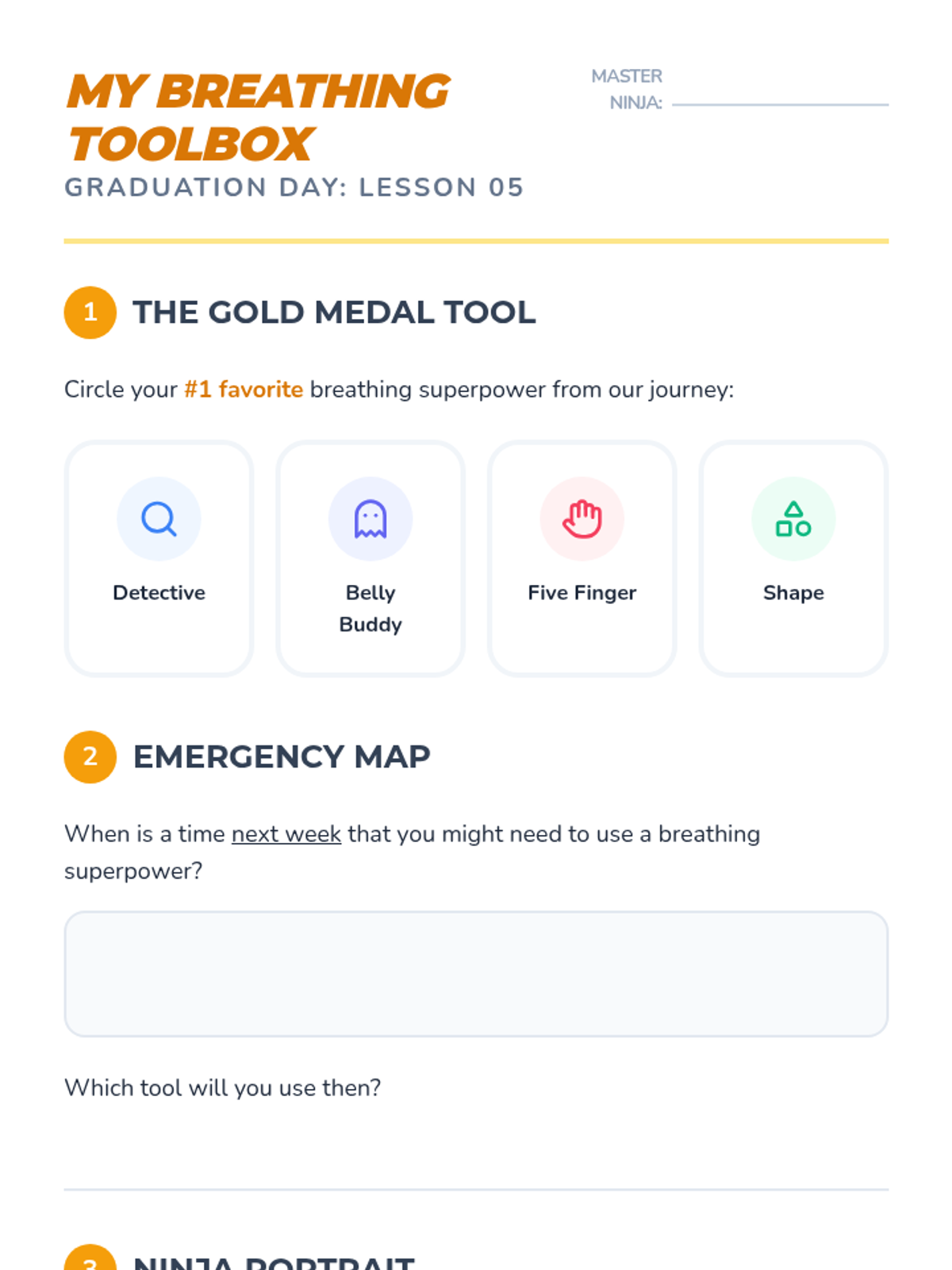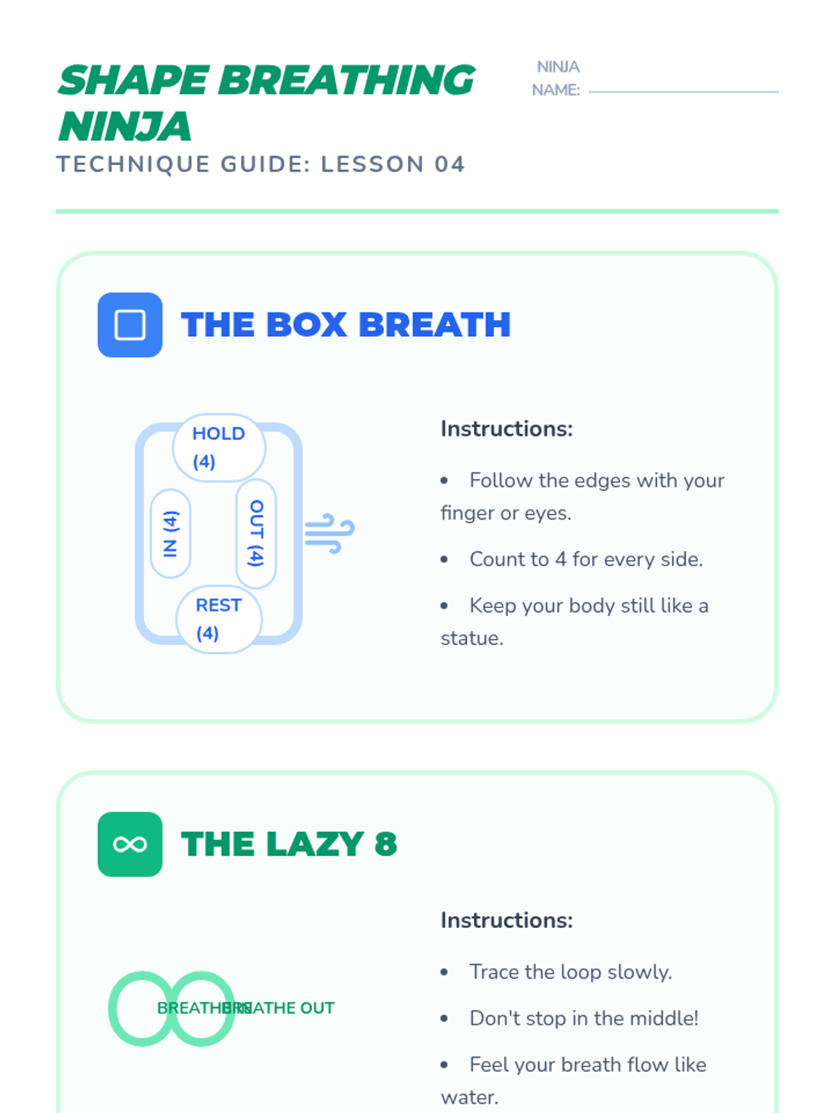This sequence introduces 2nd-grade students to foundational controlled breathing techniques for self-regulation. Students progress from observing their natural breath to mastering diaphragmatic breathing, tactile tracing, and visual shape-breathing strategies to manage stress and emotions independently.