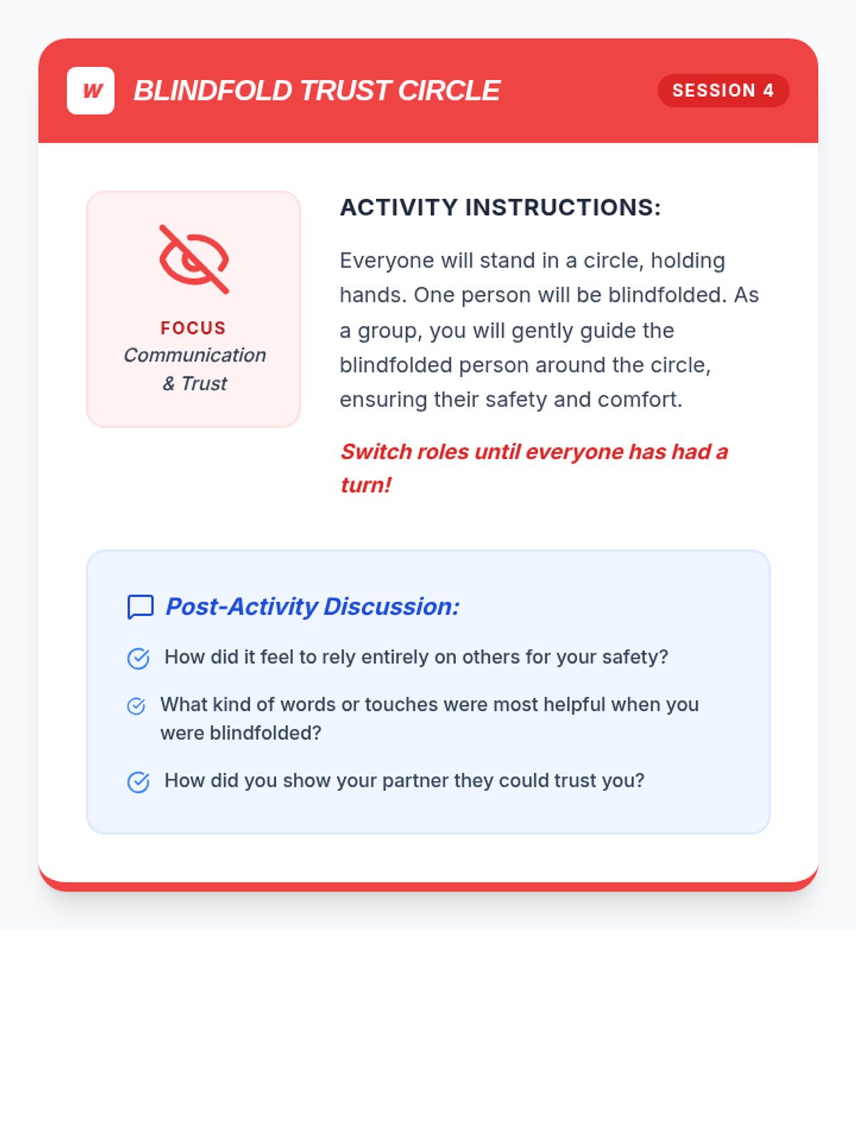 A comprehensive 8-session program designed for youth ages 9-18, focusing on essential life skills including self-esteem, resilience, time management, and conflict resolution through interactive role-plays and guided instruction.