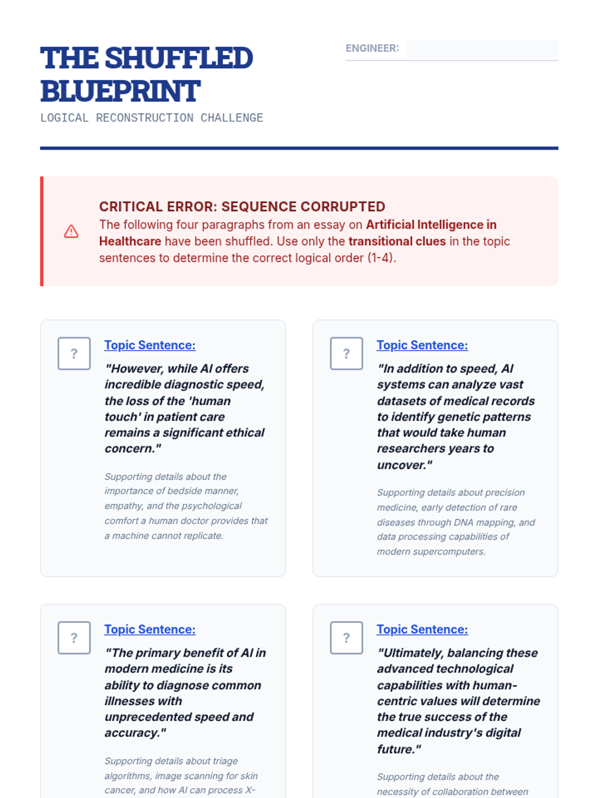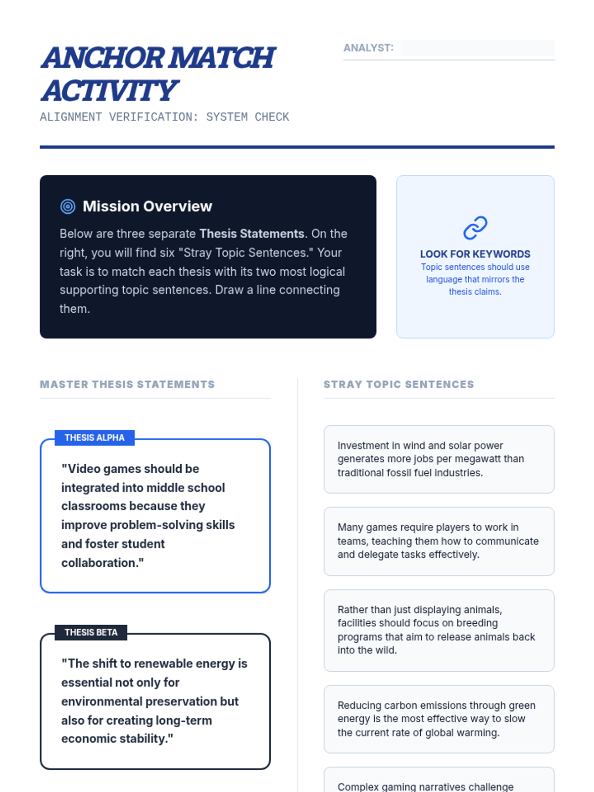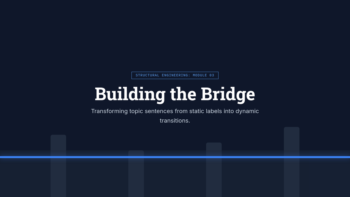 A comprehensive sequence for 8th-grade students focusing on the architectural role of topic sentences as bridges between thesis statements and evidence. Students move from identifying basic functions to crafting sophisticated transitions in analytical writing.