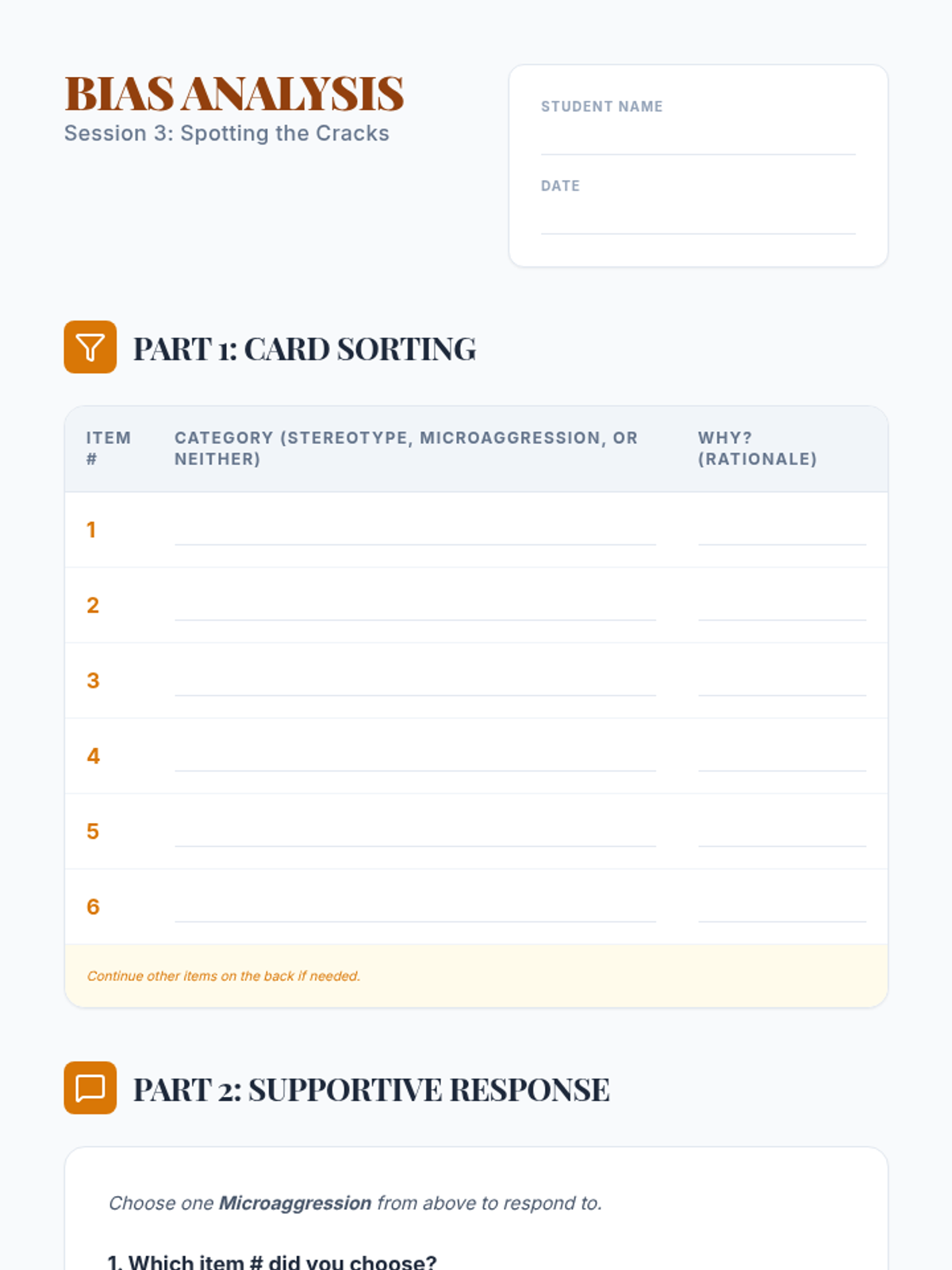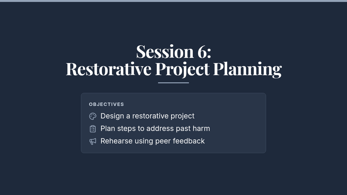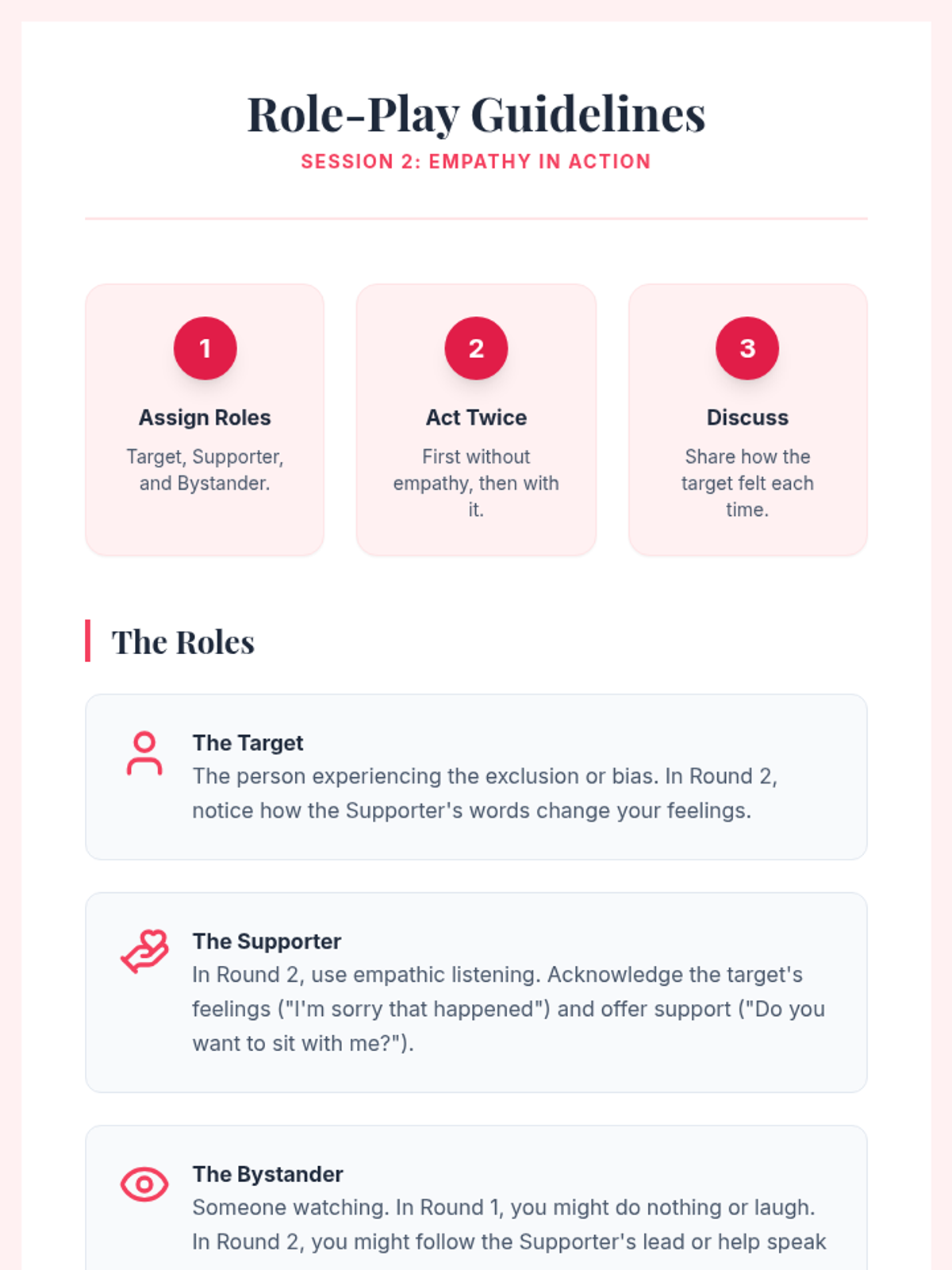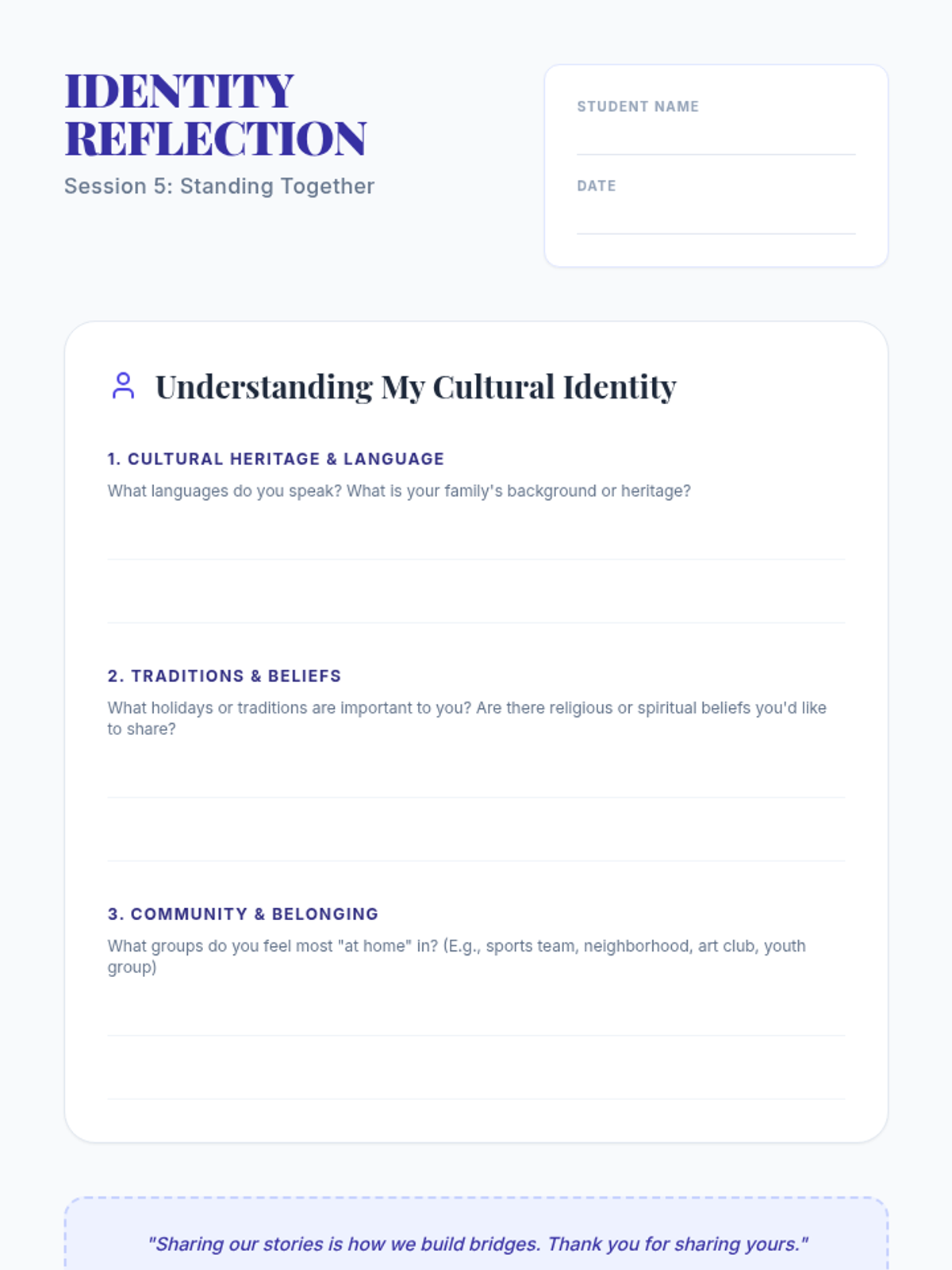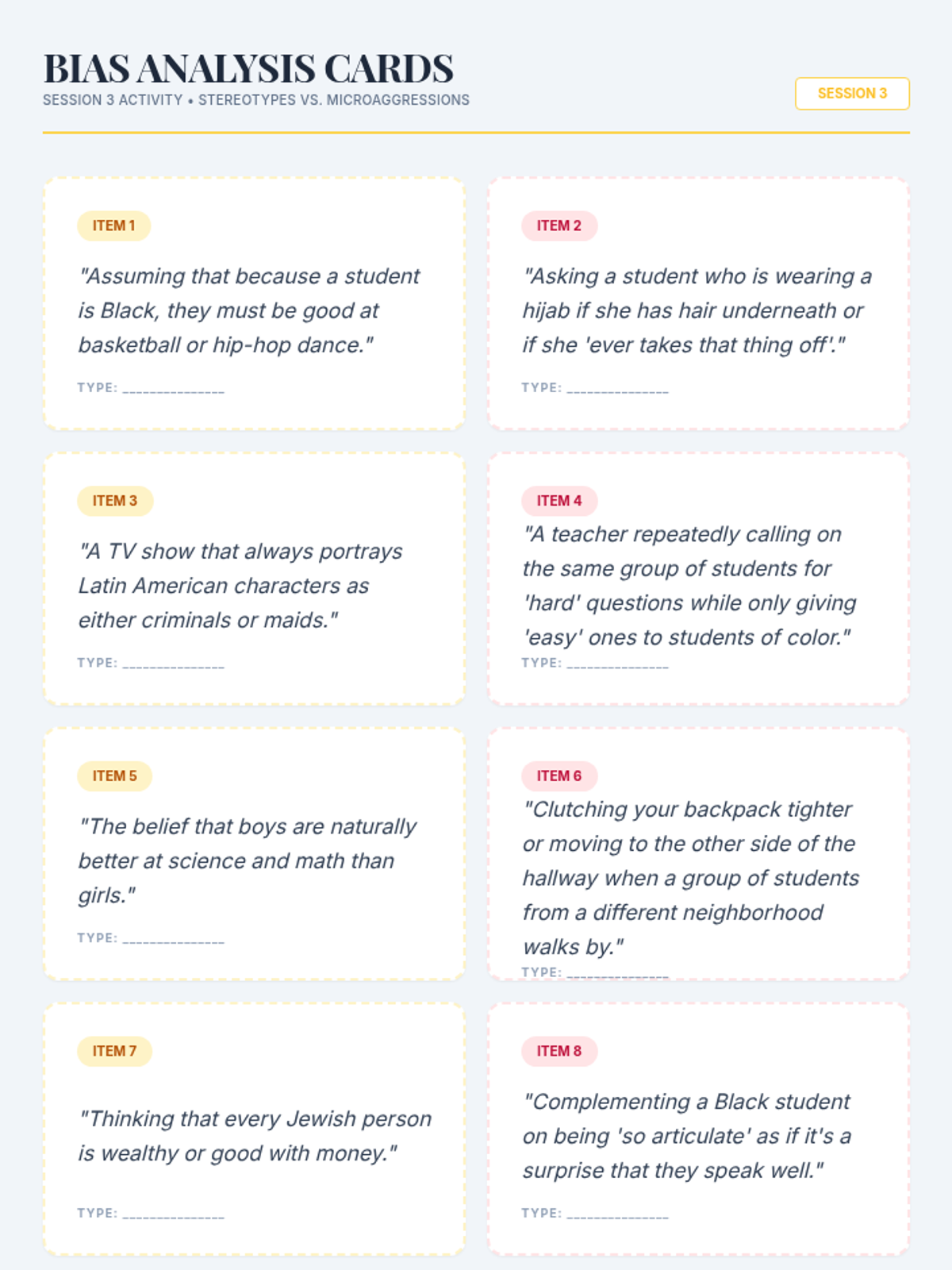 A six-session unit for 6th graders to explore empathy, diversity, and restorative practices after incidents of bullying tied to religion and race. Students learn to identify bias, practice healthy communication, and build inclusive communities.