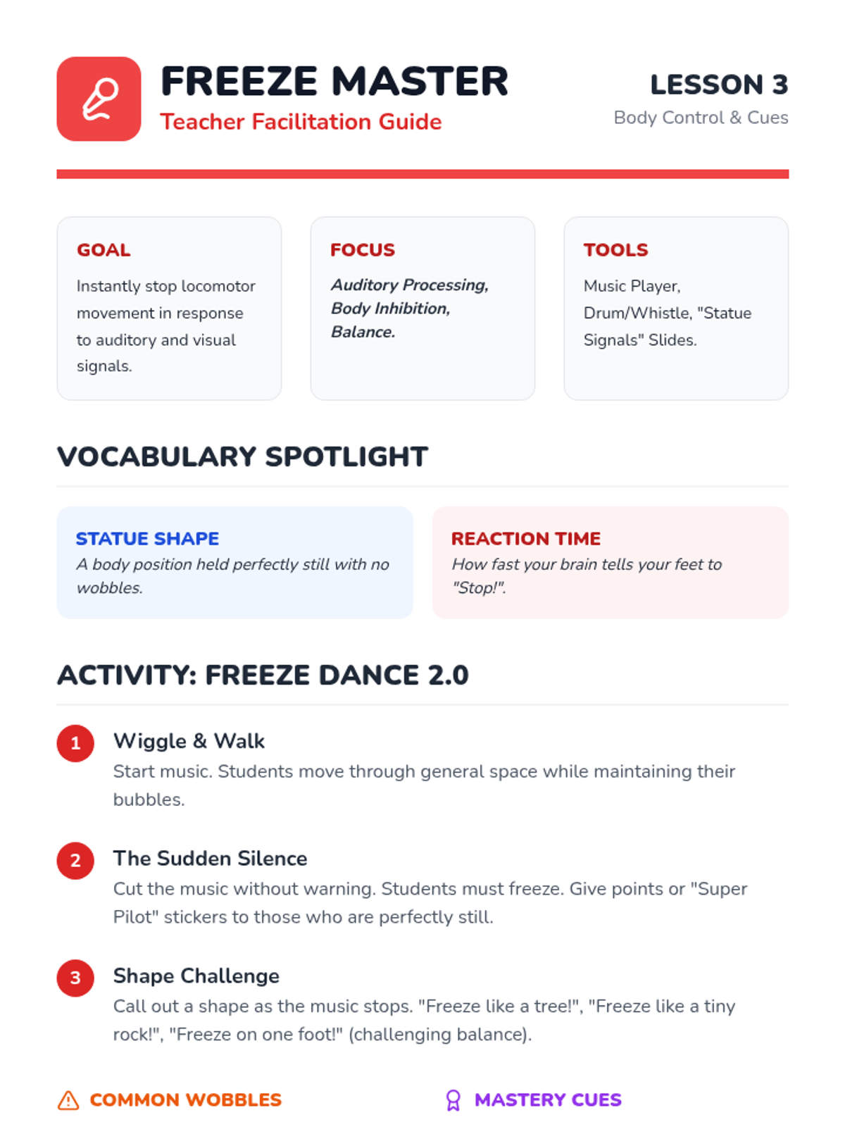 A four-day music and movement unit for K-3 students focused on collaboration, rhythm, and creative choreography. Groups work together to select songs and build original dance routines.