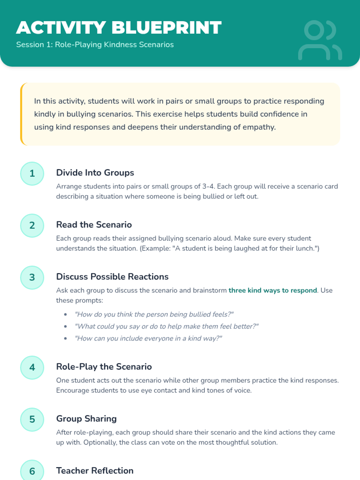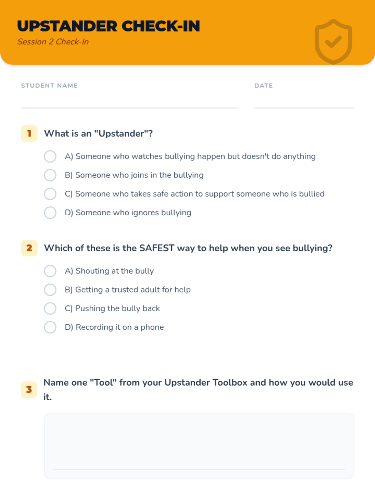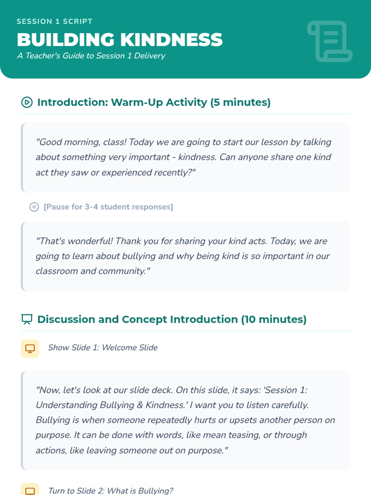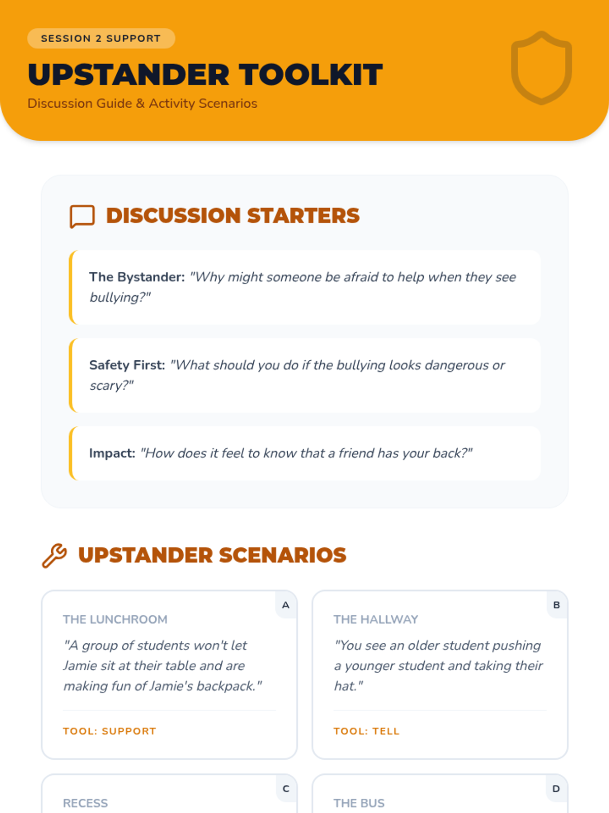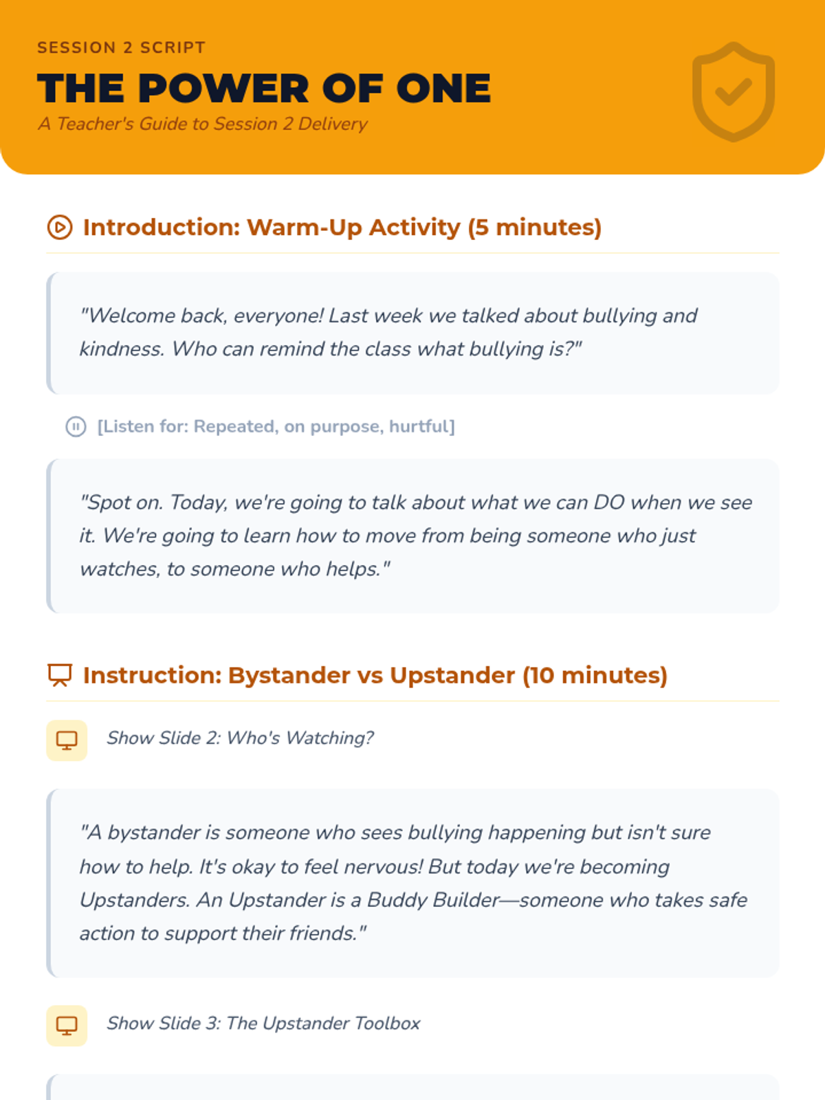 A comprehensive 3-session series for 3rd graders focused on defining bullying, empowering upstanders, and establishing a lasting culture of kindness in the classroom.
