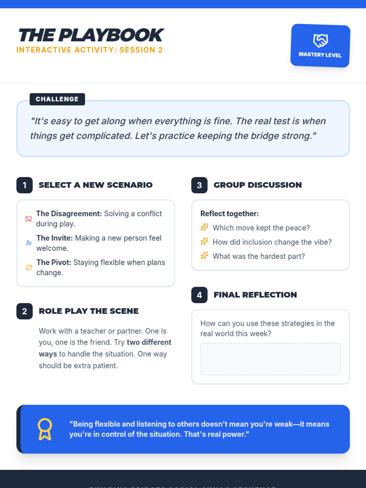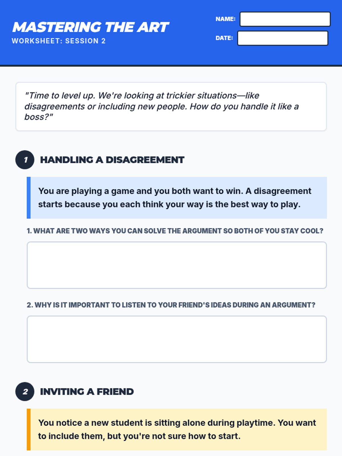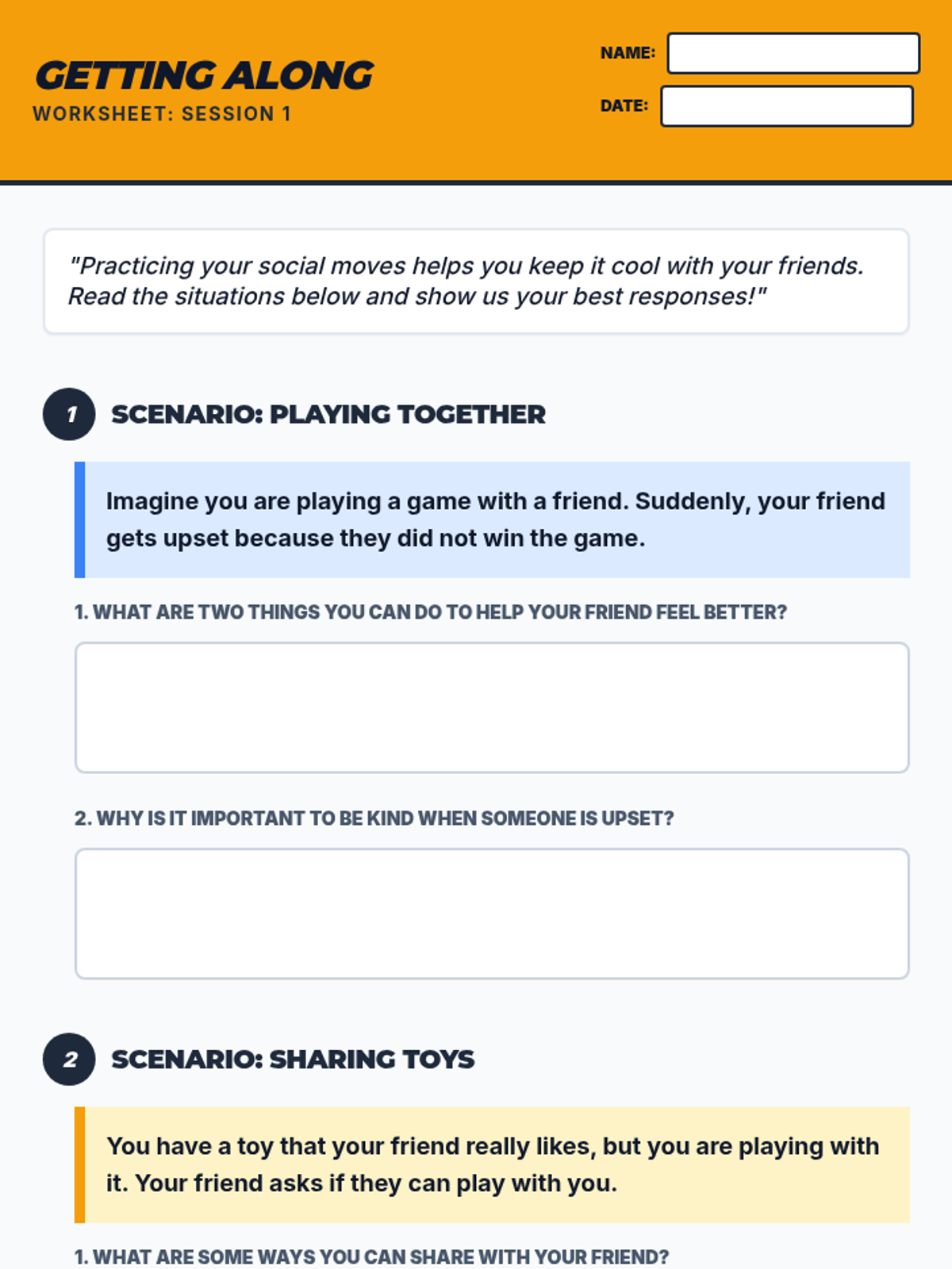 A social skills intervention sequence for special education students, focusing on practical strategies for peer interaction, sharing, and conflict resolution through relatable urban-themed scenarios.