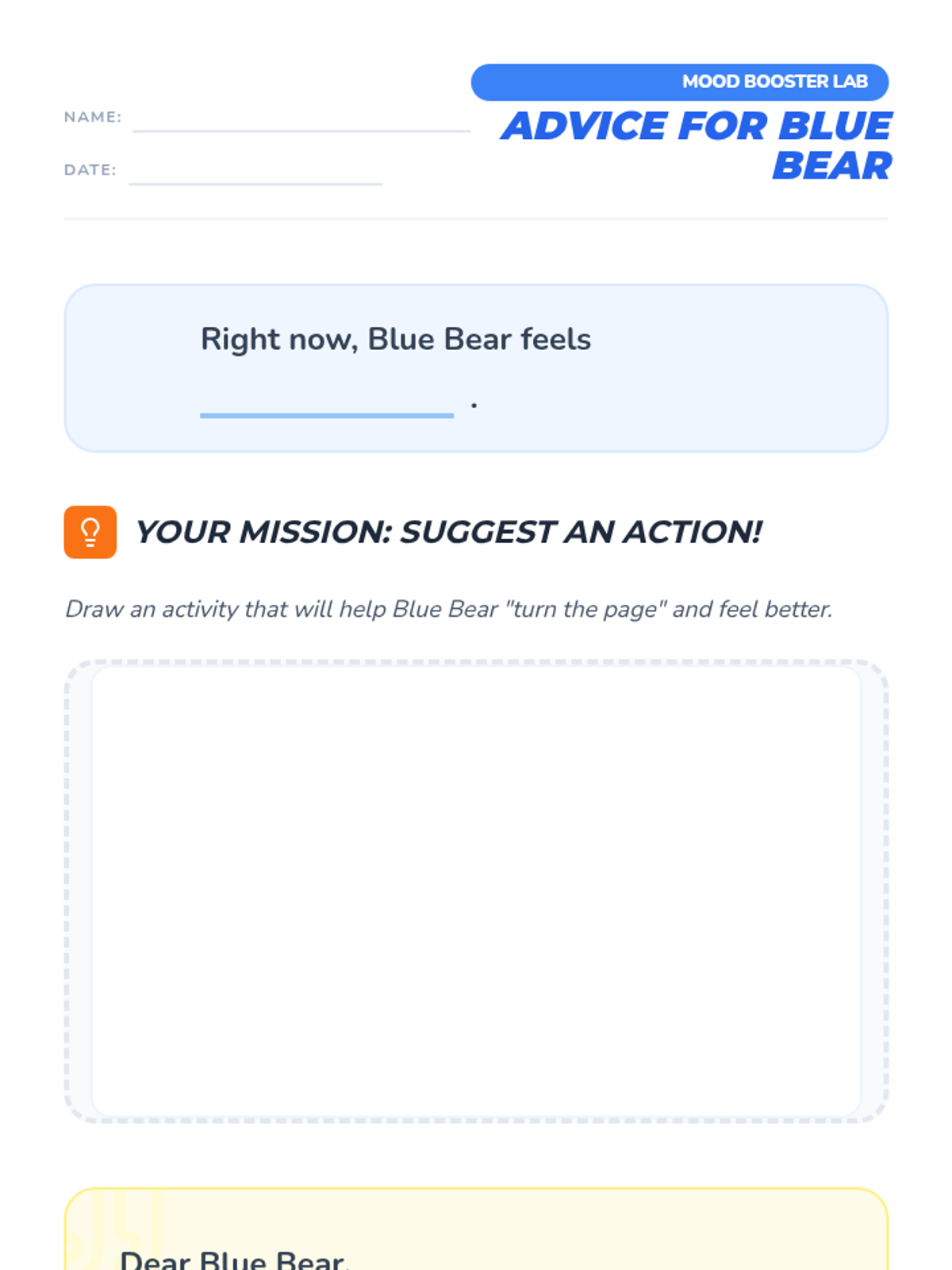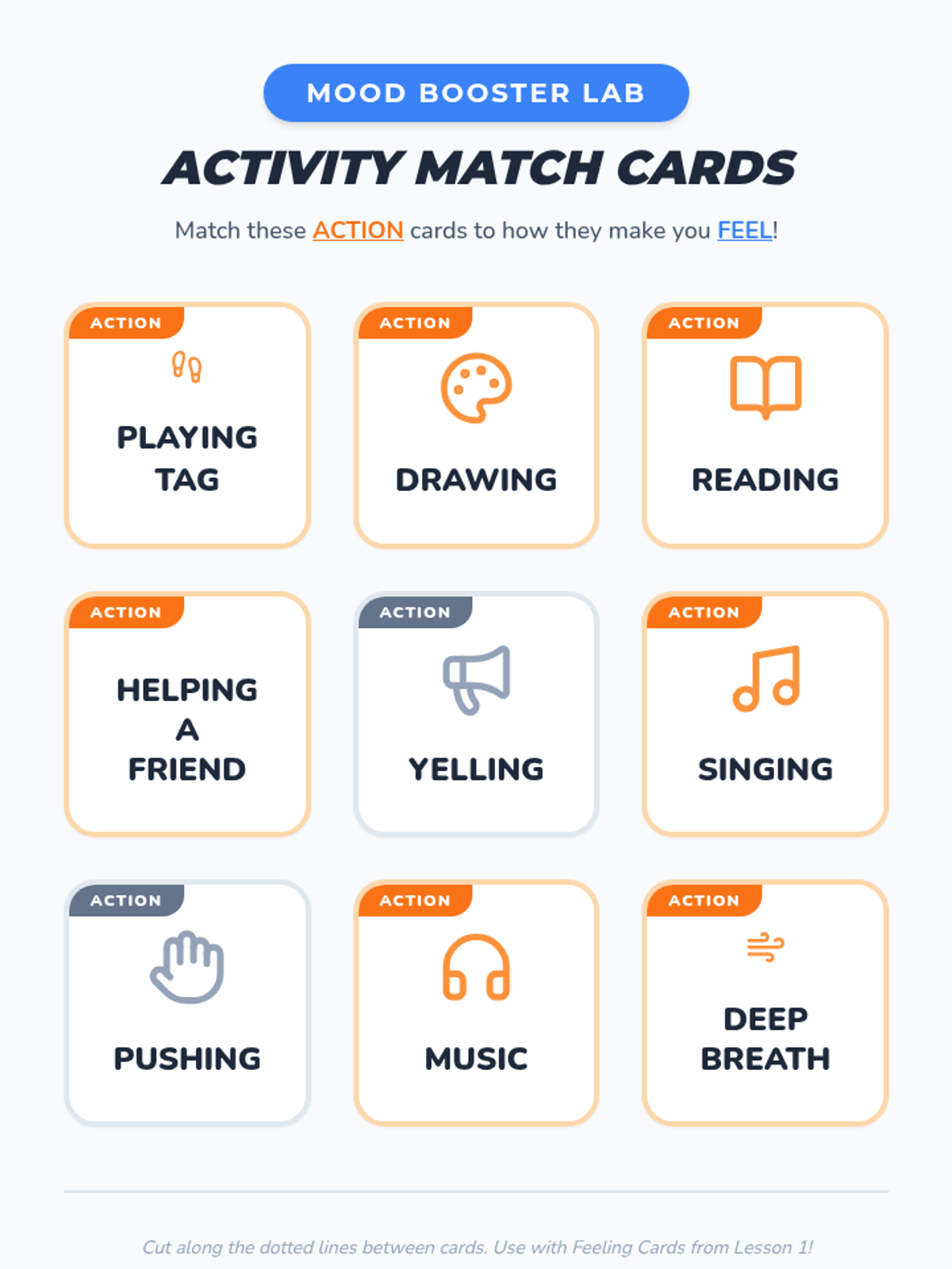 This sequence introduces first-grade students to the fundamental connection between their actions and their emotions, serving as a foundational introduction to behavioral activation. Students explore how specific activities can shift their mood and create a personalized action plan for emotional regulation.