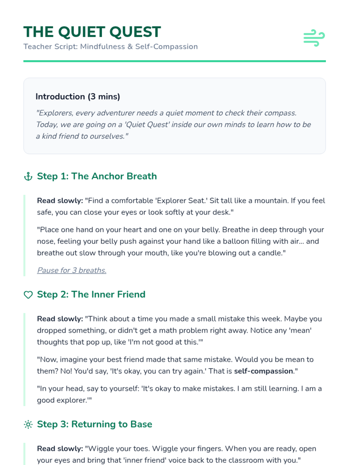 A 6-session counseling group designed to help students identify triggers, understand physical symptoms of anxiety, and build a personalized toolkit of coping strategies through a 'Calm Explorer' theme.