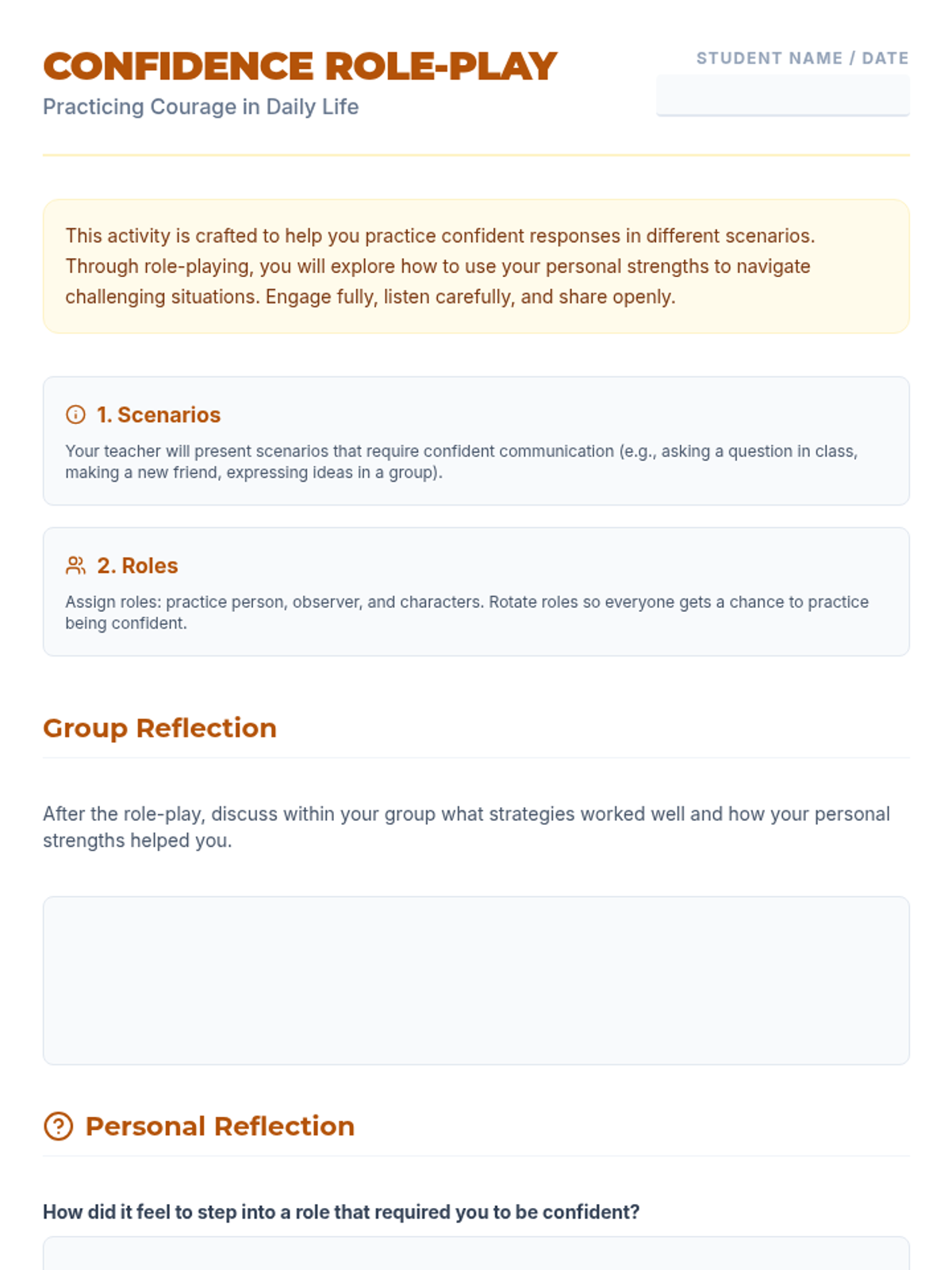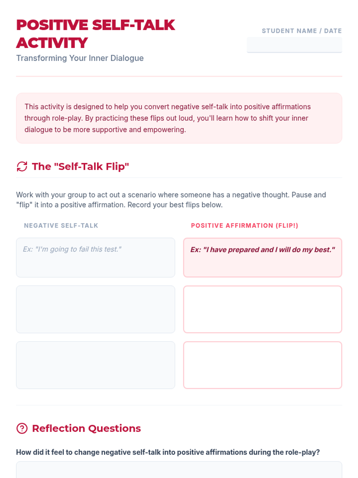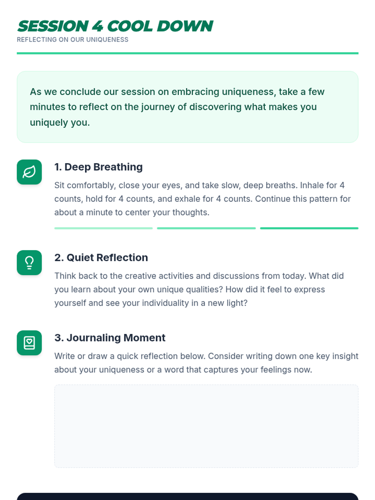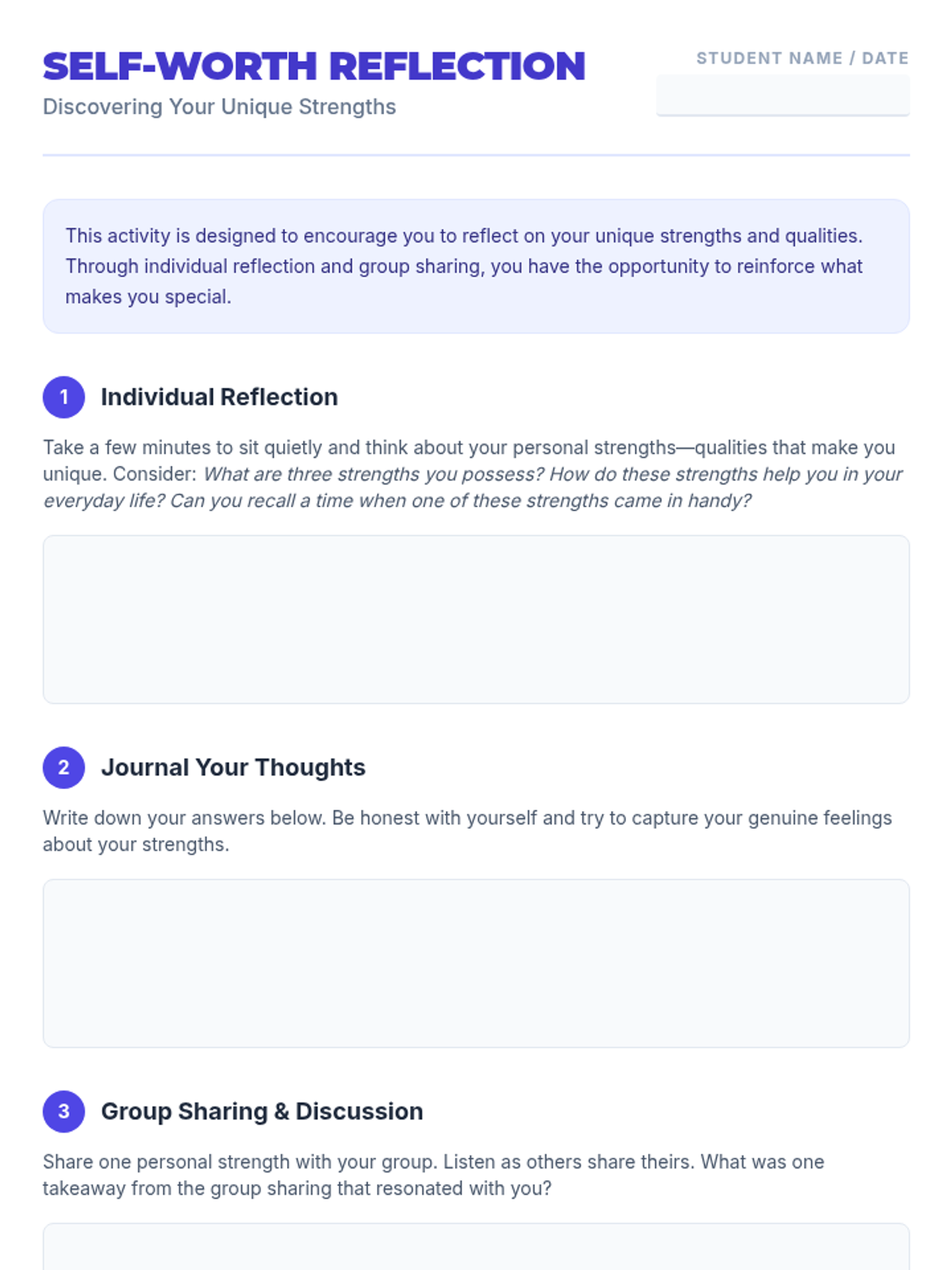 A 5-session Tier 3 intervention for 6th-grade students focused on building self-esteem, recognizing self-worth, and developing resilience through reflective activities and goal-setting.