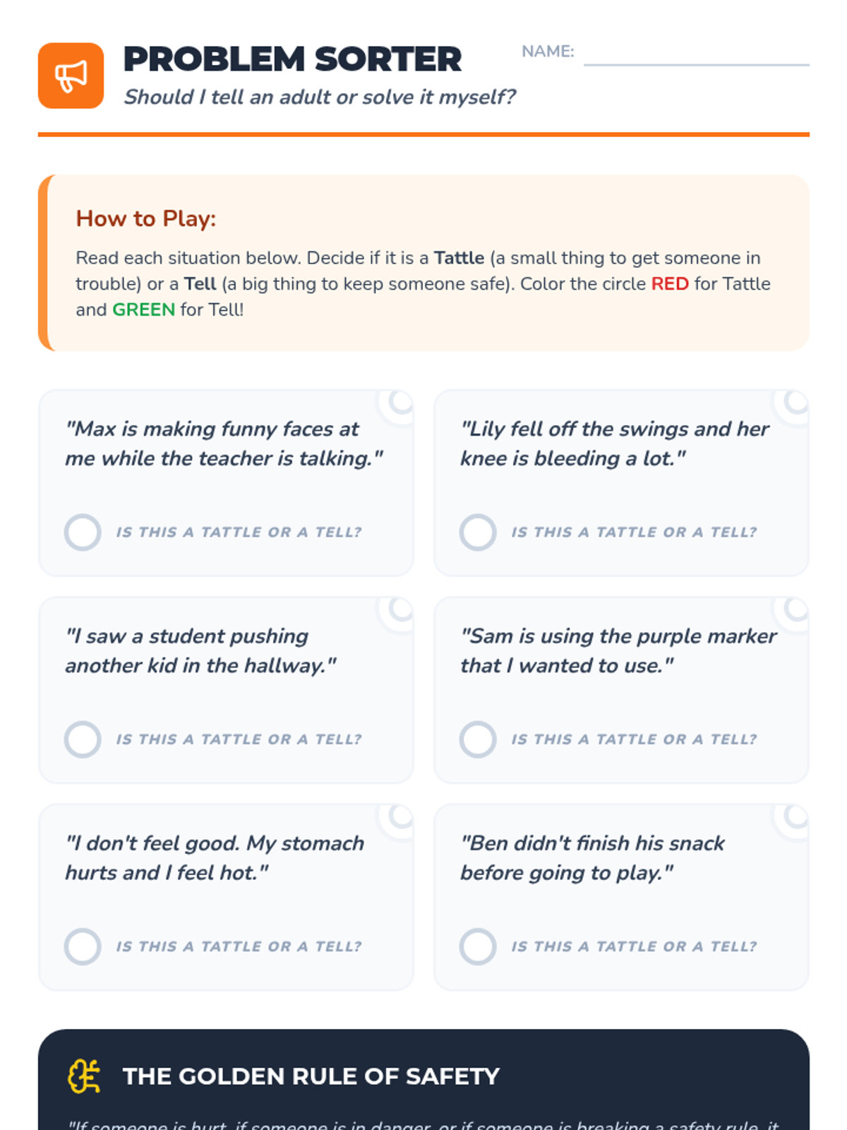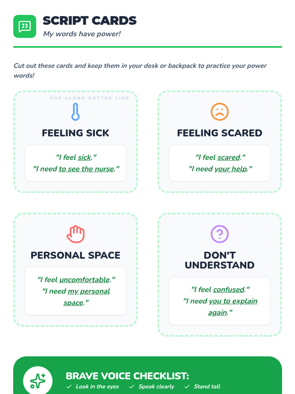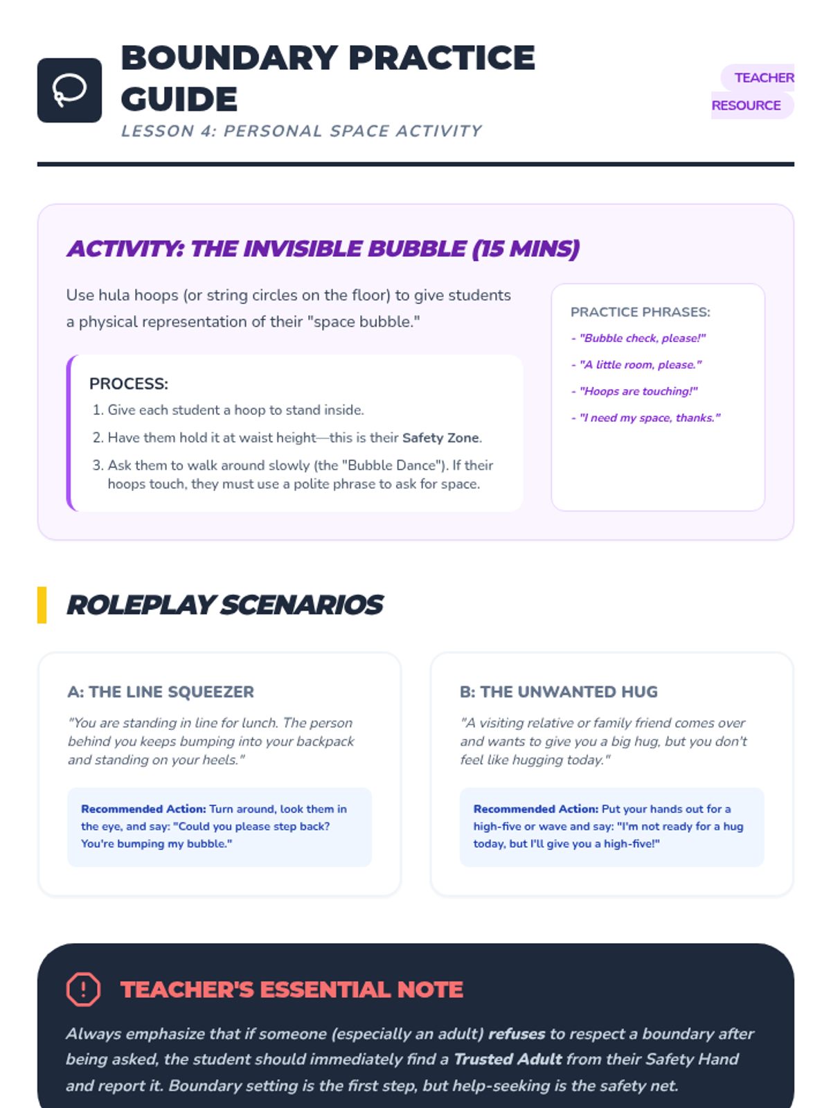 A 5-lesson sequence for 2nd graders focused on identifying support systems, distinguishing between tattling and reporting, practicing 'I' statements, setting personal boundaries, and applying self-advocacy skills in real-world scenarios. Students will build a comprehensive toolkit for seeking help and communicating their needs confidently.