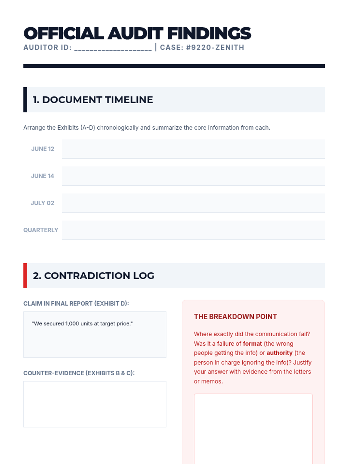 A comprehensive 10th-grade ELA sequence where students act as corporate auditors to analyze, interpret, and evaluate internal and external business documents, including memos, formal letters, financial forms, and complex reports.