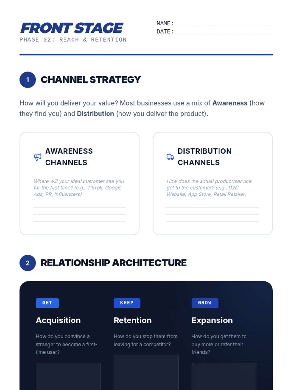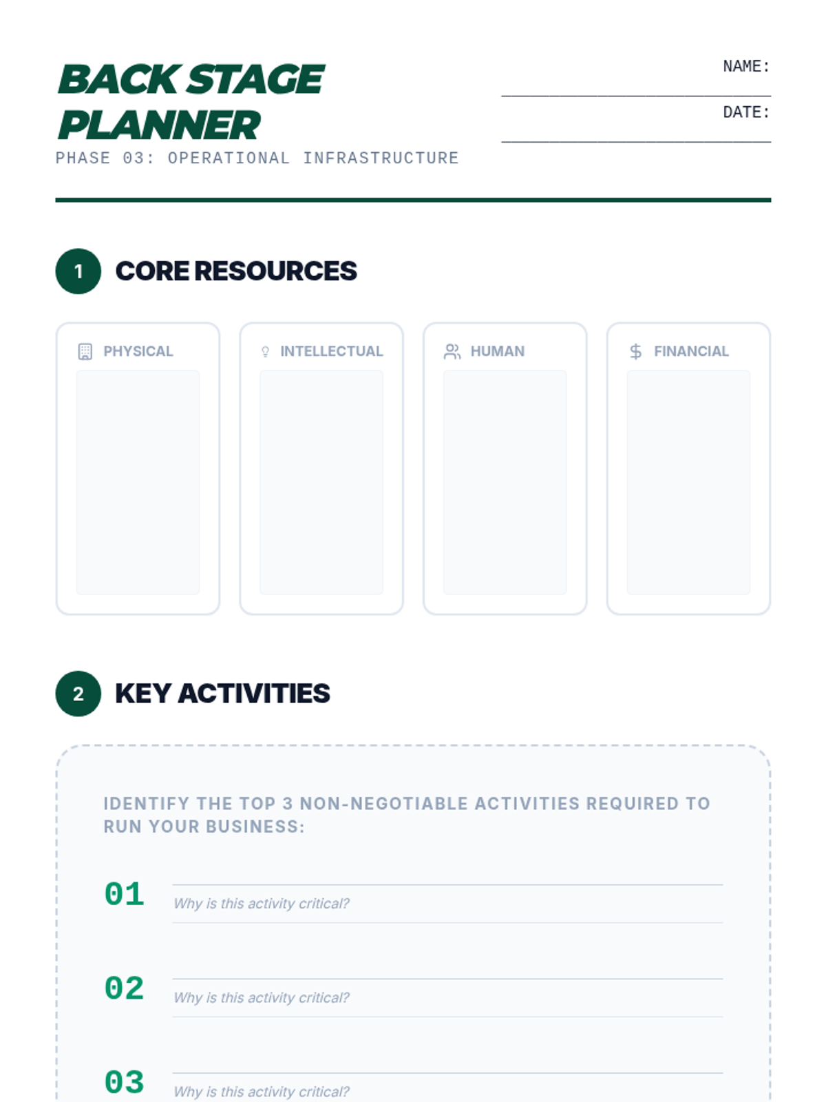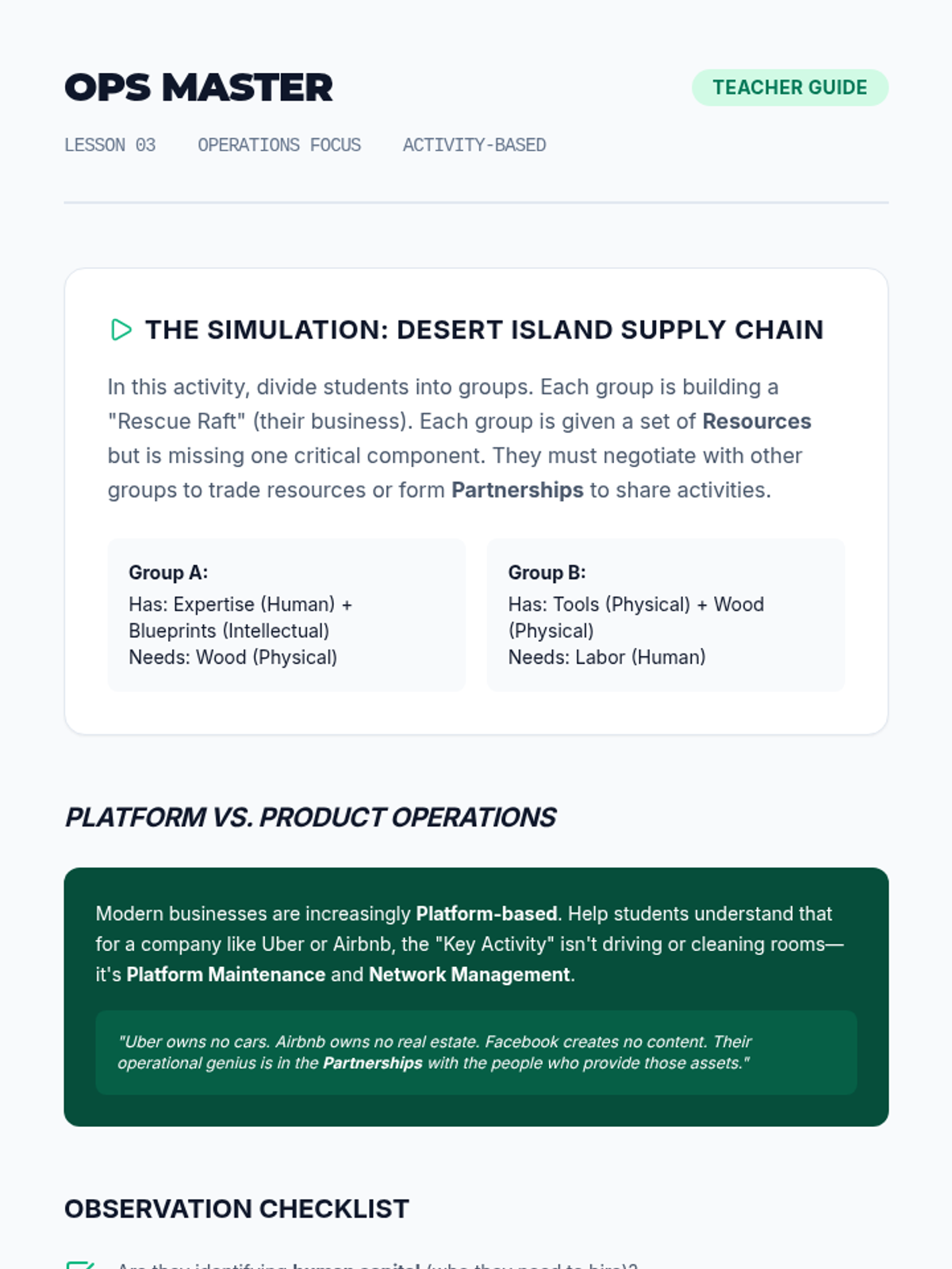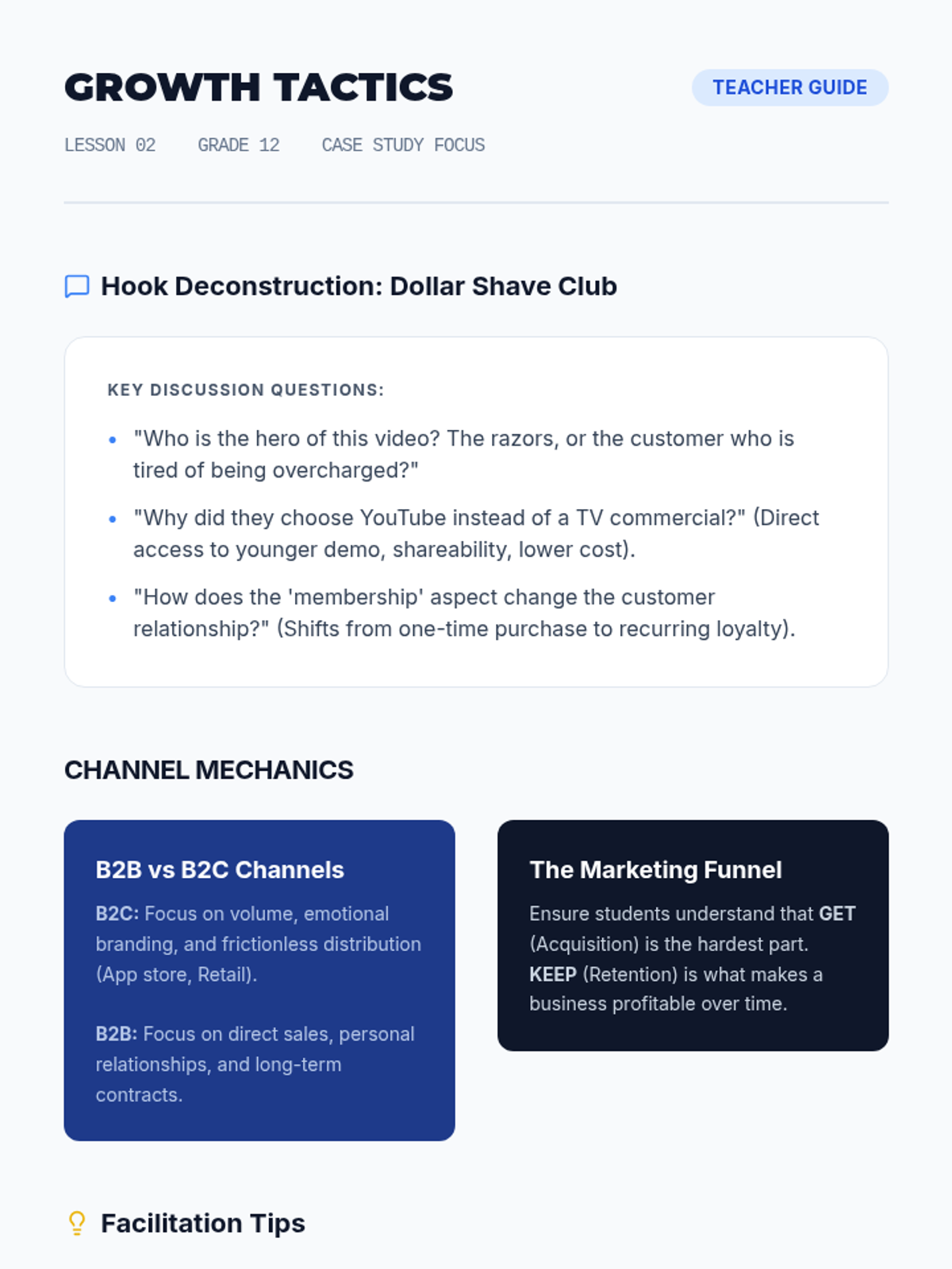 A comprehensive 12th-grade sequence focused on building business models using the Lean Canvas framework. Students move from value proposition design through front-stage customer acquisition and back-stage operations to financial modeling and final model synthesis.