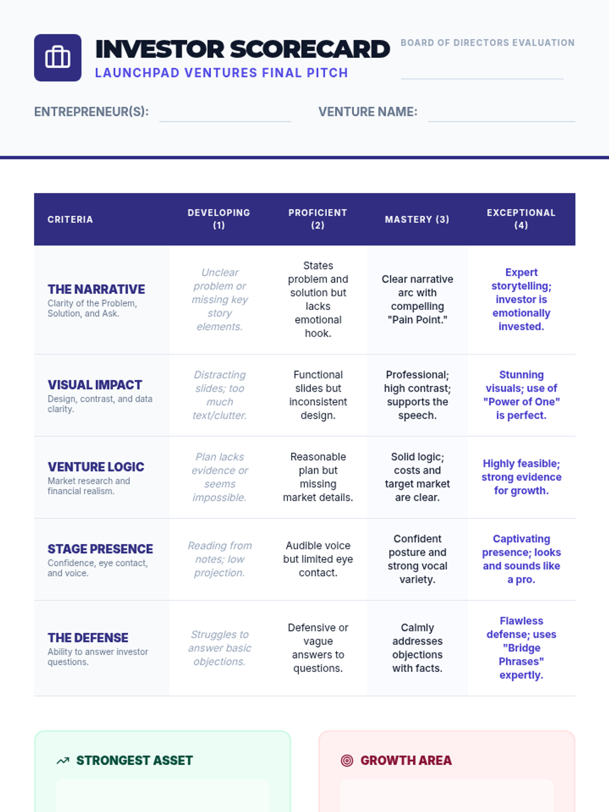 A project-based unit where 6th-grade students synthesize their business planning into a persuasive pitch. Students learn the art of storytelling, visual design, and public speaking, culminating in a final Shark Tank-style presentation event.