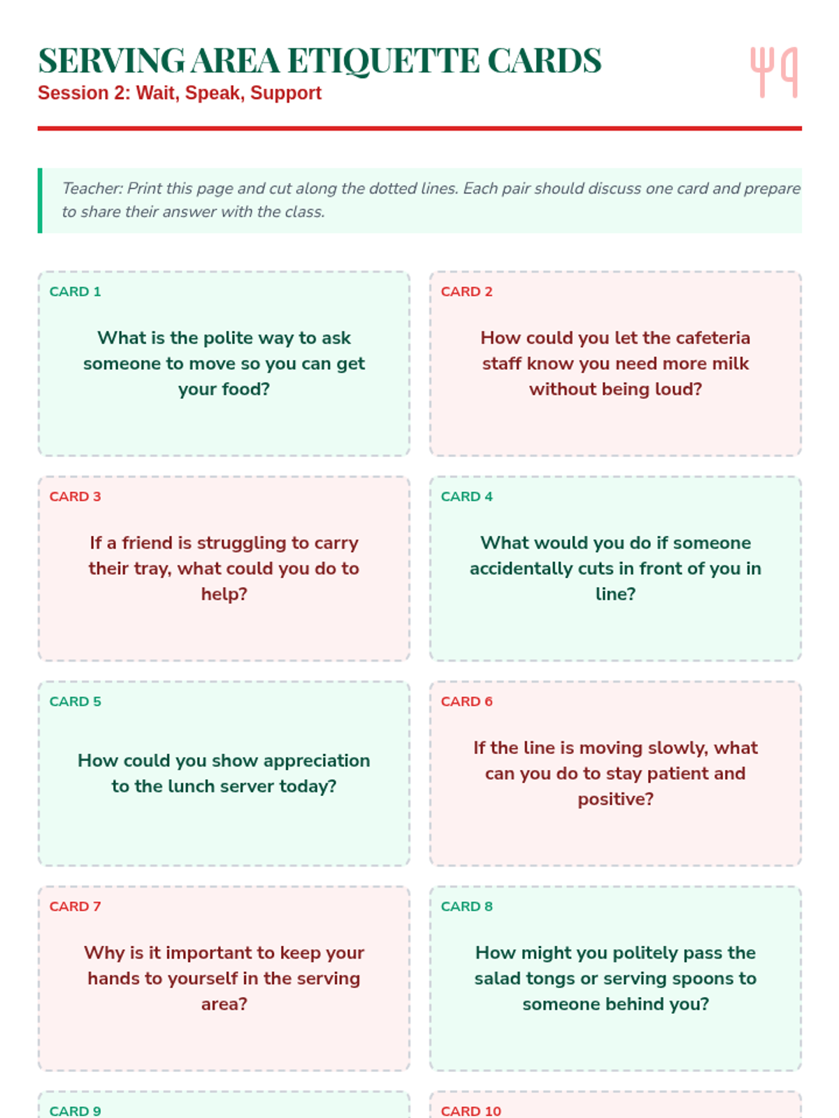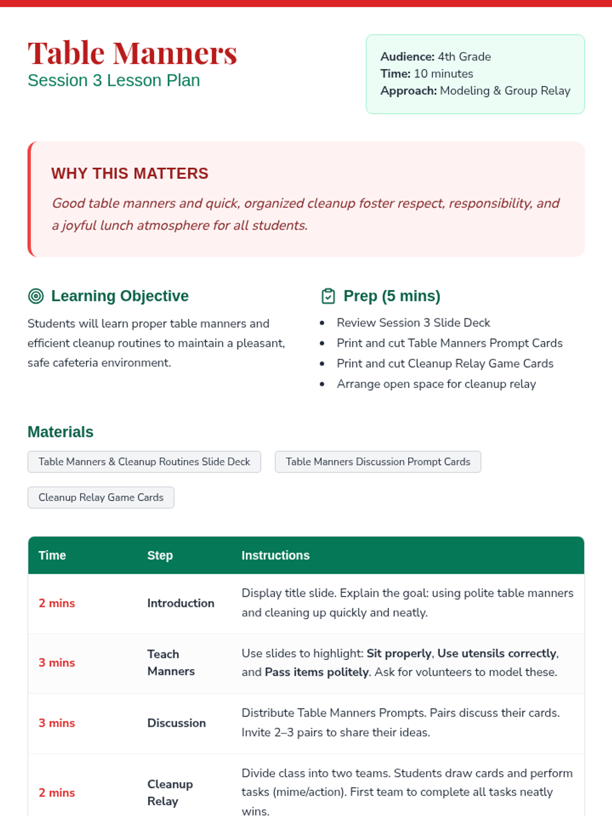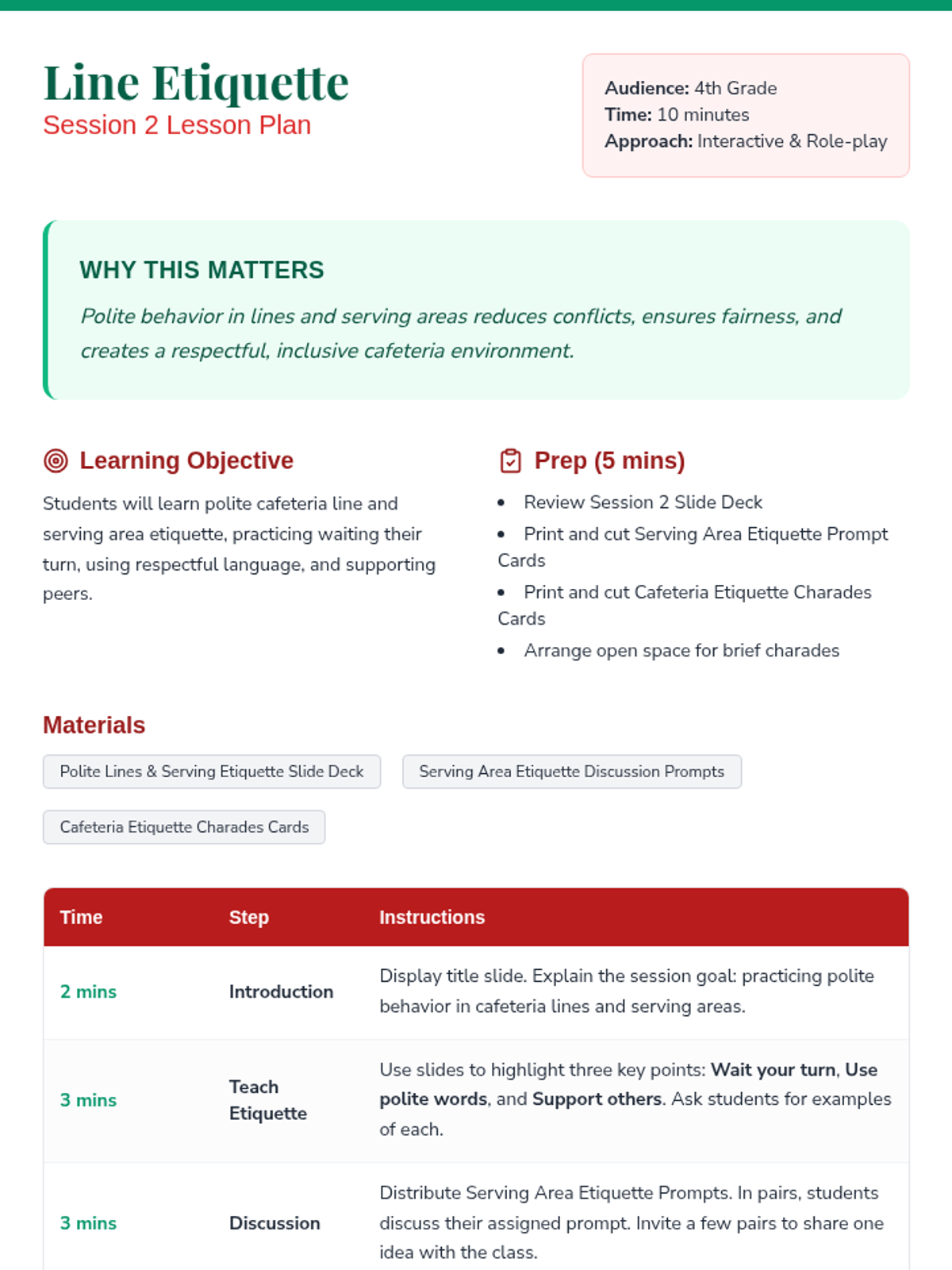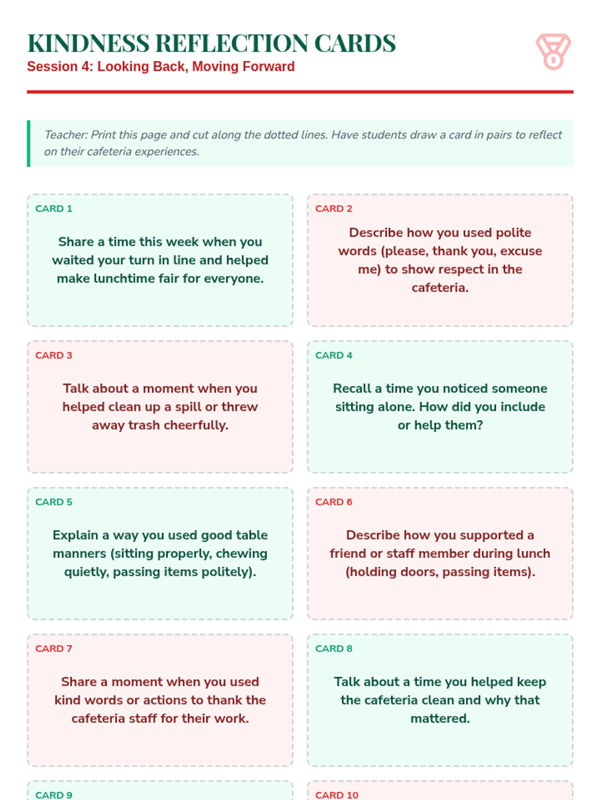 A 4-session series for 4th graders focused on spreading kindness and following cafeteria expectations during the holiday season. The lessons use interactive games, slides, and discussions to reinforce positive routines and social skills.