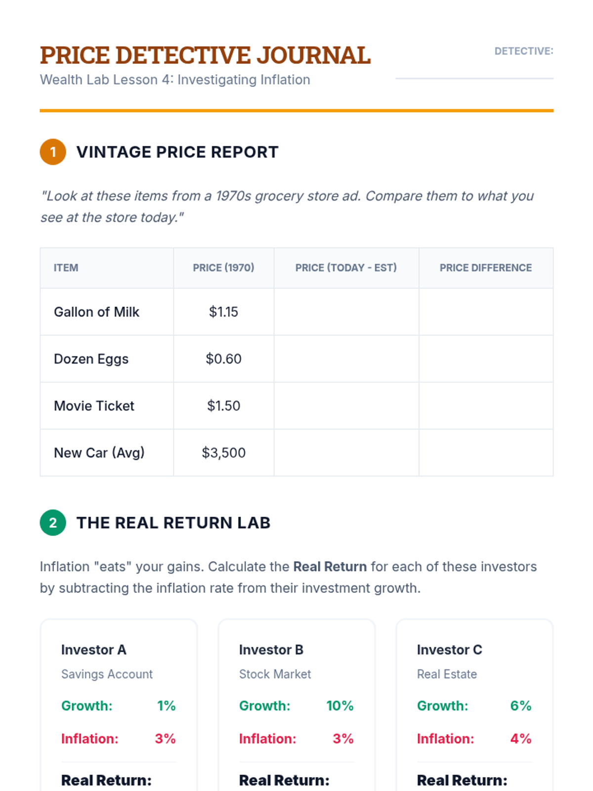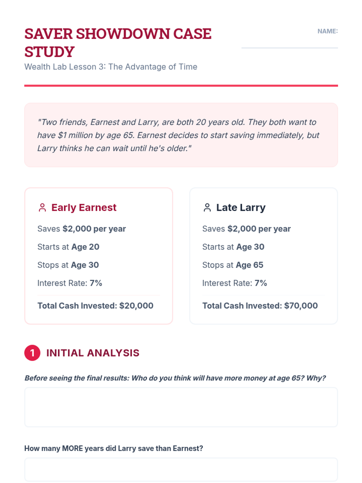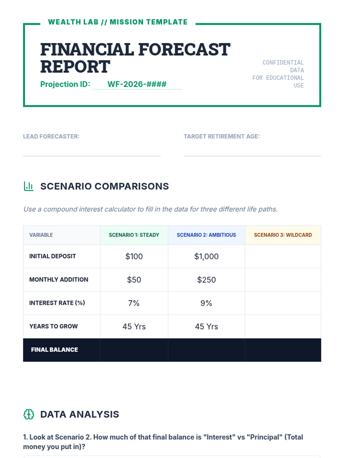 This 5-lesson sequence demystifies compound interest for 6th graders, moving from manual calculations to future wealth projections using the Rule of 72 and the Time Value of Money.