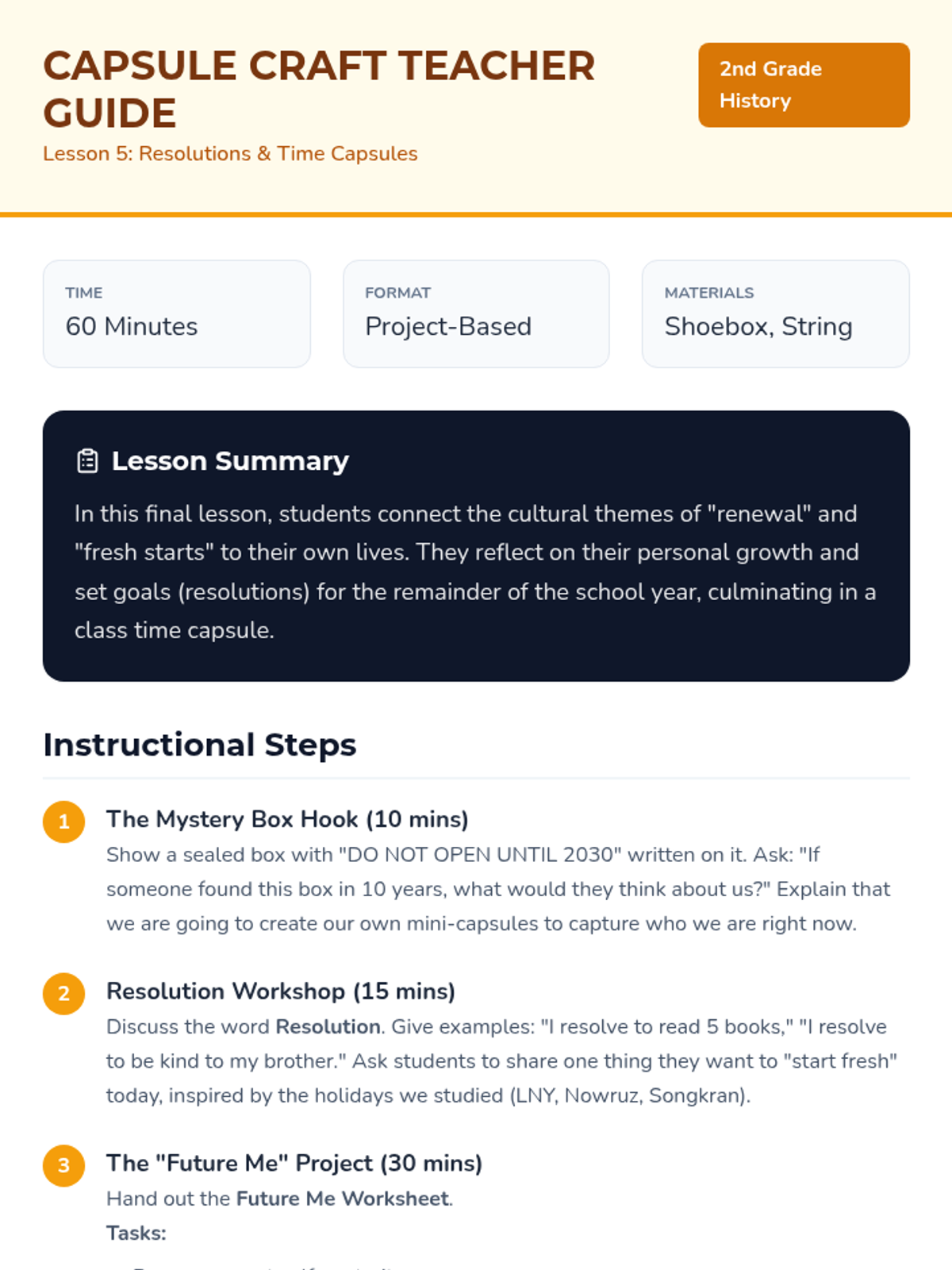 This sequence explores how different cultures measure time and mark new beginnings. Students investigate the relationship between the earth, the moon, and the calendar, discovering why New Year celebrations happen at different times of the year (Solar vs. Lunar).