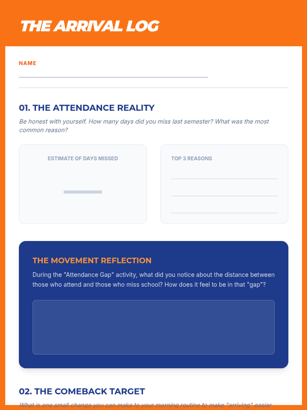 A 6-week academic intervention program for middle schoolers, focusing on attendance, organization, study skills, and self-advocacy through movement-based learning and reflective practice.