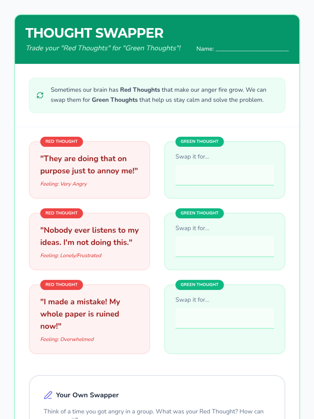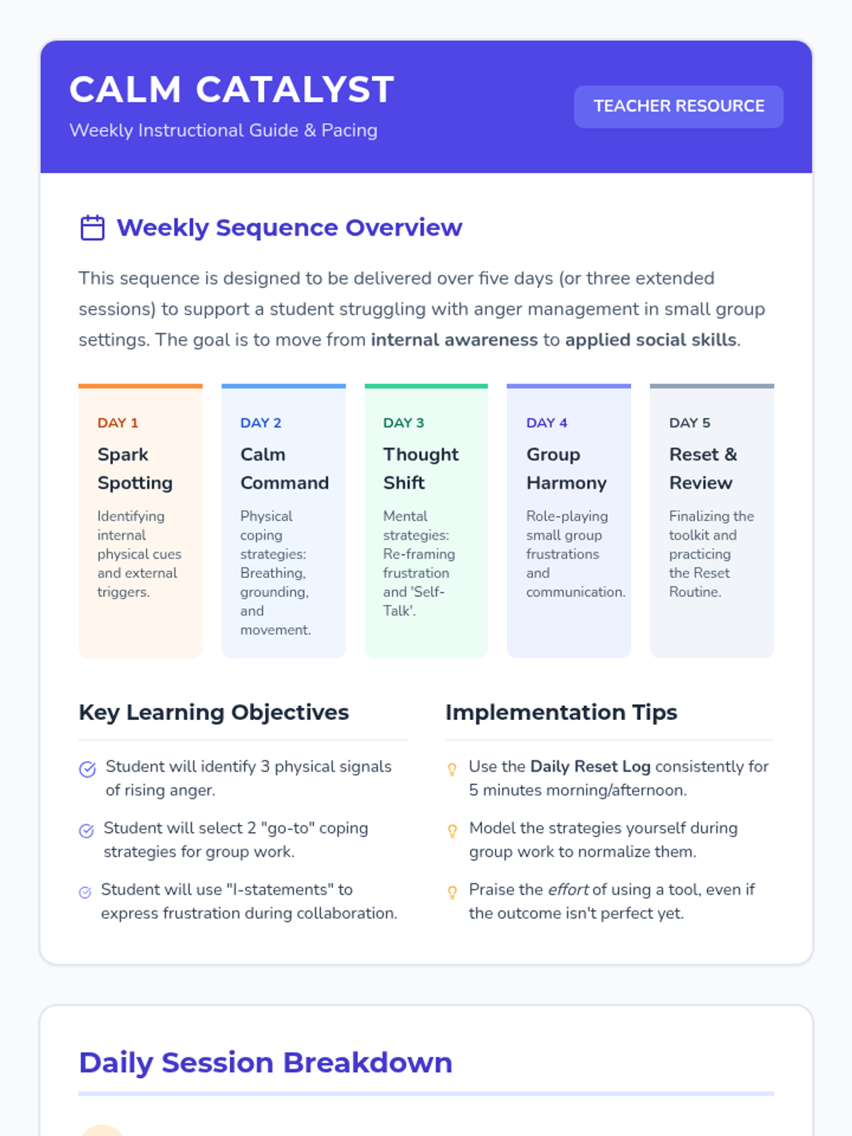 A structured social-emotional learning series designed to help students manage anger, identify triggers, and maintain positive relationships during small group work.