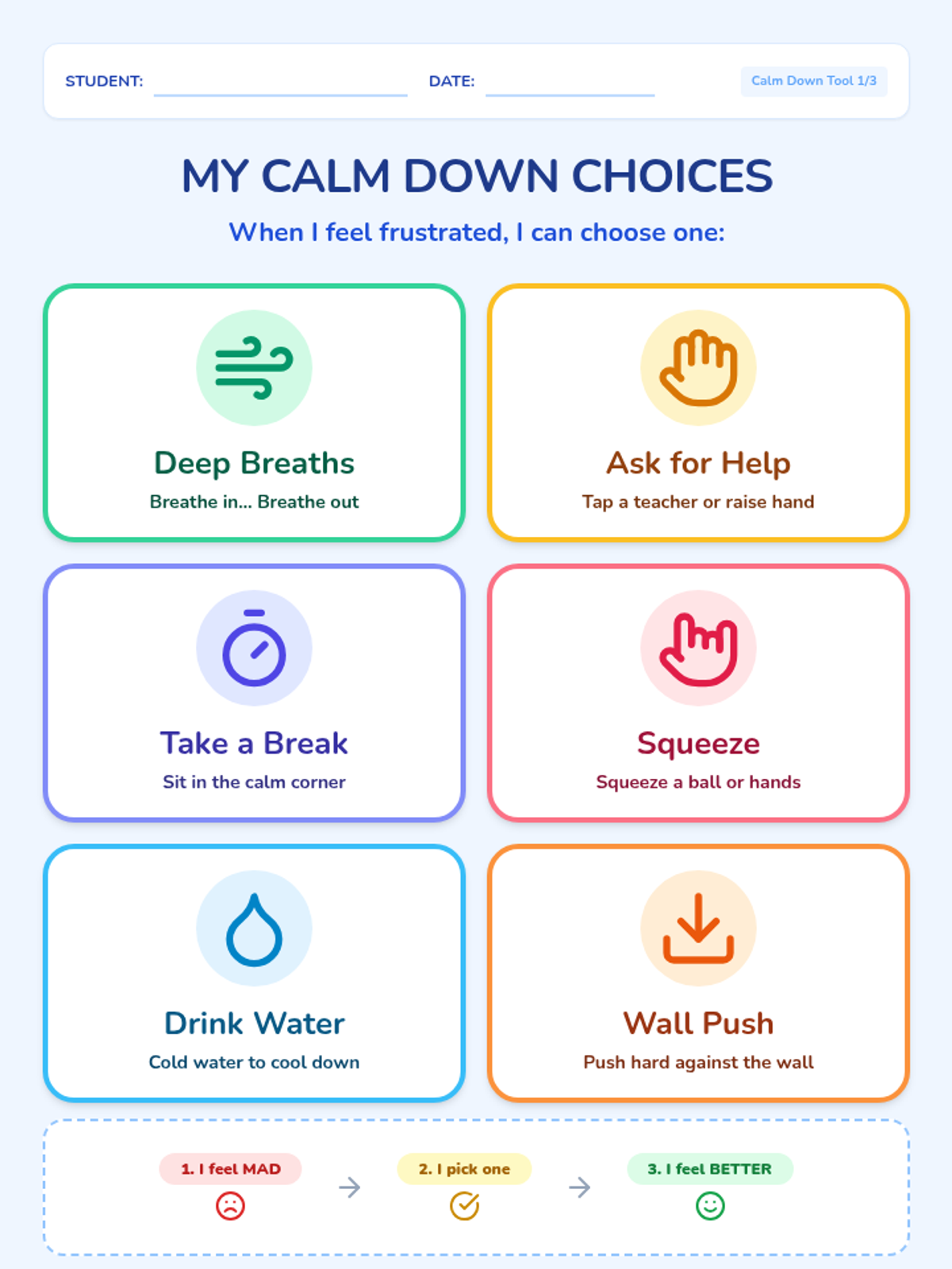 A comprehensive program designed to help students transition from emotional dysregulation to independent coping strategy implementation using a 'Calm Command Center' theme.