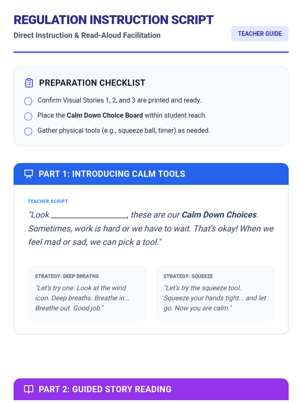 A sequence of lessons and materials designed to help students with low intellectual and communication abilities identify intense emotions and utilize simple self-regulation strategies.