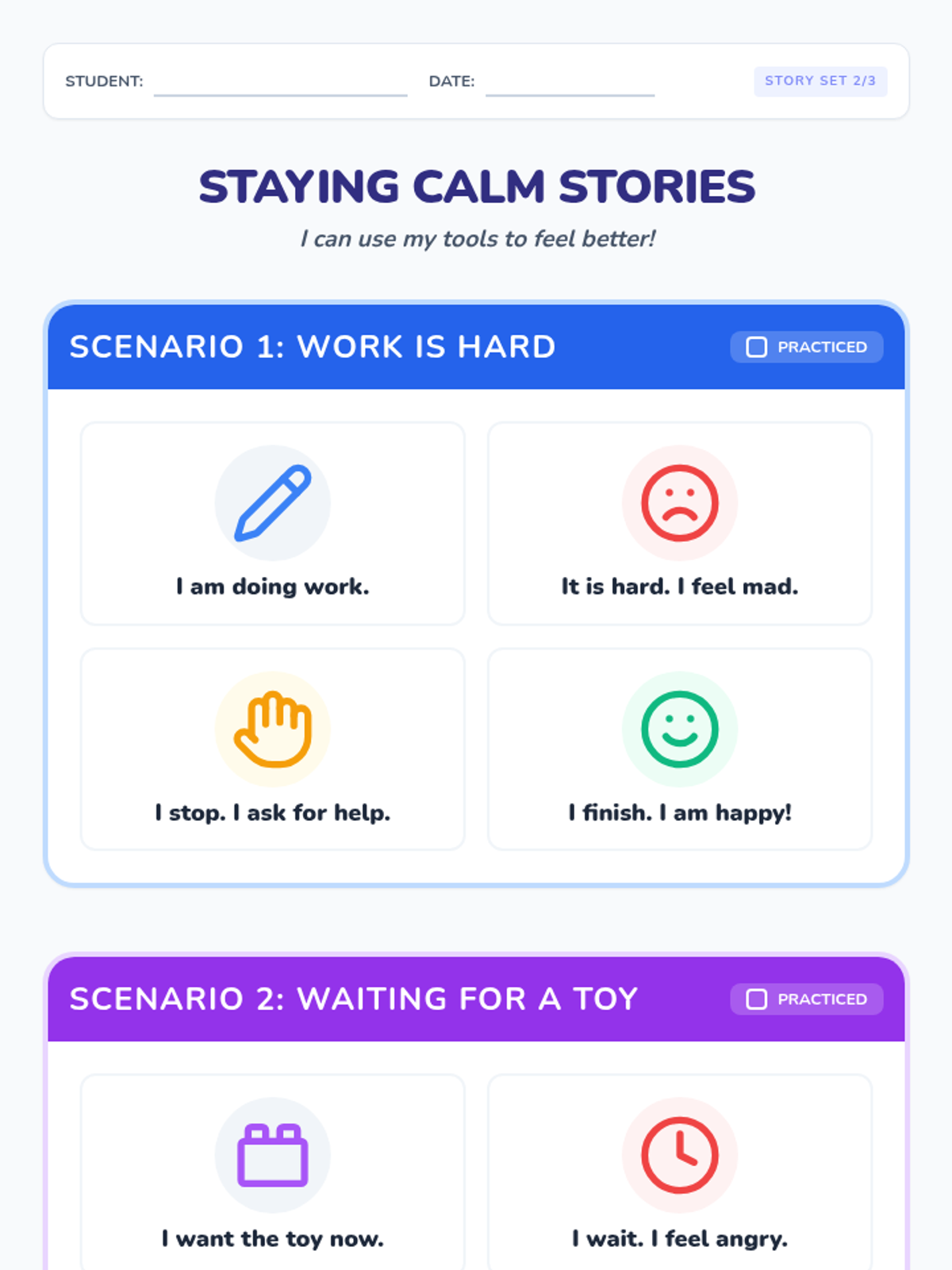 A comprehensive social-emotional learning toolkit spanning K-7, focusing on self-regulation, growth mindset, empathy, and conflict resolution with age-appropriate visual aids and interactive activities.
