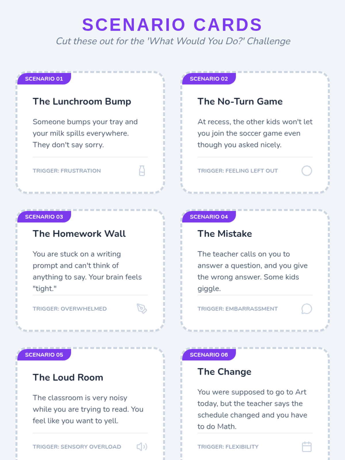 A 5-lesson unit for 3rd graders focused on identifying triggers and applying specific coping strategies like deep breathing, cognitive reframing, and physical movement to manage impulses. Students build a personalized 'Coping Toolkit' to use in moments of dysregulation.