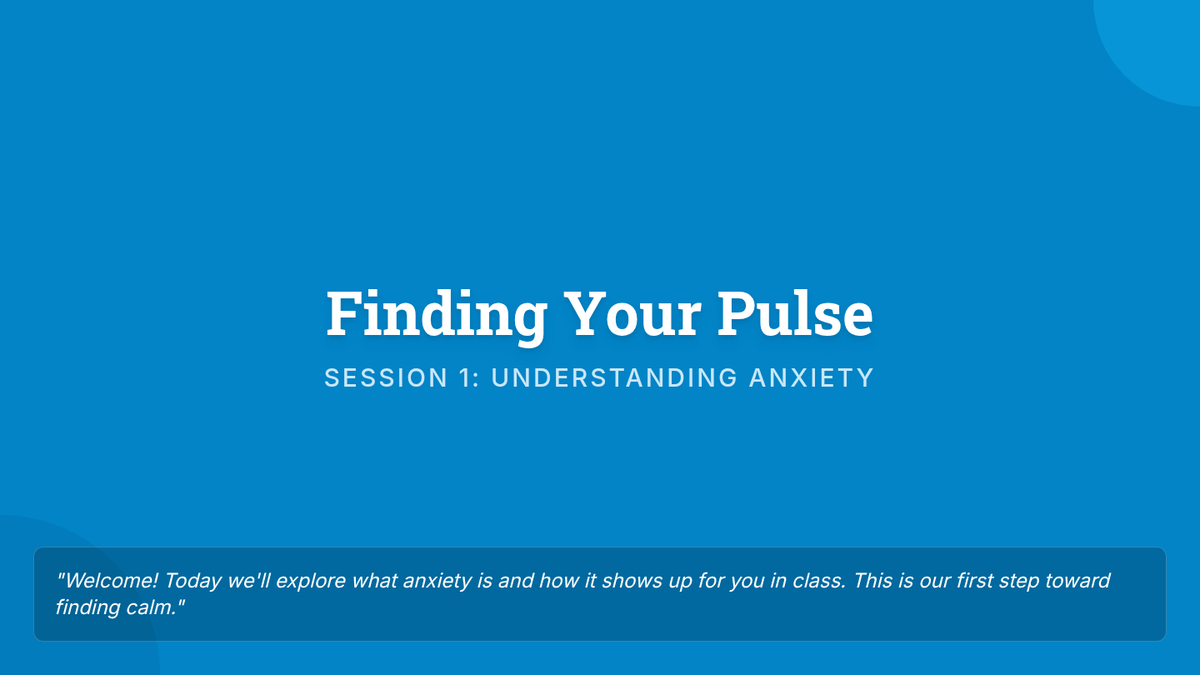A 4-session small group counseling program for high school girls focused on identifying anxiety triggers, practicing mindfulness, and developing a personalized toolkit of coping strategies. The sequence emphasizes peer support, empowerment, and practical application within the school environment.