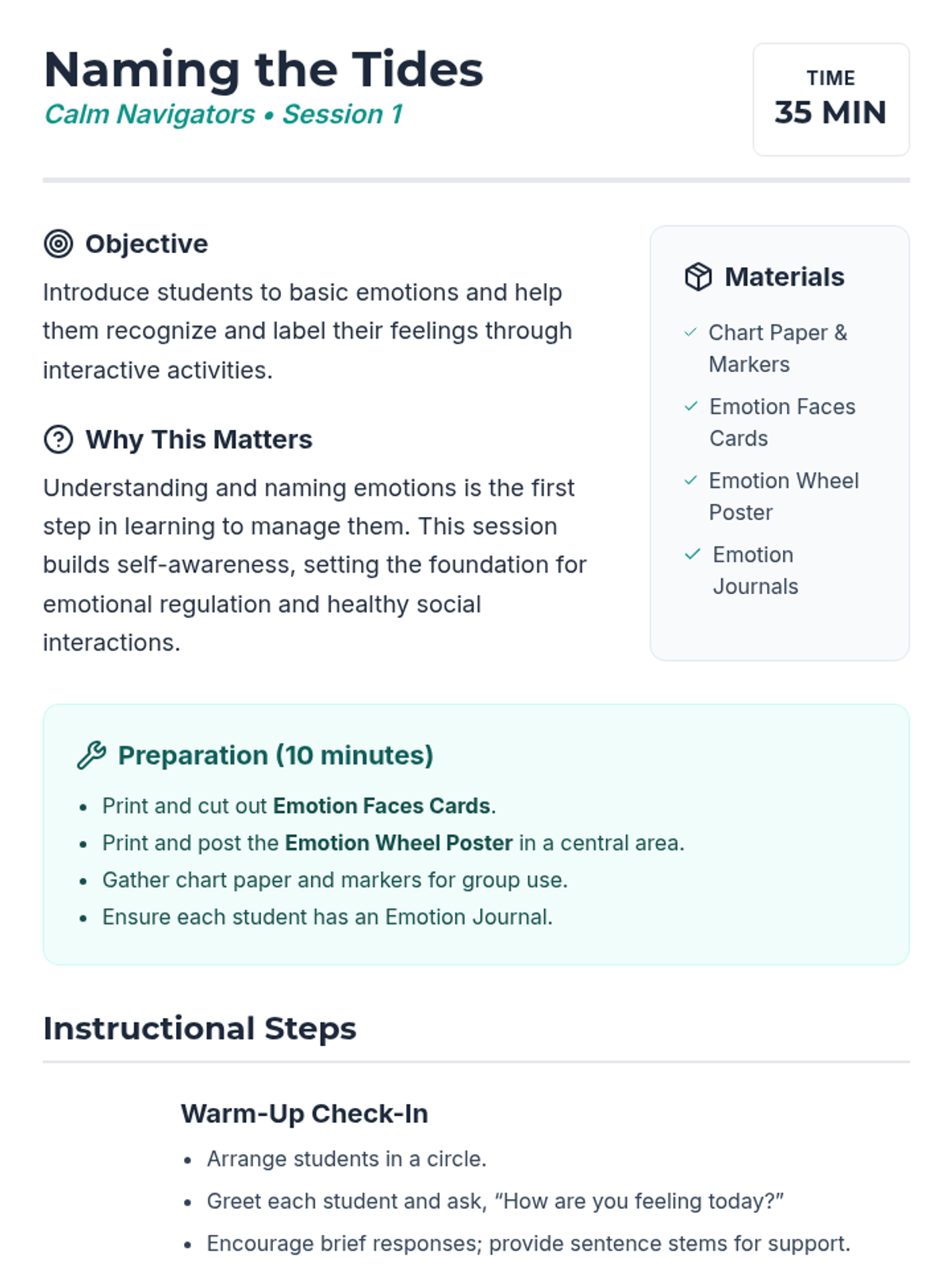 A three-part mentoring sequence blending Social Studies concepts (geography, citizenship, history) with ELSA principles to build emotional literacy, social skills, and resilience. Designed for short 30-minute sessions with minimal prep.