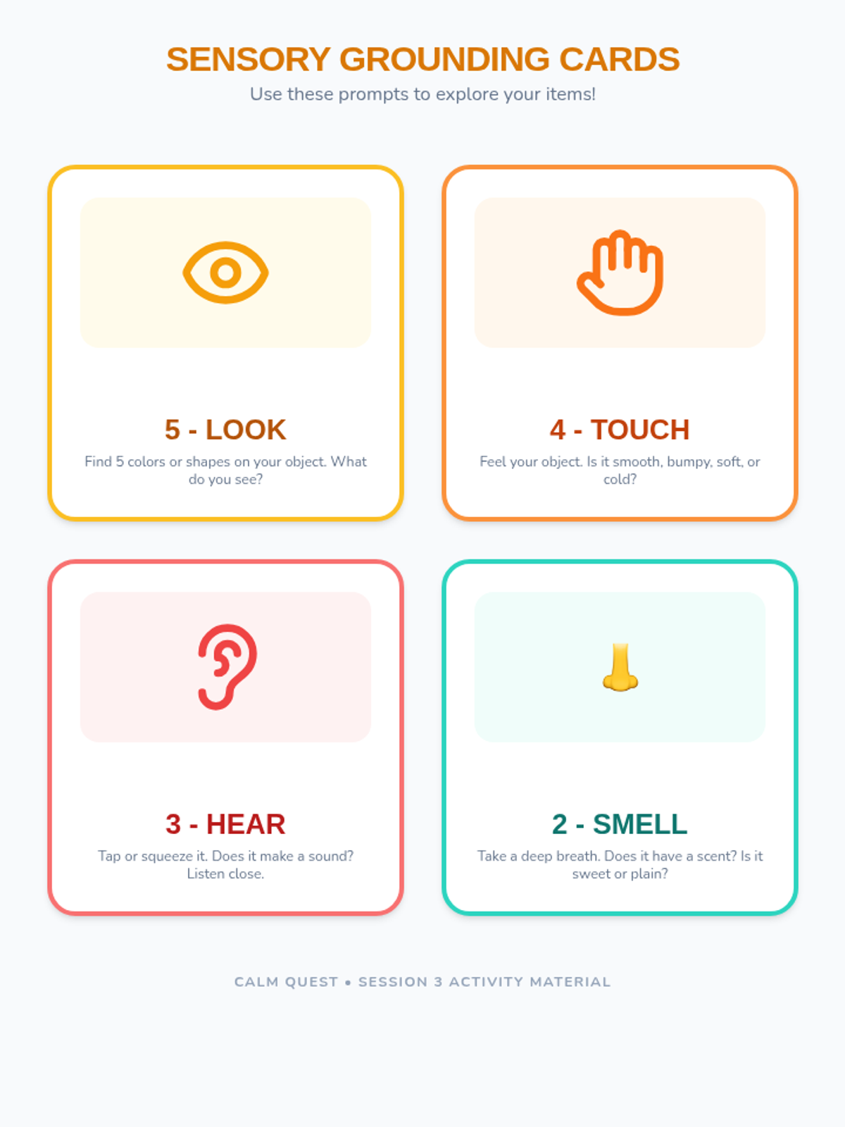 A 6-session counseling group designed to help students identify triggers, understand physical symptoms of anxiety, and build a personalized toolkit of coping strategies through a 'Calm Explorer' theme.
