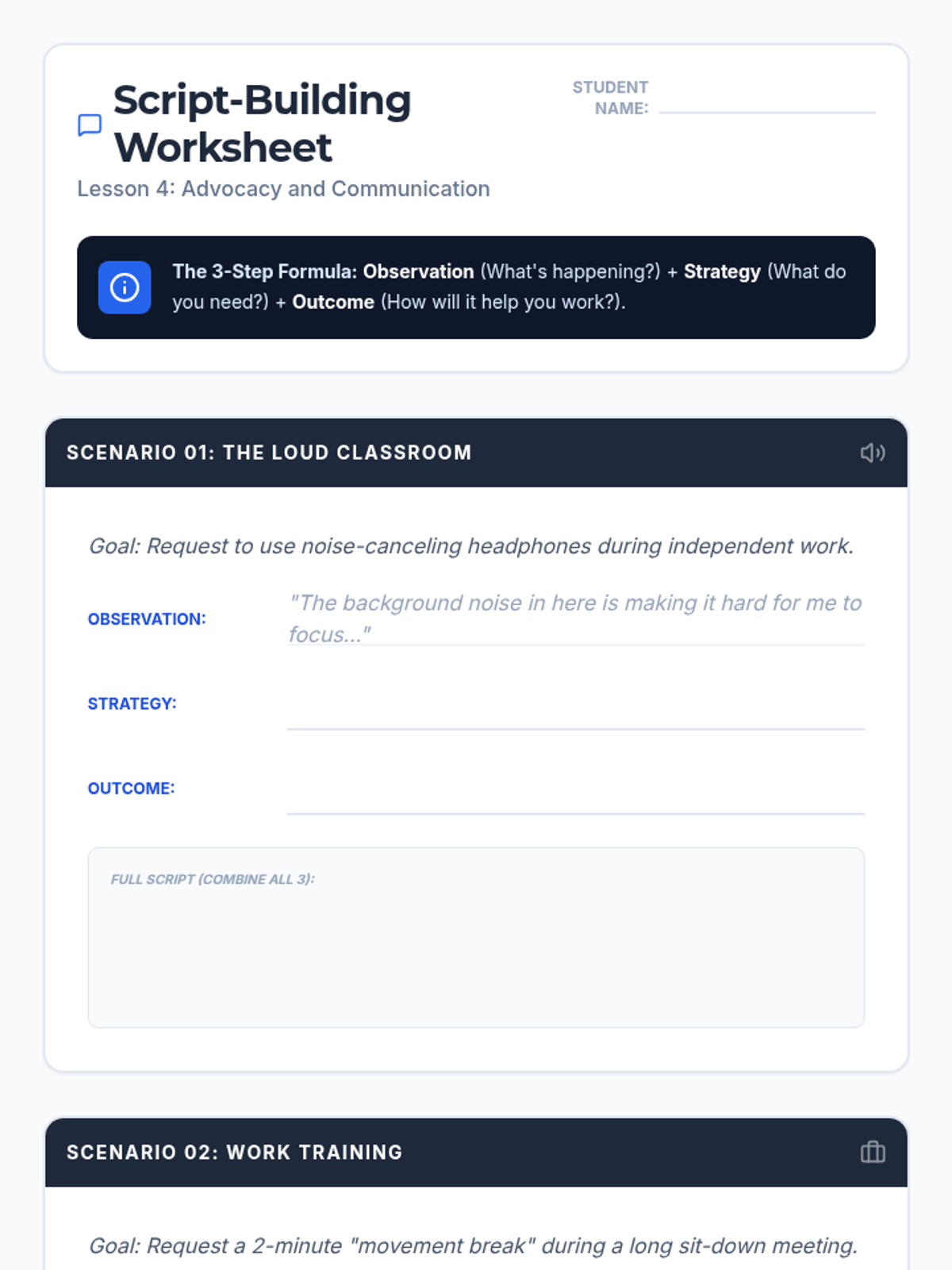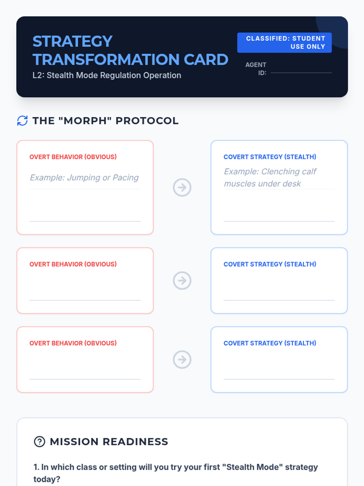 A sophisticated 8-lesson intervention designed for high school students to transition from defiant avoidance to self-regulated resets through professional advocacy and executive functioning strategies.