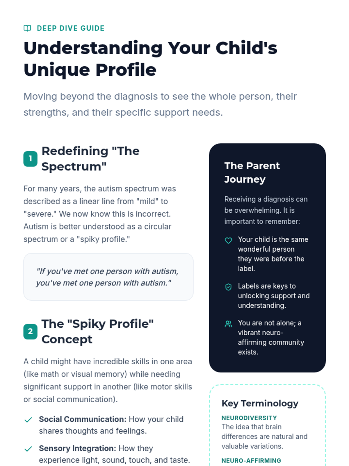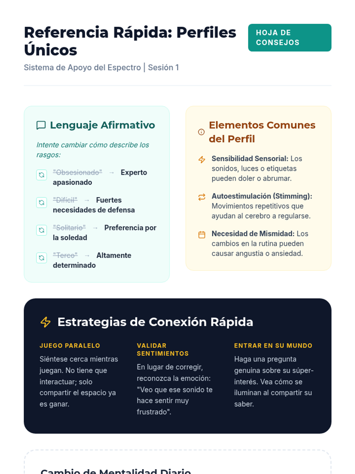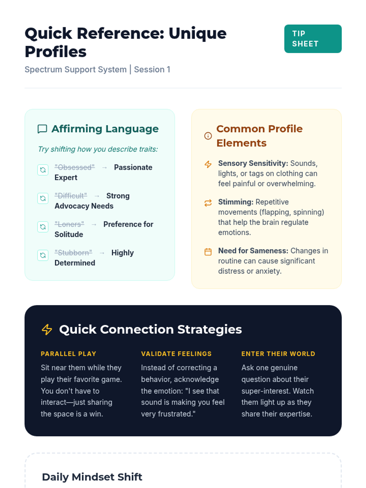 A comprehensive parent education series designed to empower families of K-4 students with autism using a strengths-based, neuro-affirming approach. This series provides workshop slides, detailed guides, quick-reference tip sheets, and child-facing visual aids for eleven critical topics in autism support.