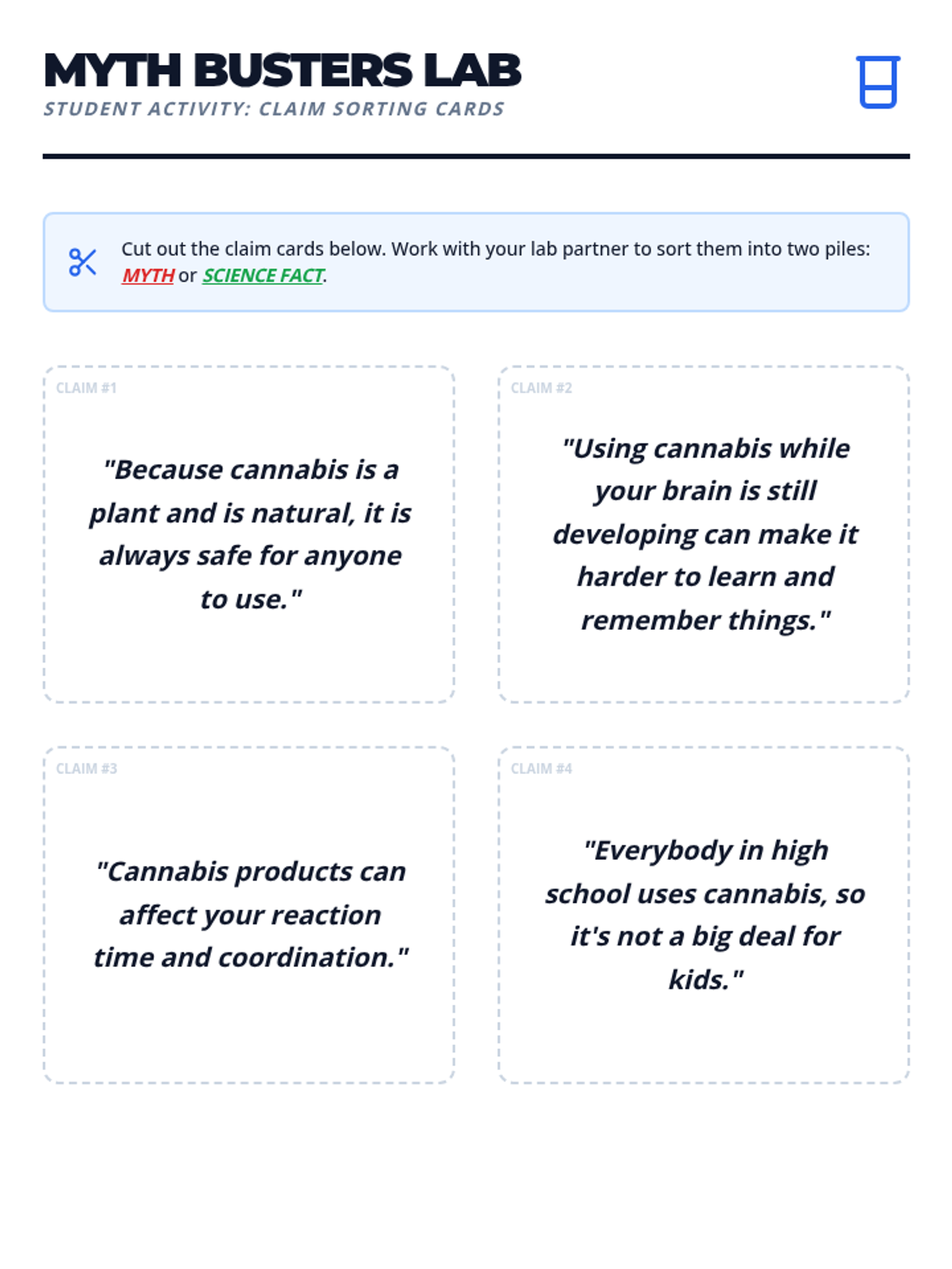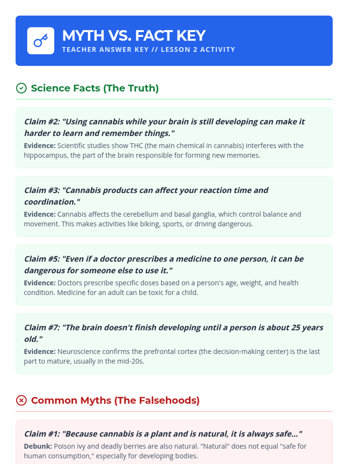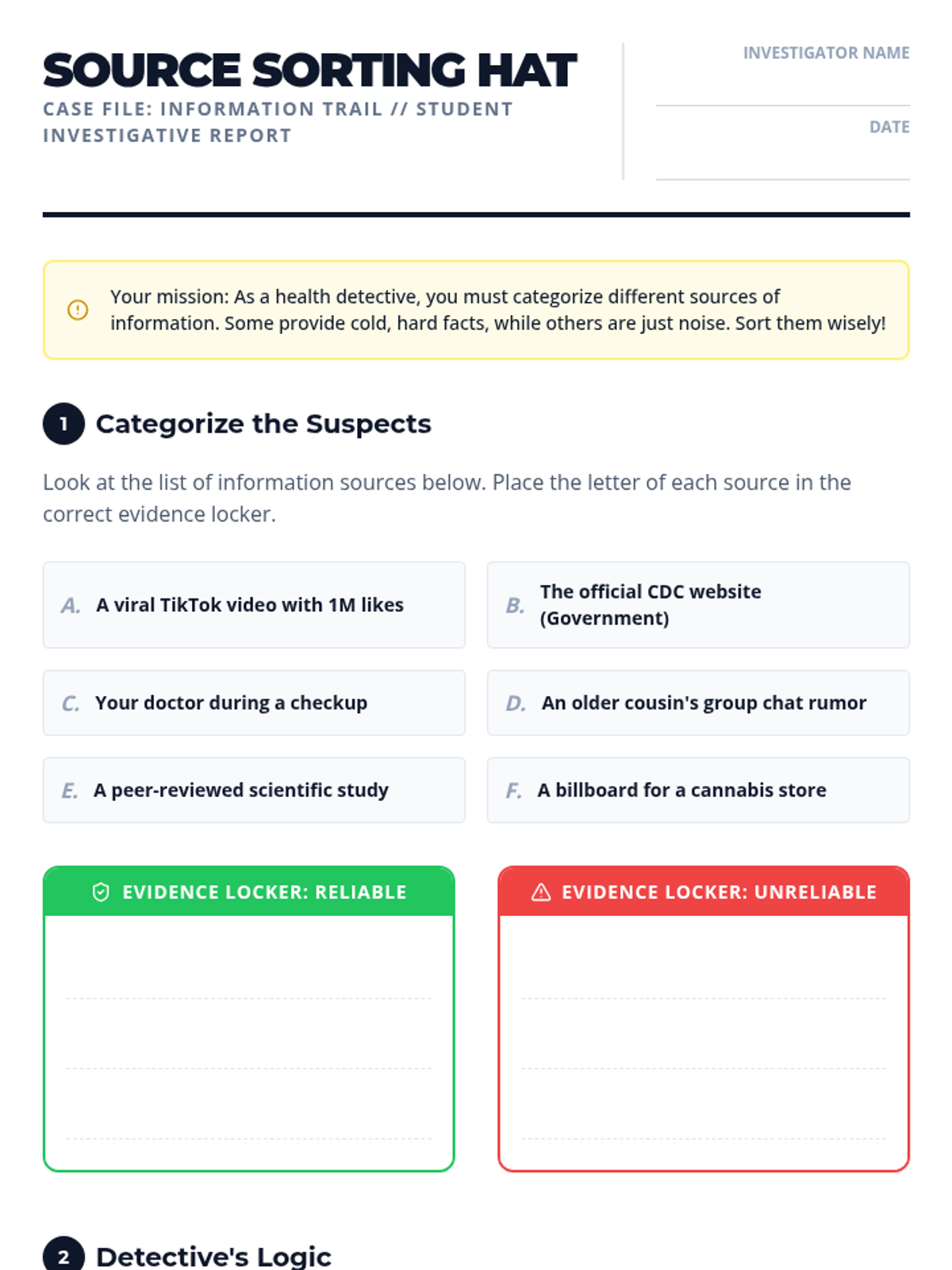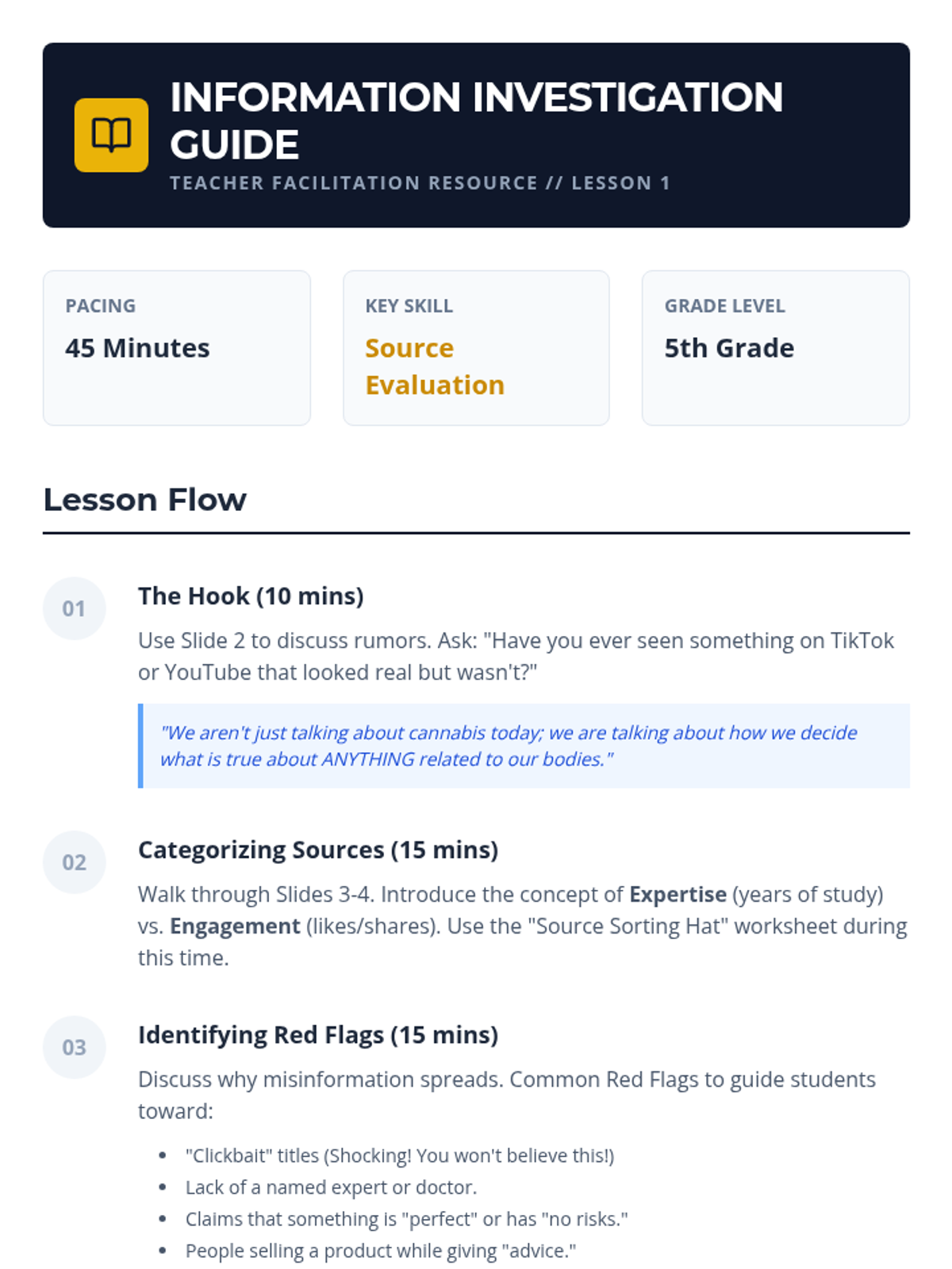 A 5th-grade health unit focused on media literacy and critical thinking regarding cannabis. Students learn to distinguish facts from myths, analyze marketing tactics, and understand the difference between medical and recreational use through an investigative 'Source Sleuth' lens.