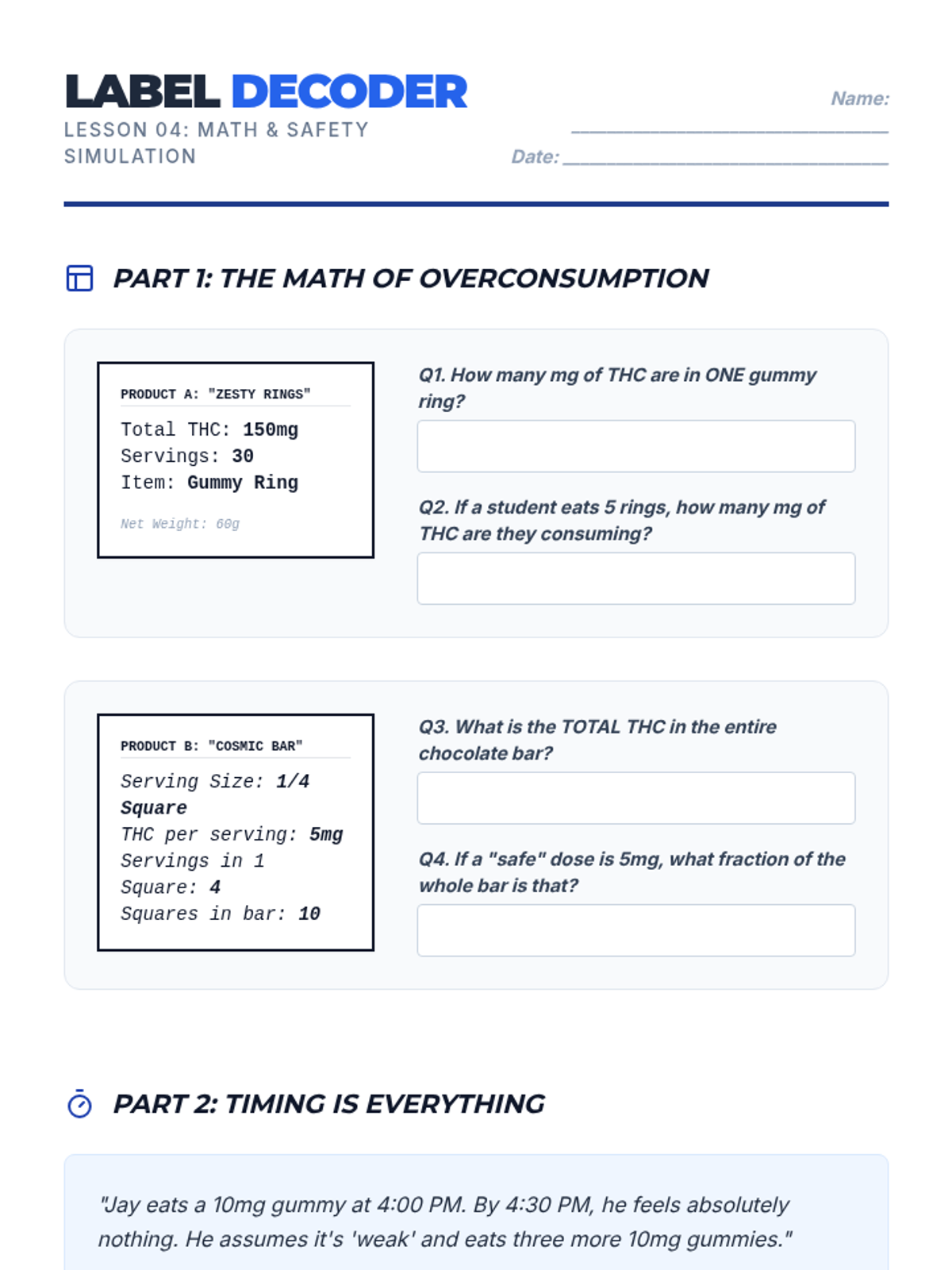 This high school health sequence equips students with media literacy and critical thinking skills to navigate the modern cannabis landscape. It covers marketing tactics, the sharp rise in THC potency, the 'natural fallacy,' and the math behind product labels and edibles.