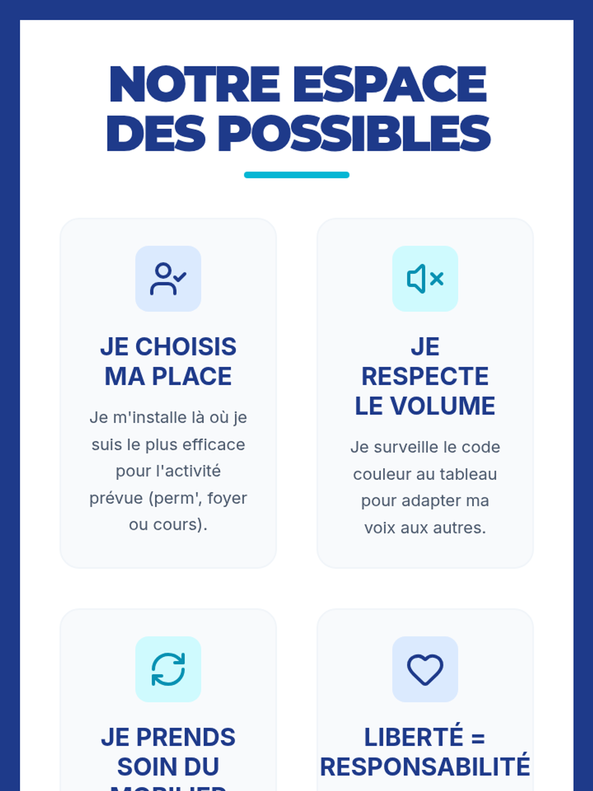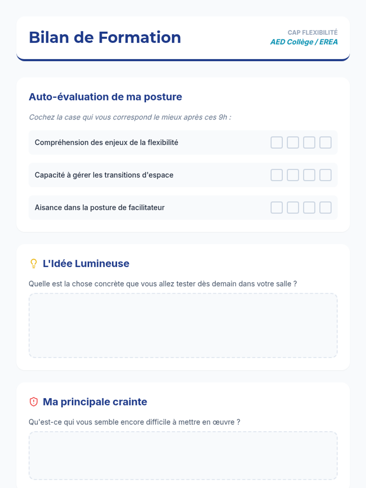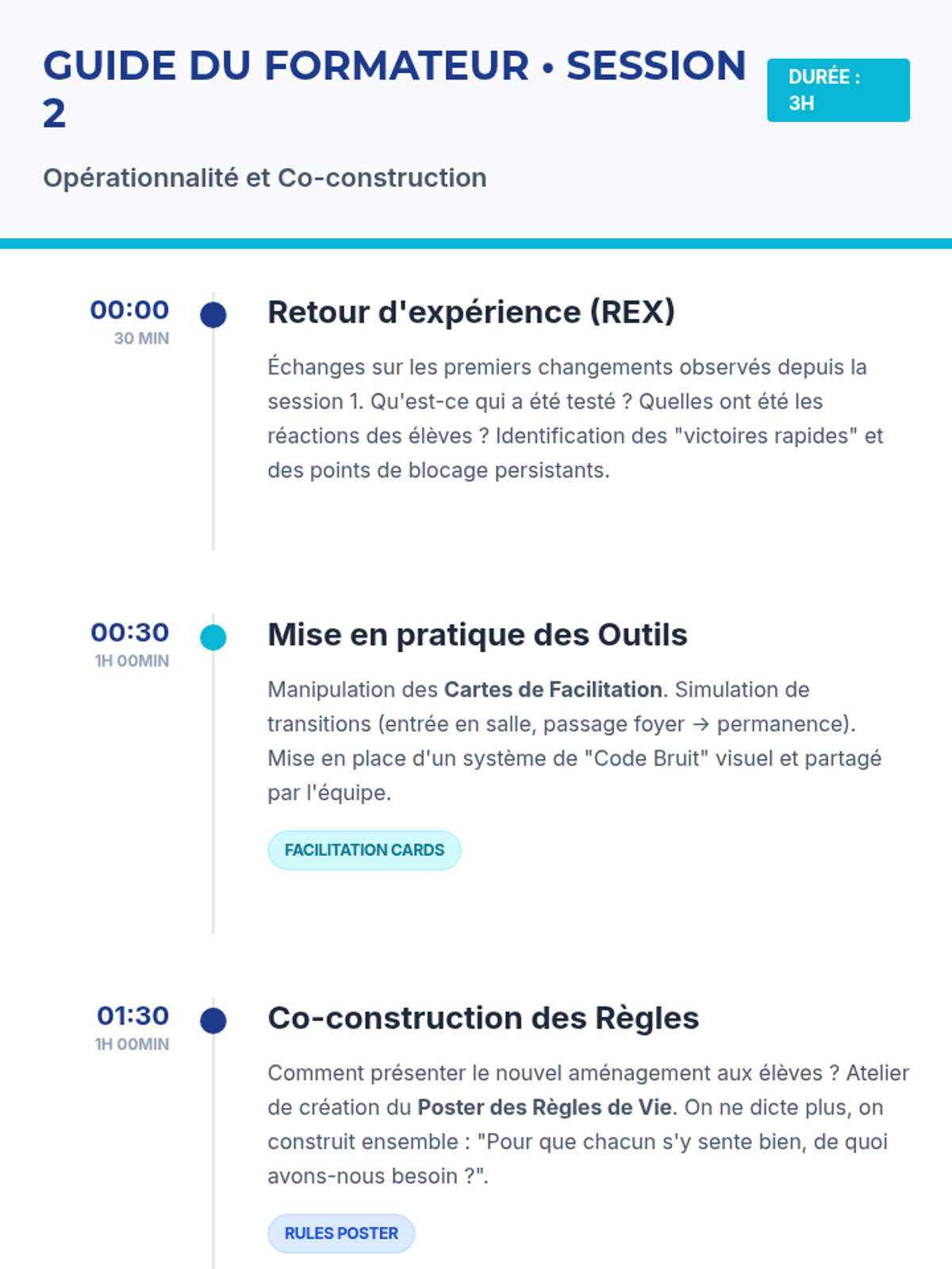 Une formation complète de 9h destinée aux AED pour transformer une salle polyvalente (permanence, foyer, cours) en espace flexible, abordant les postures professionnelles et l'aménagement spatial.