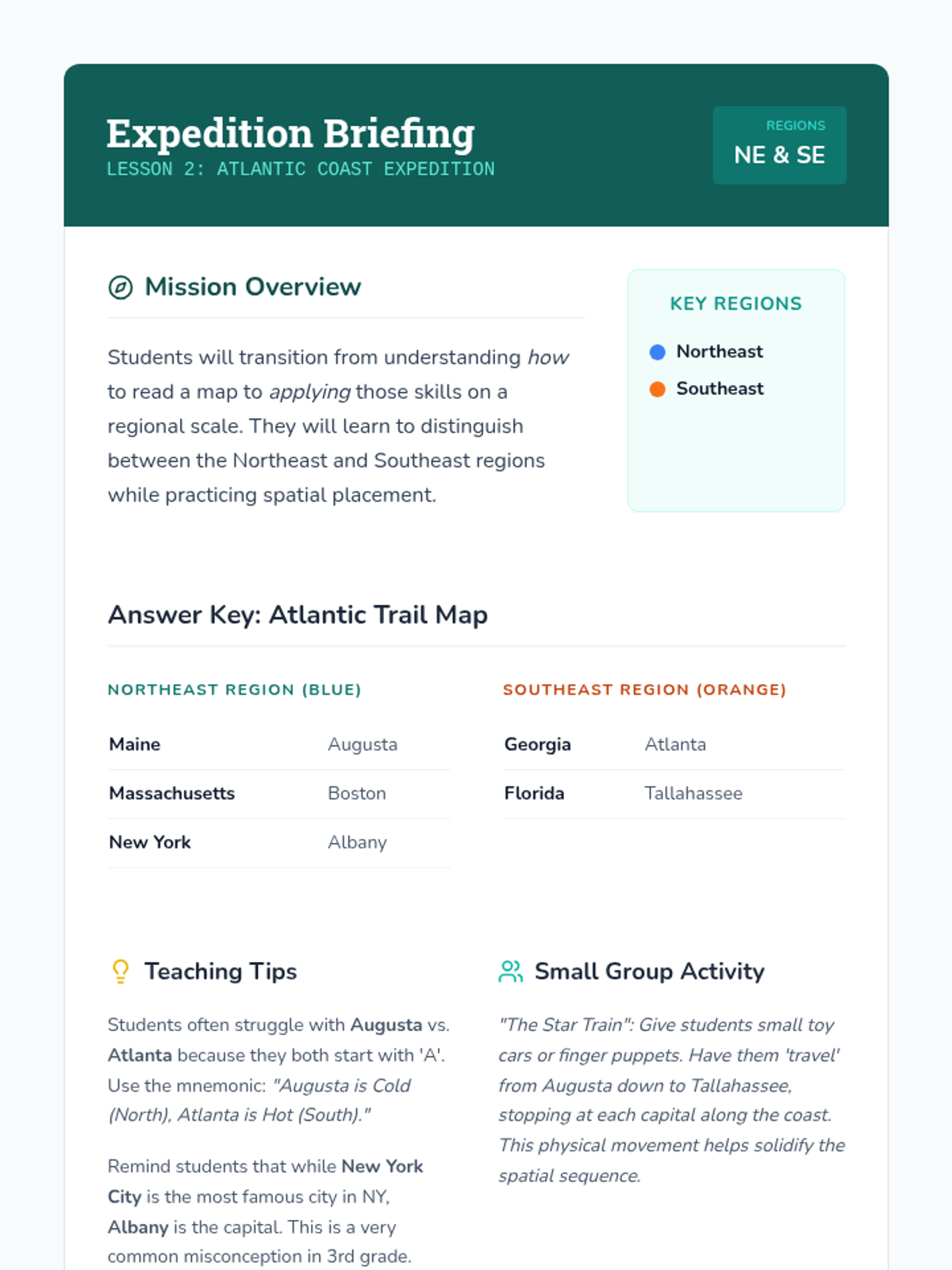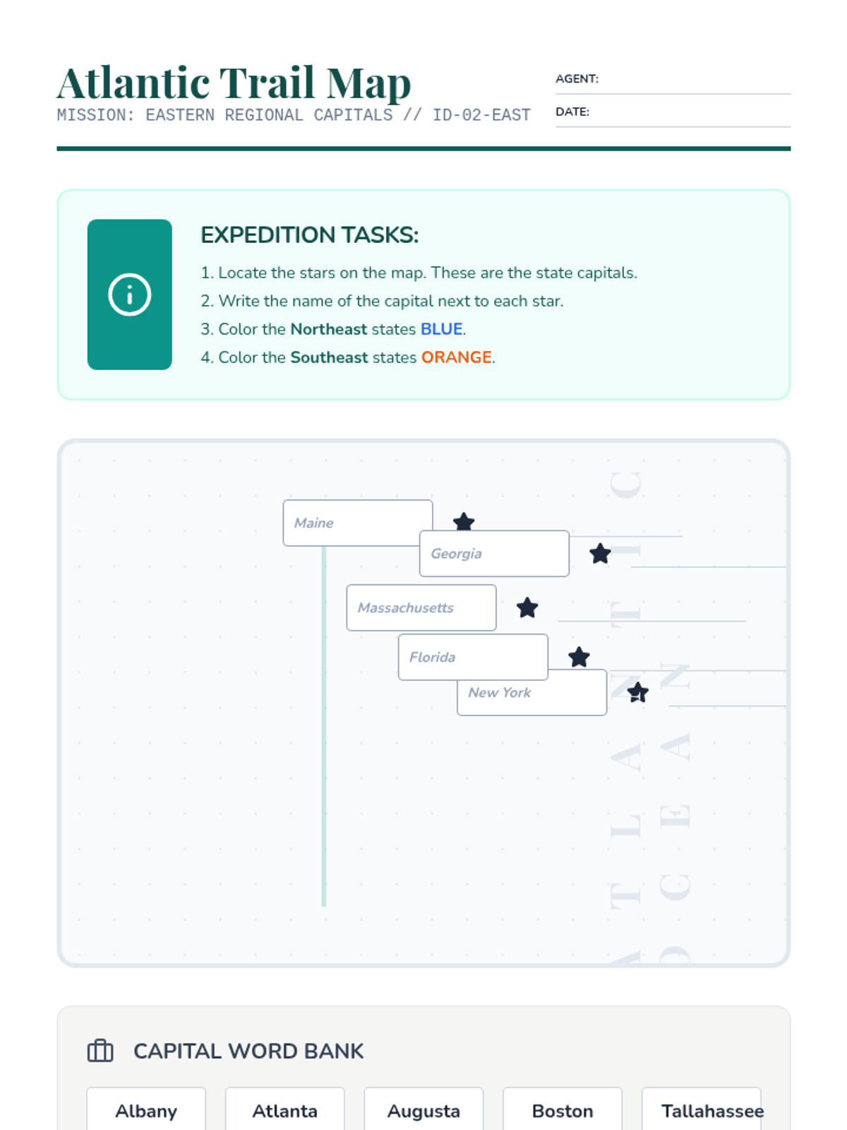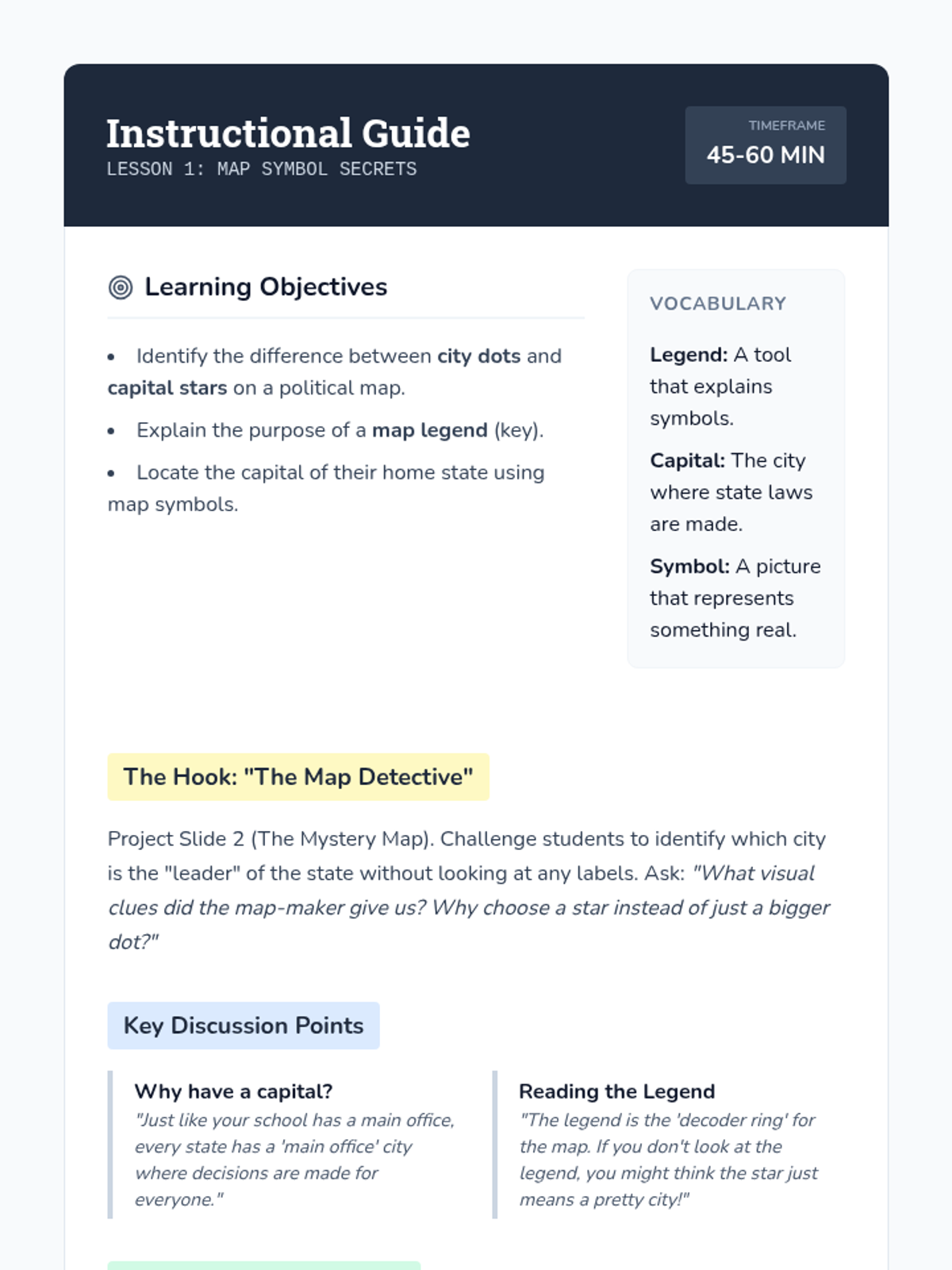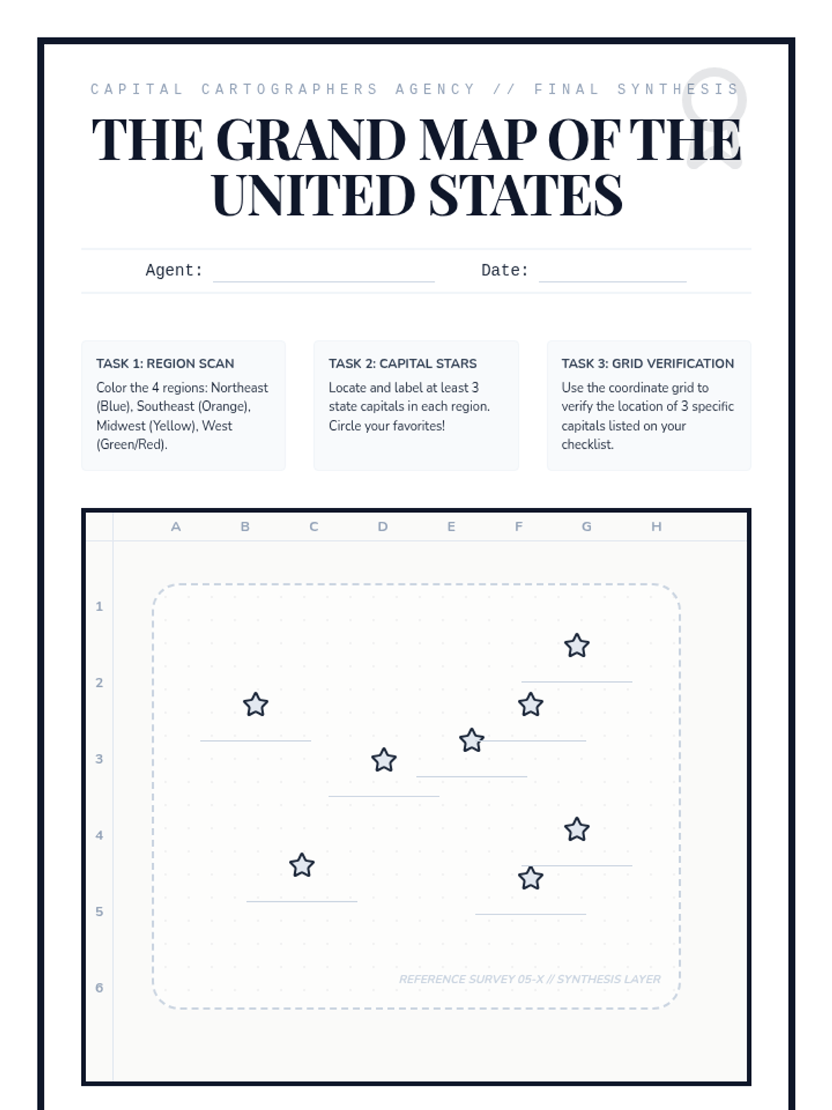 This sequence guides 3rd-grade students through the geography of the United States by focusing on state capitals and regional mapping. Students develop essential map skills, including interpreting legends and symbols, and progress through regional studies of the Northeast, South, Midwest, and West to identify and locate political centers.