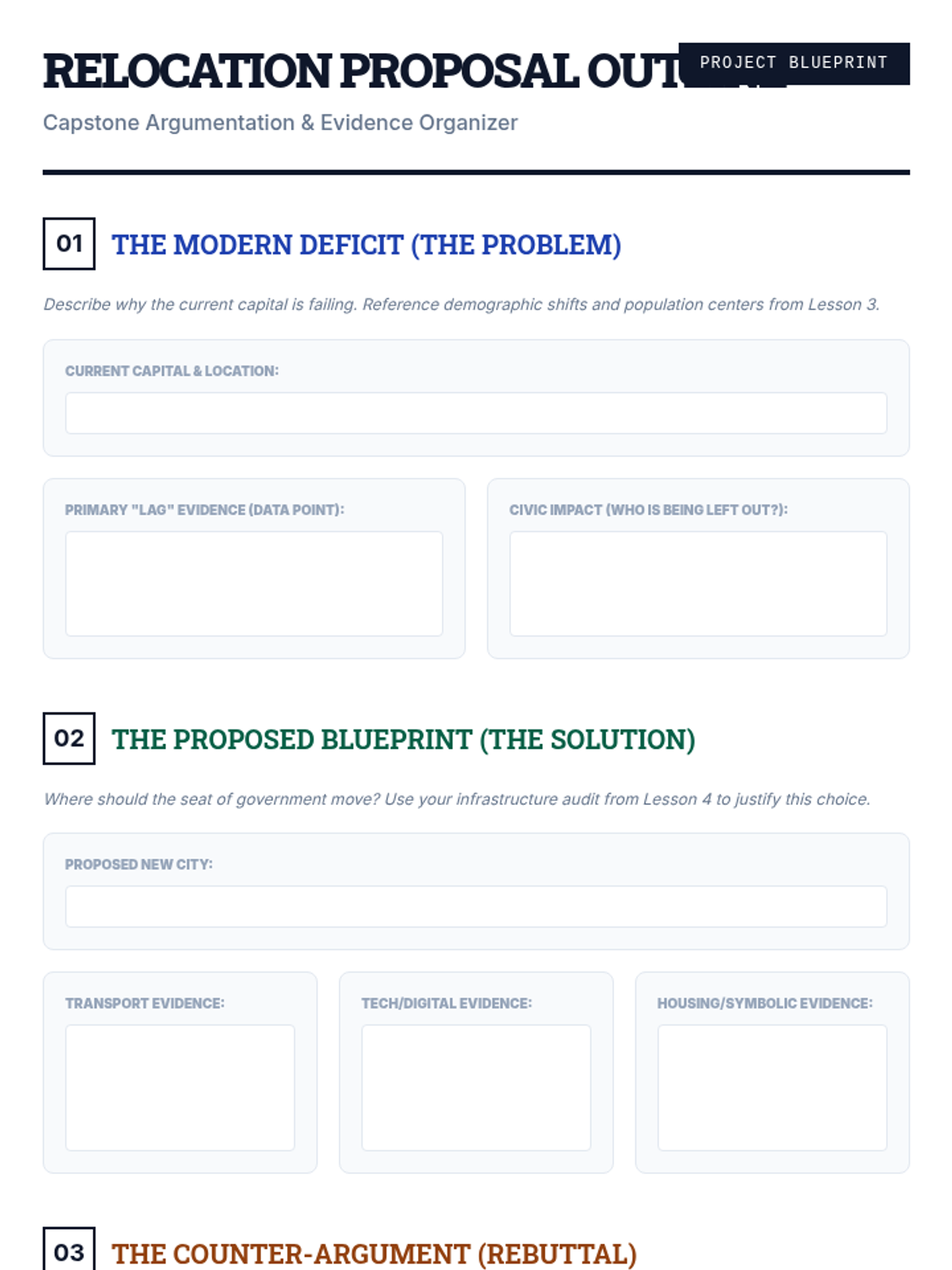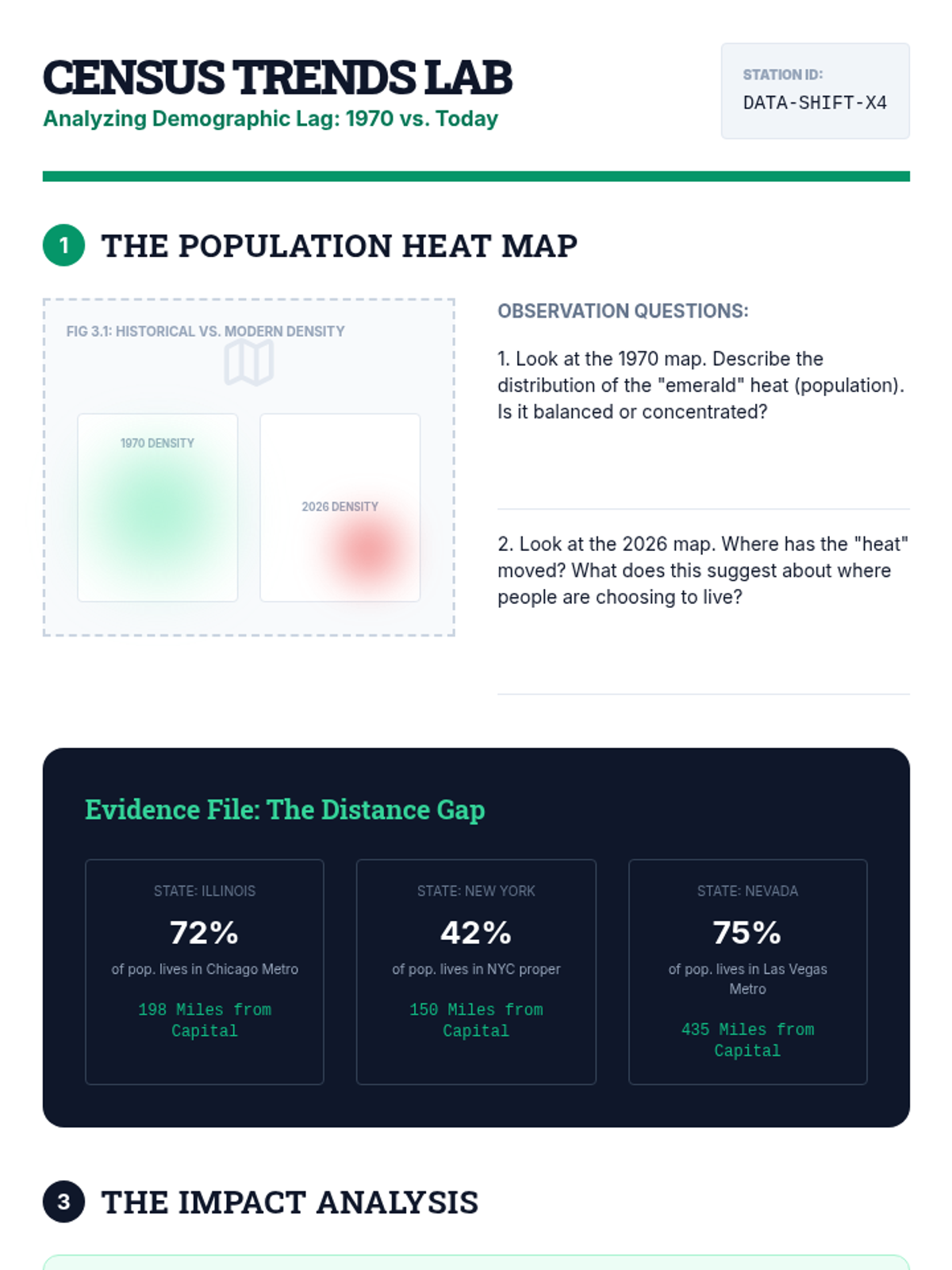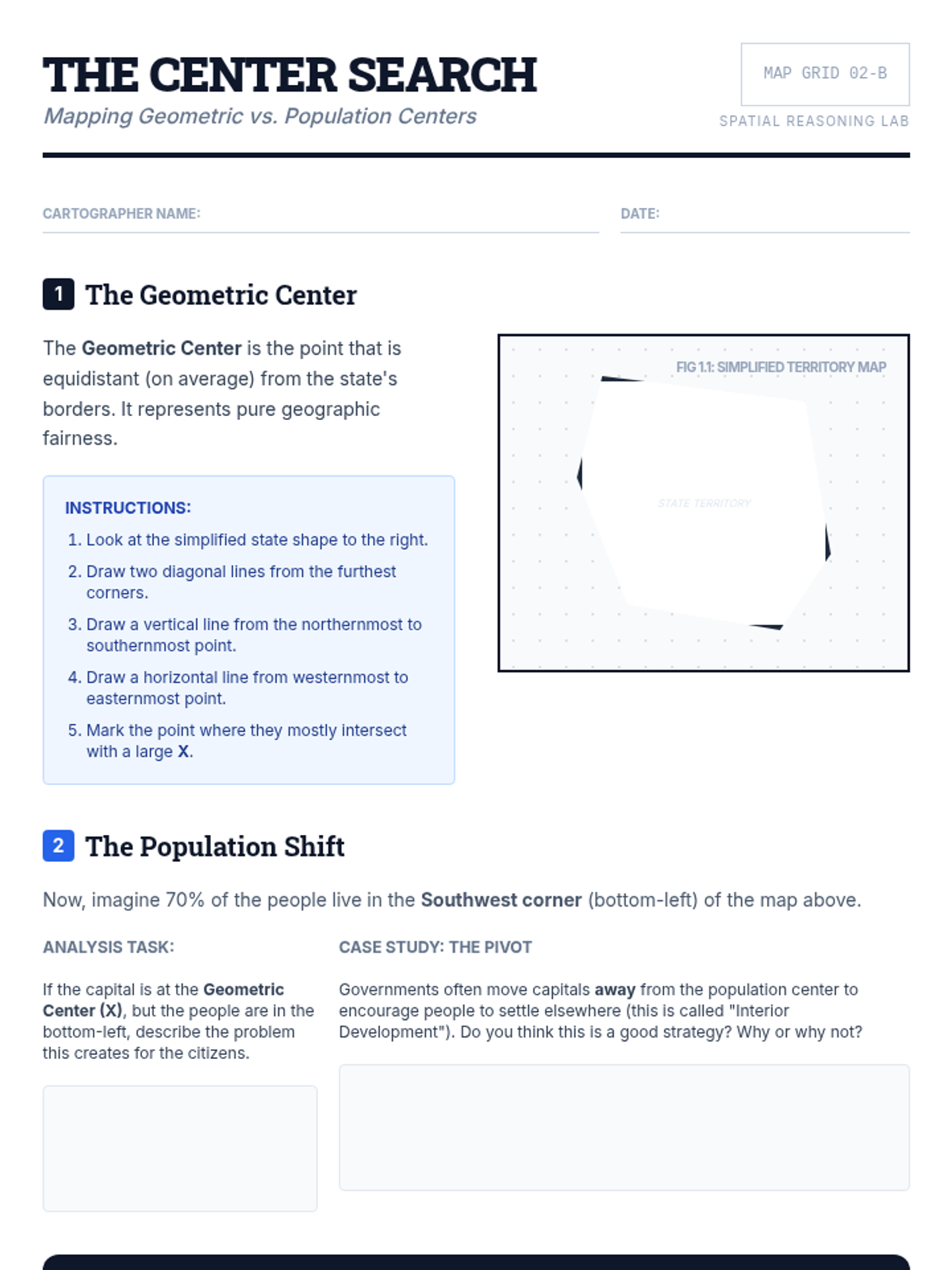 A project-based sequence where 8th-grade students analyze the geographic and demographic factors influencing the location of state capitals, culminating in a proposal for relocation based on modern data.