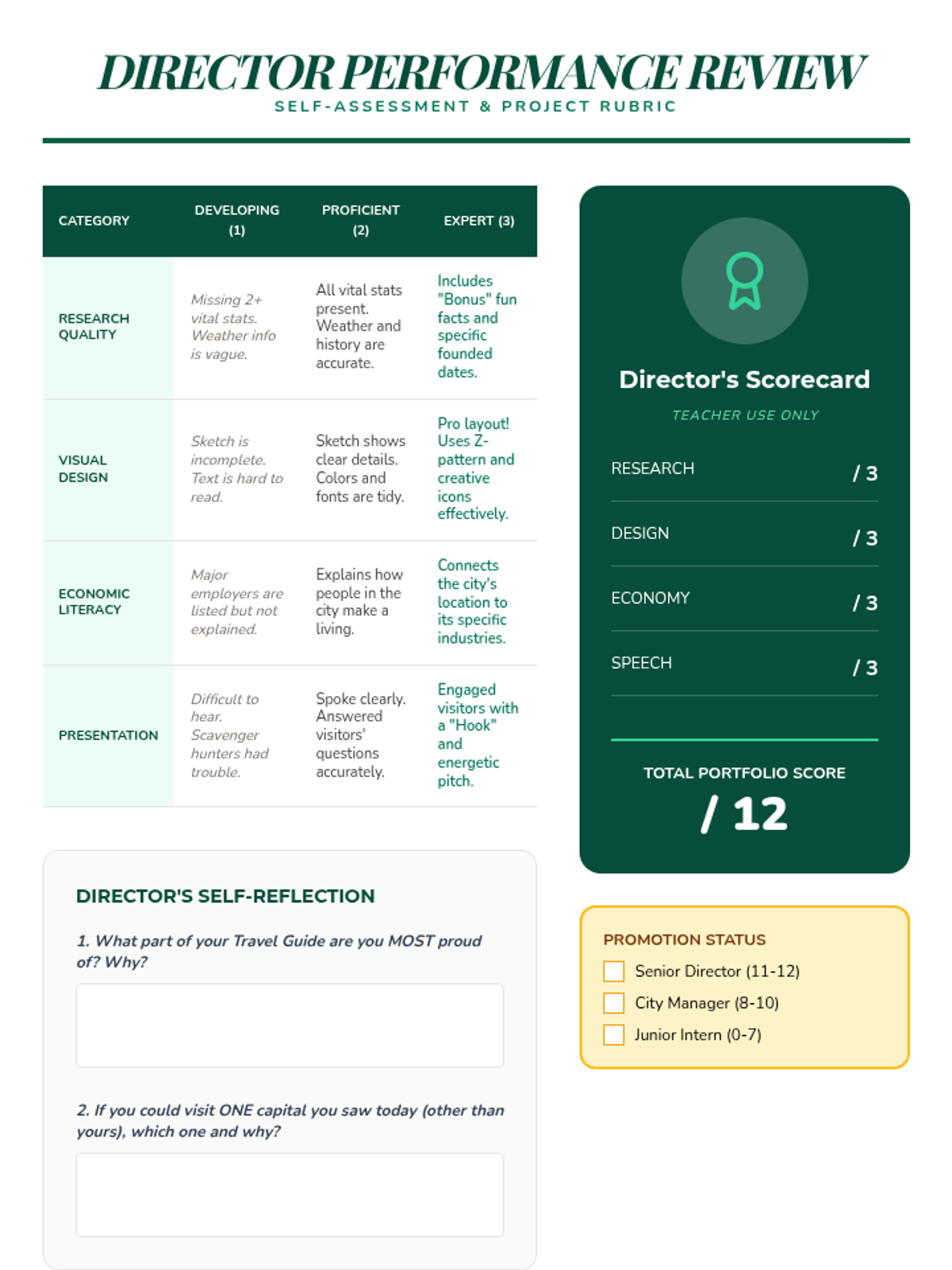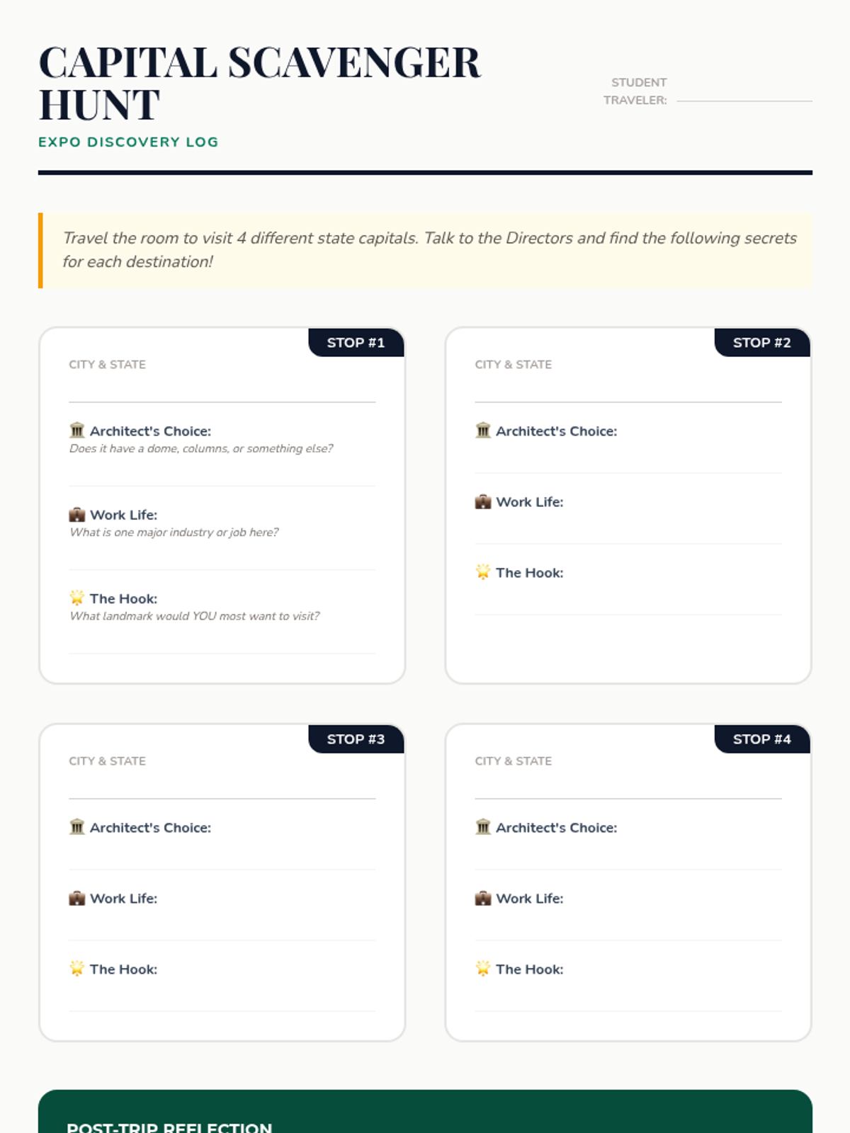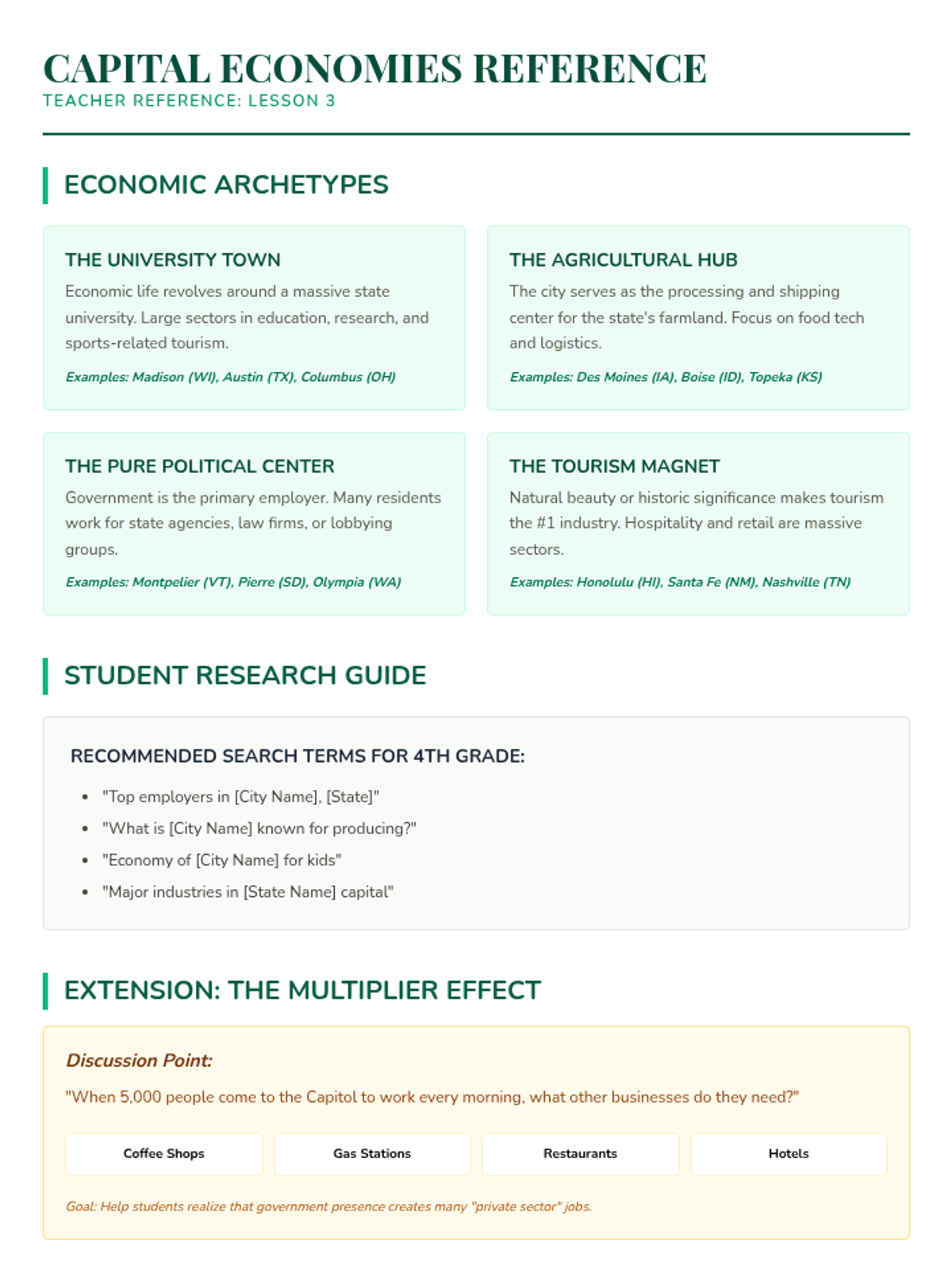 A project-based social studies sequence where 4th-grade students act as state tourism directors to research and promote a US state capital, culminating in a travel guide expo. Students explore geography, architecture, economy, and culture to understand the unique identity of these political hubs.