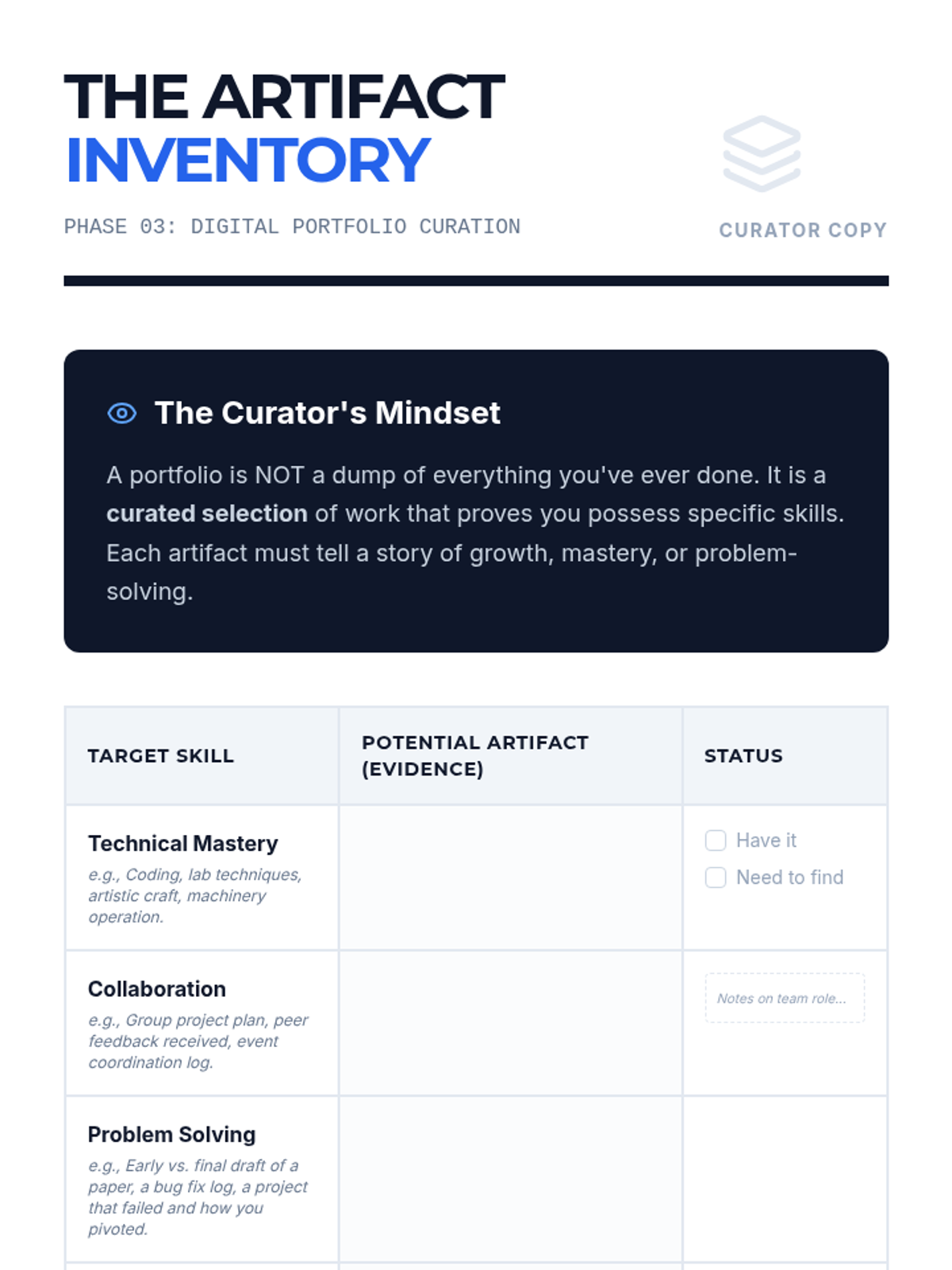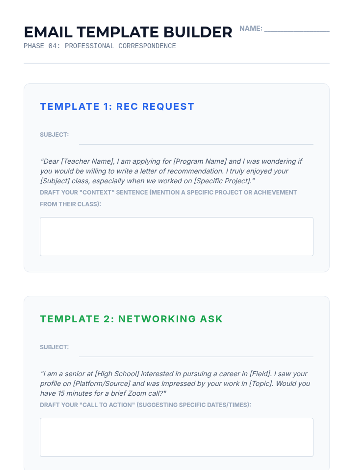A workshop-style sequence for 12th graders to master the professional application process, covering resumes, personal statements, digital portfolios, networking, and interviewing.