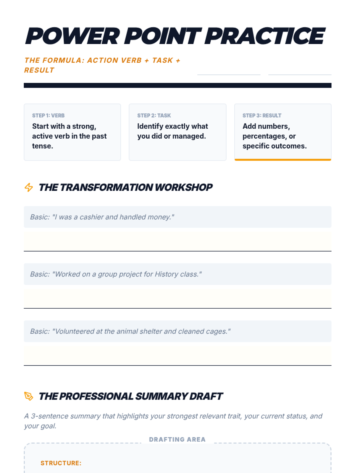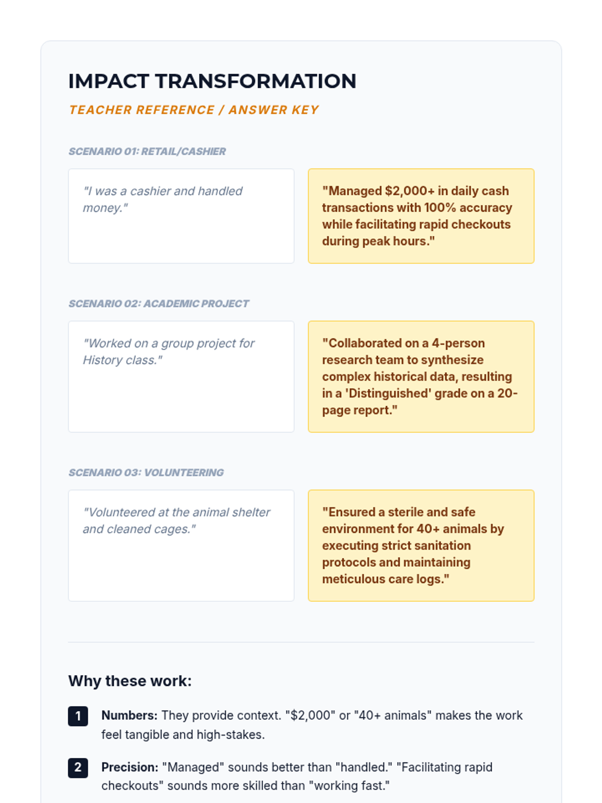 This sequence guides 11th-grade students through the practical process of analyzing job descriptions and tailoring their resumes. Students move from identifying keywords to mapping their personal experiences and formatting documents for maximum impact.