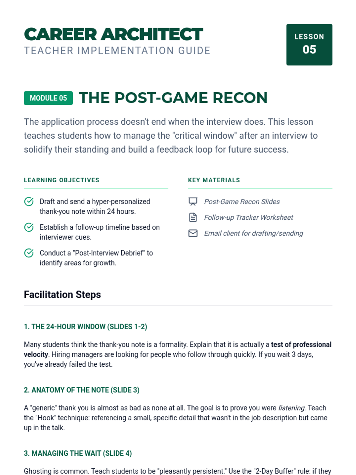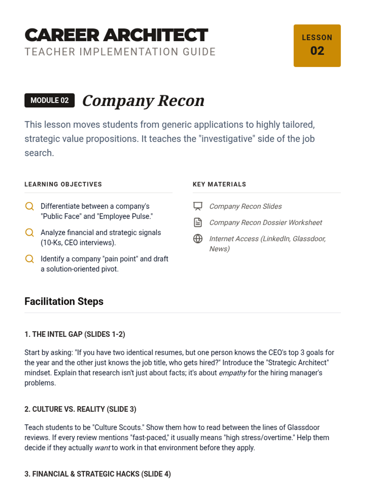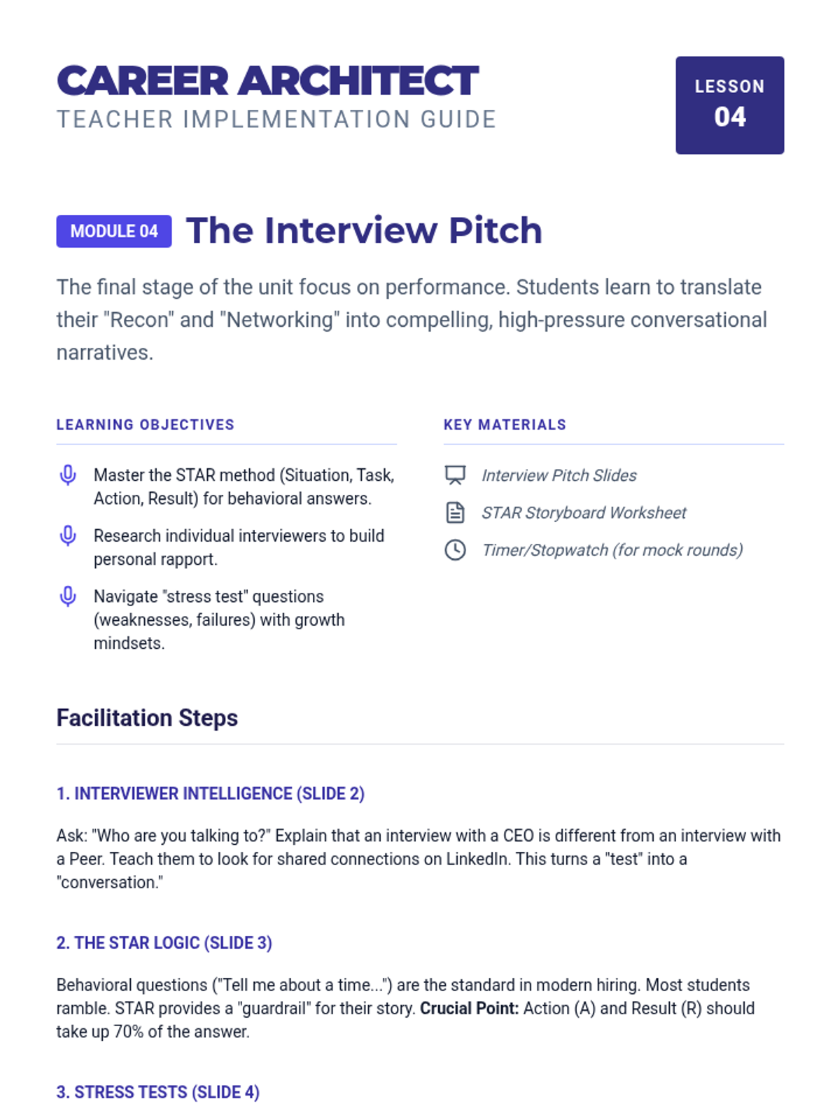 A comprehensive unit designed to guide students through the modern job application process, focusing on strategic networking, deep company research, and high-stakes interview preparation. Students will learn to build professional connections and tailor their approach to specific company cultures and scenarios.