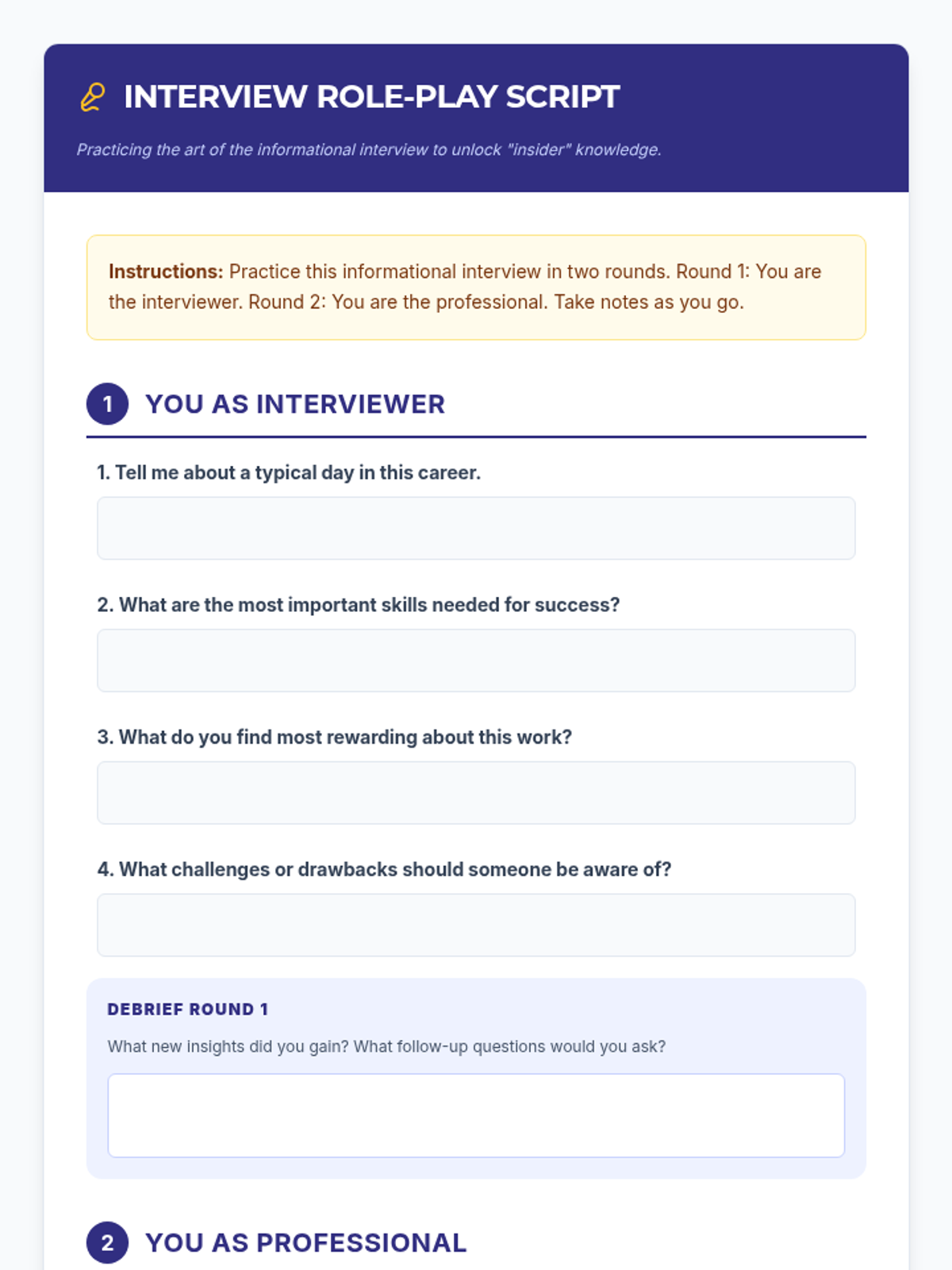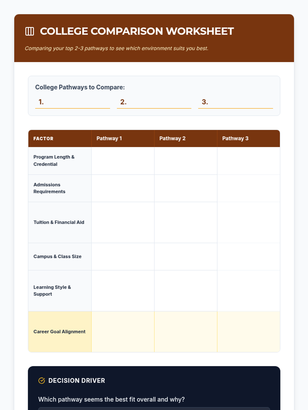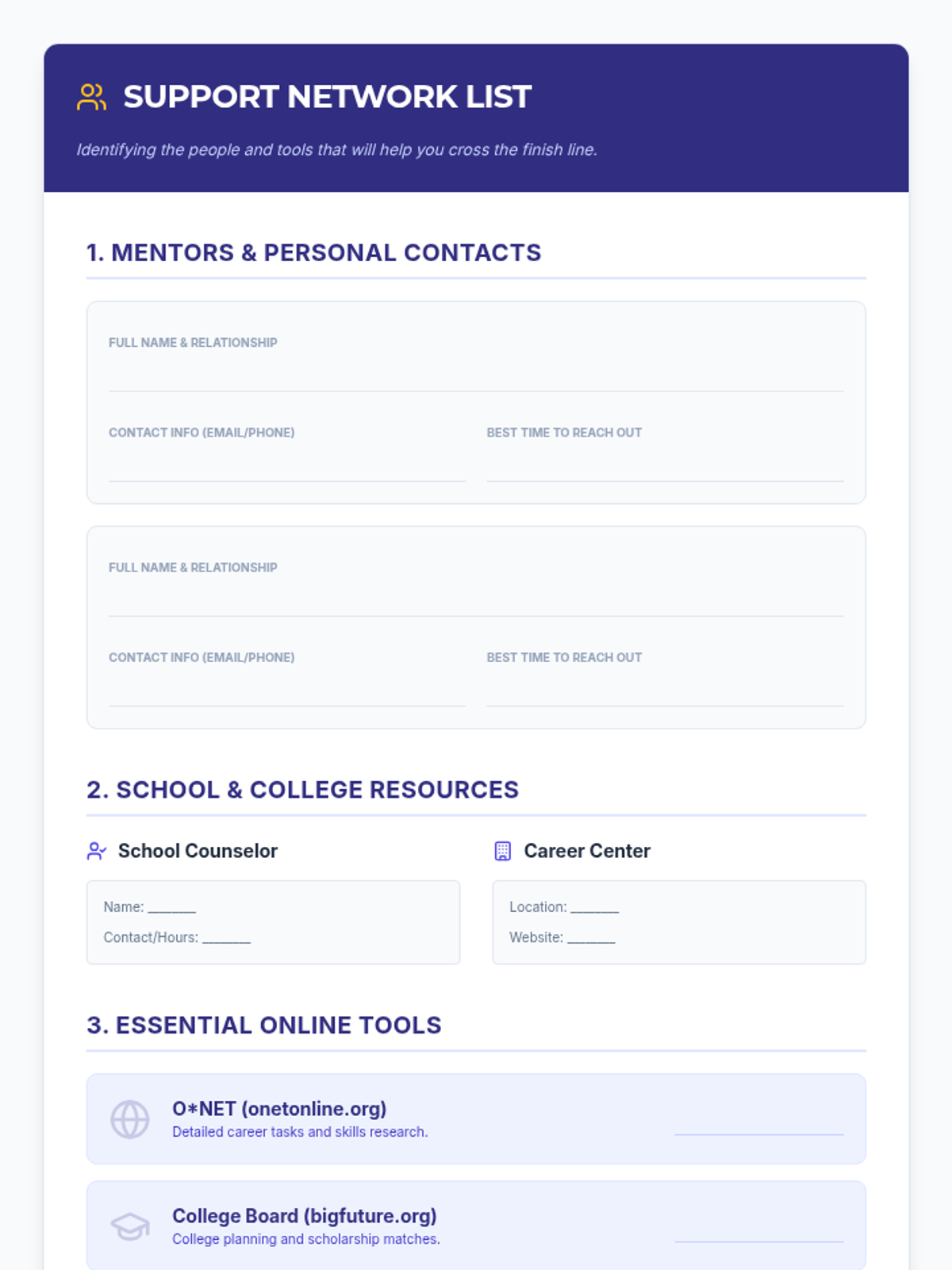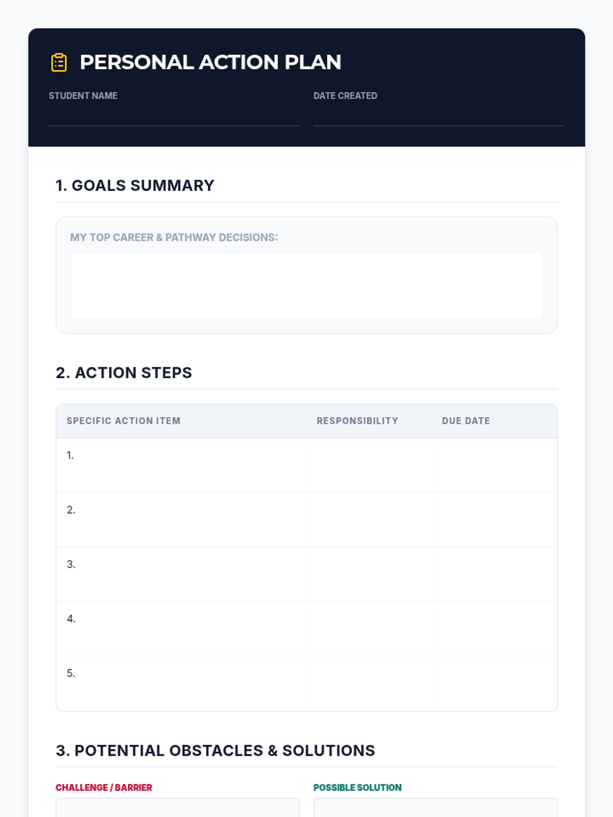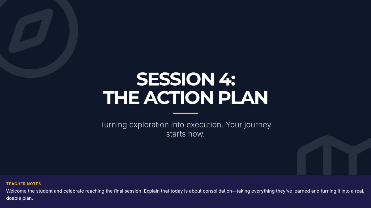 A four-session personalized coaching series designed to help students with low motivation and self-esteem explore career options and college types. Through guided activities, self-reflection, and research, students will build confidence in making informed decisions.